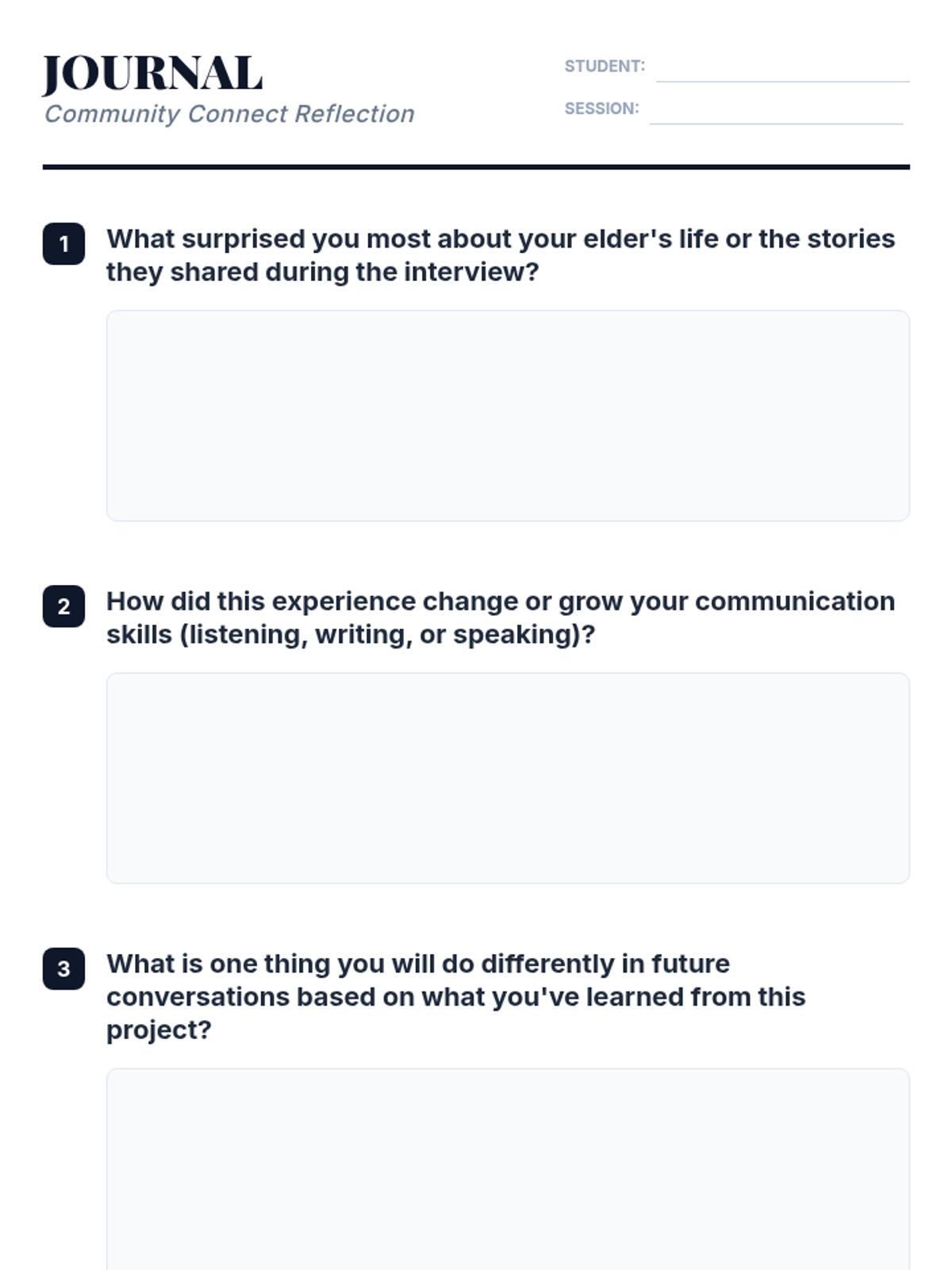 A multi-session project where students connect with local elders through interviews and letter writing, fostering empathy and intergenerational understanding.