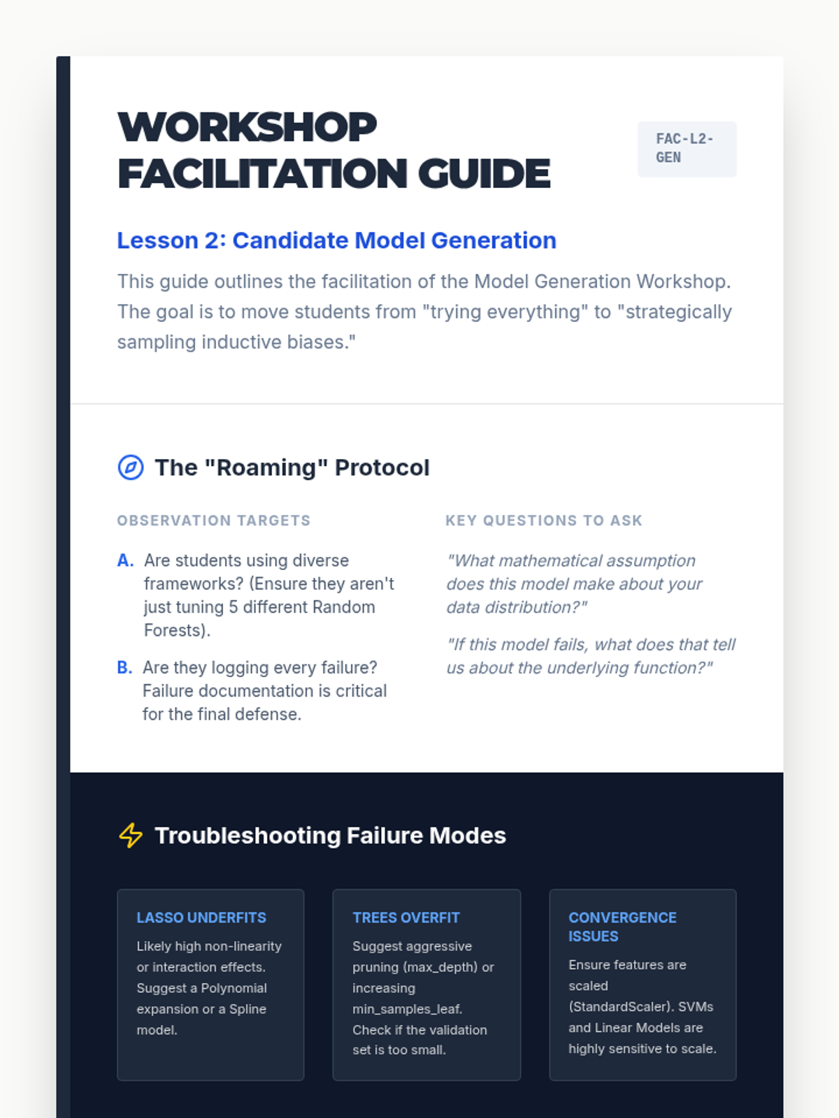 A graduate-level project-based sequence focused on the rigorous comparison and selection of mathematical models. Students progress from strategy definition and candidate generation to statistical benchmarking and stability analysis, culminating in a professional-grade technical defense.