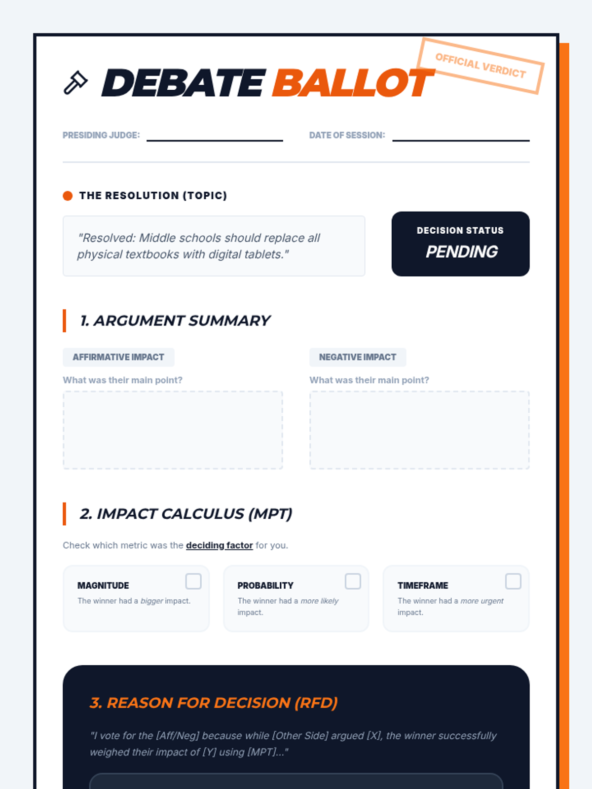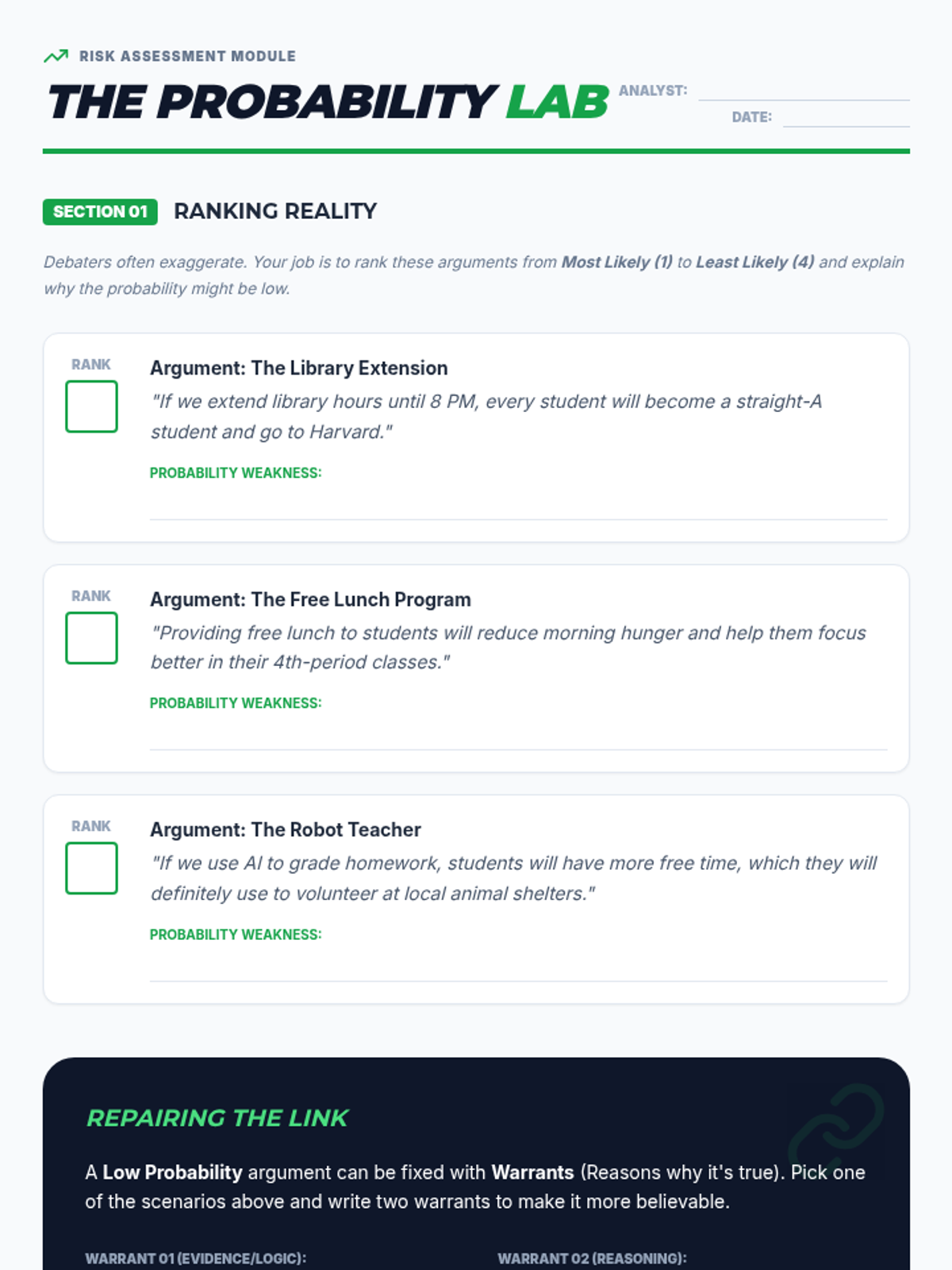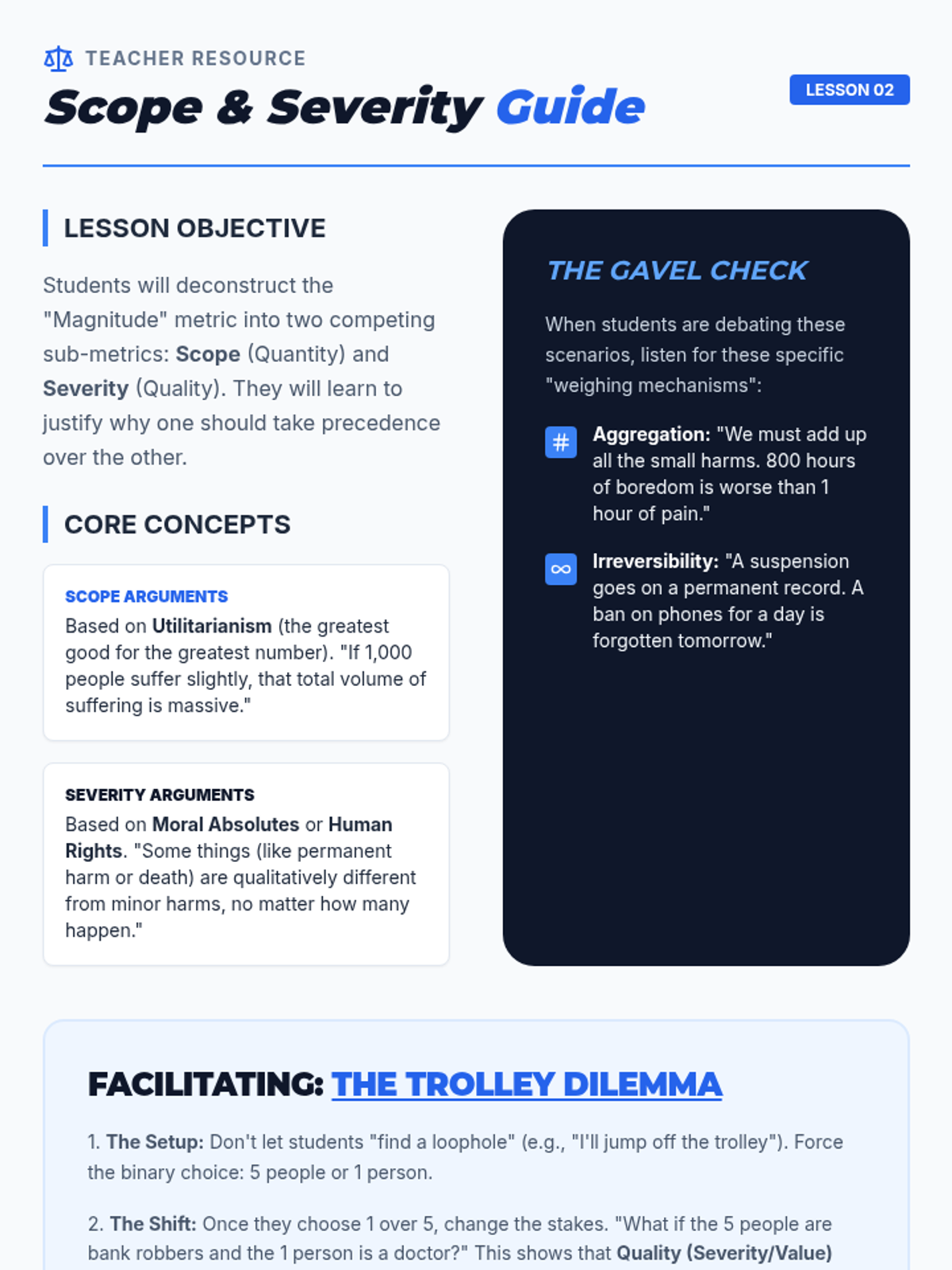 A 7th-grade ELA sequence on debate and public speaking, focusing on 'Impact Calculus' (Magnitude, Probability, and Timeframe) to weigh competing arguments and make comparative judgments.