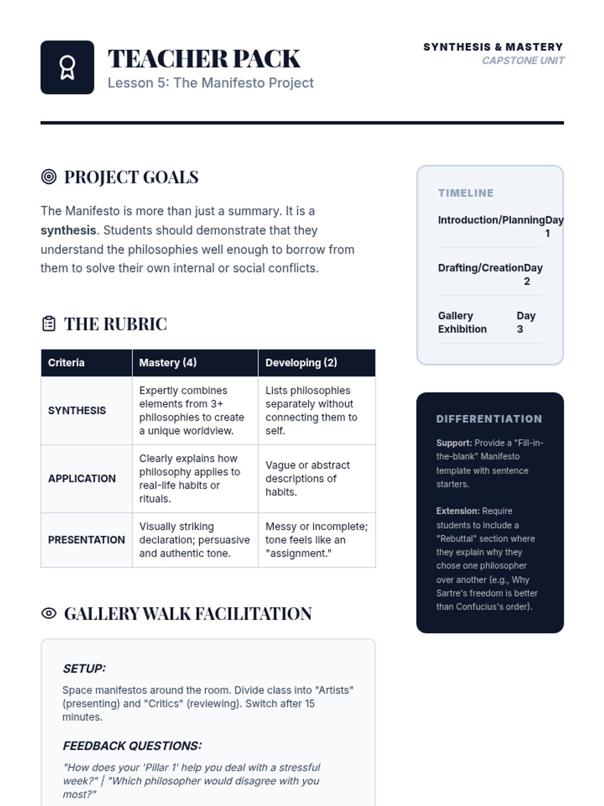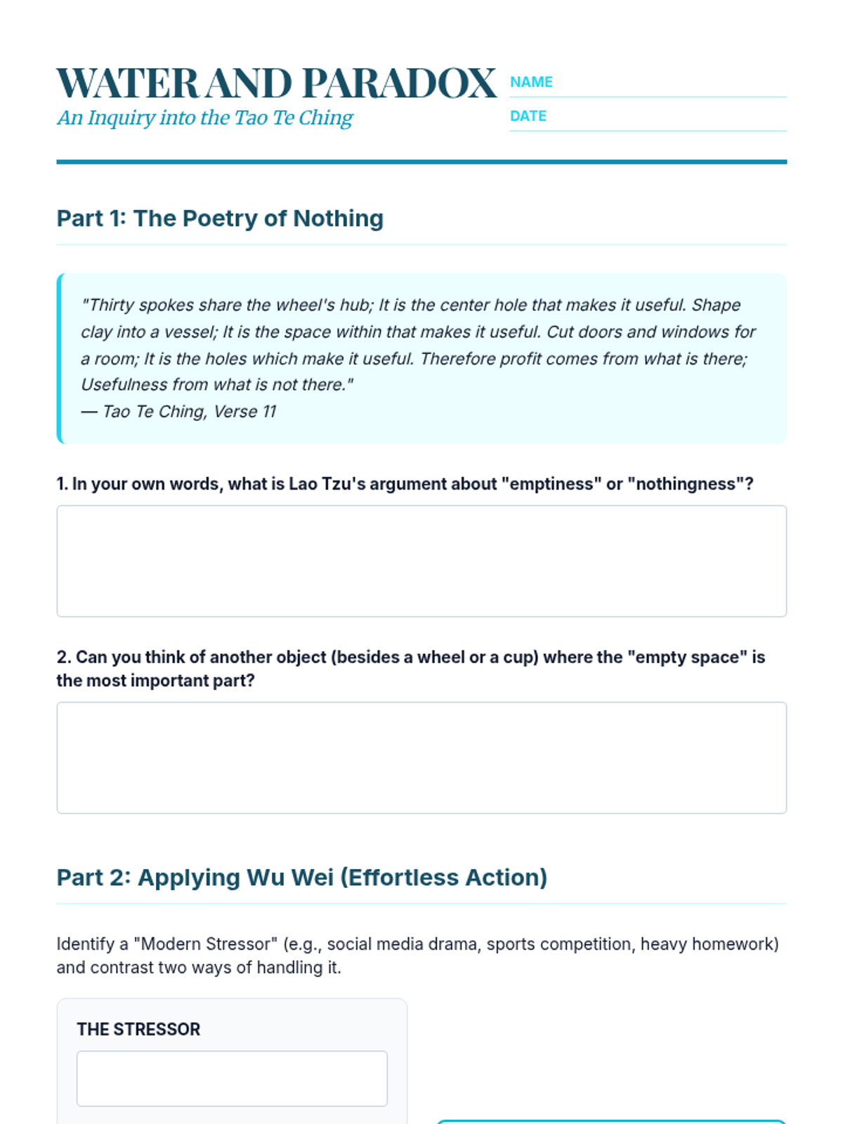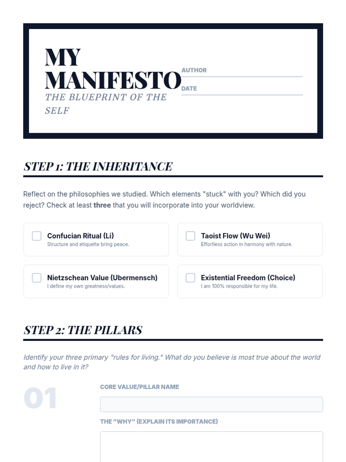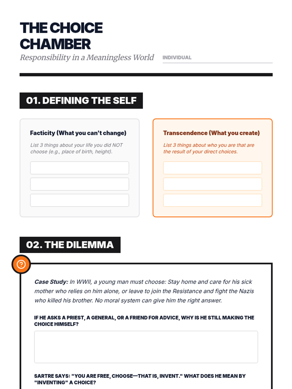 A 9th-grade Social Studies sequence exploring Eastern traditions and Western Existentialism to investigate whether meaning is discovered or created. Students progress from external systems of social order to internal constructions of individual freedom.