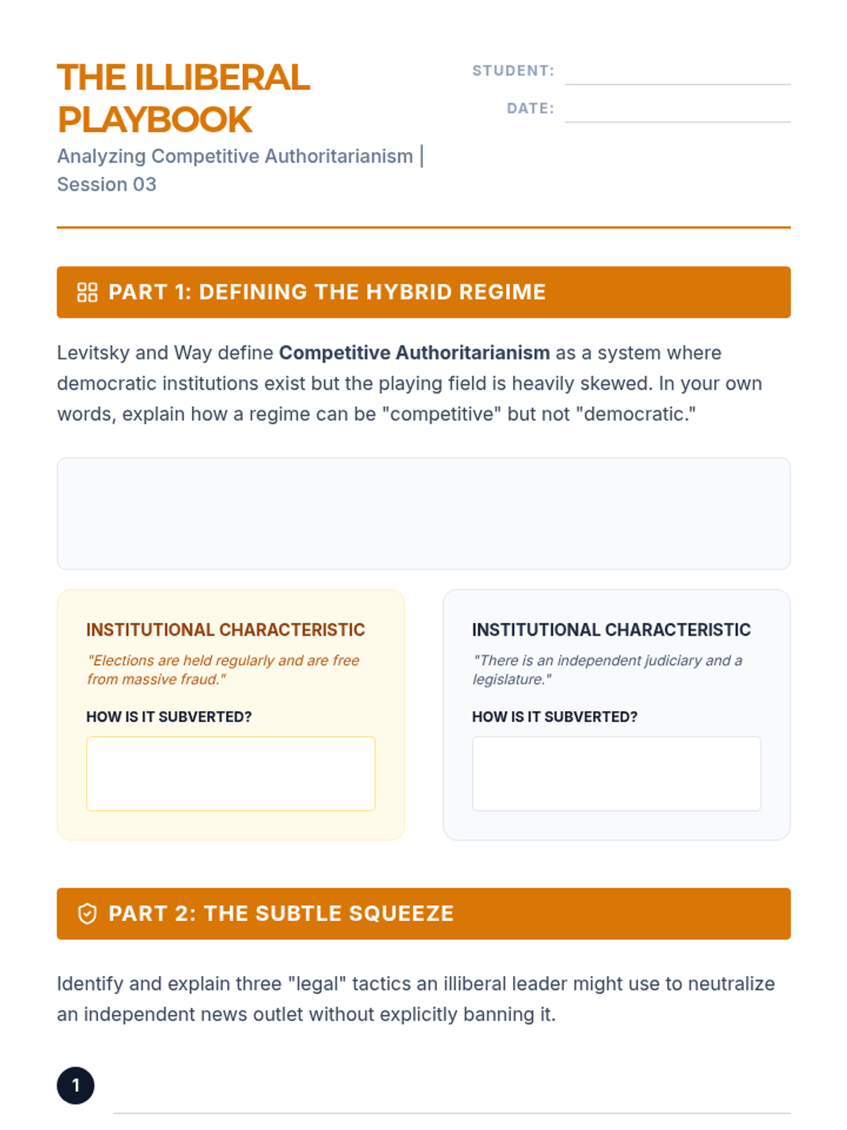 A comparative case study approach to examining how power is distributed and limited across different regime types, from consolidated democracies to totalitarian states.