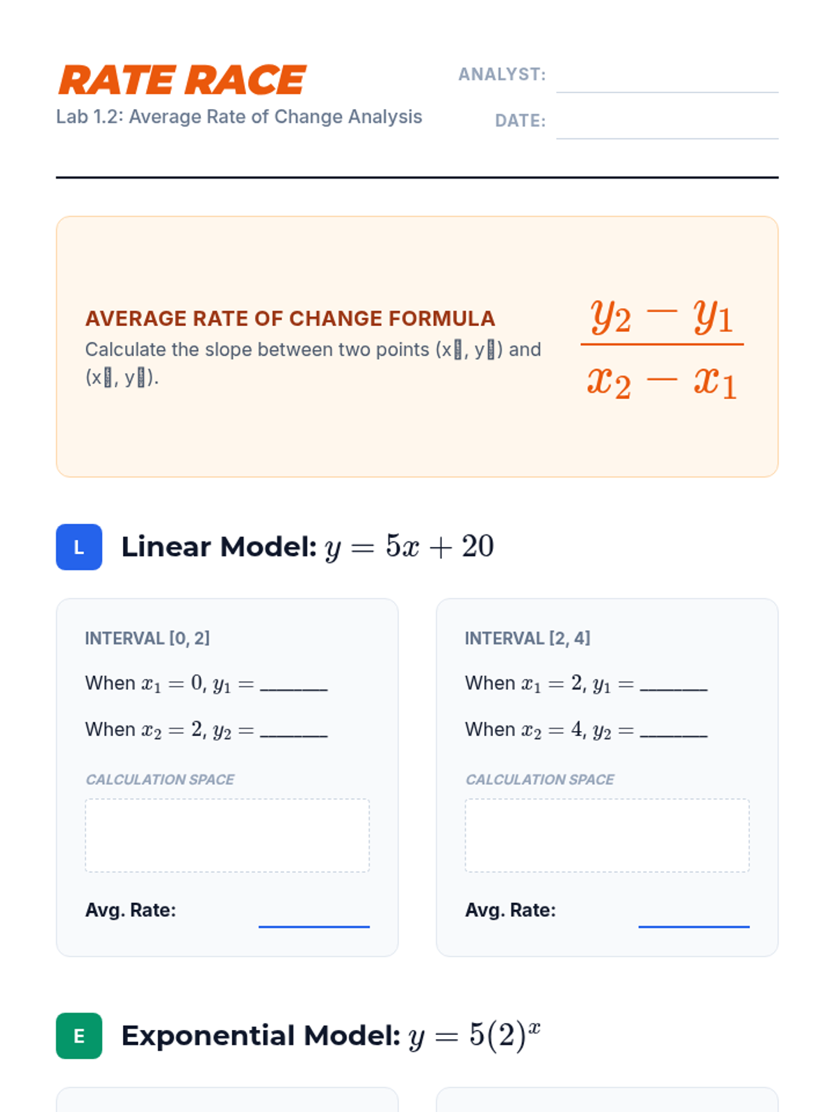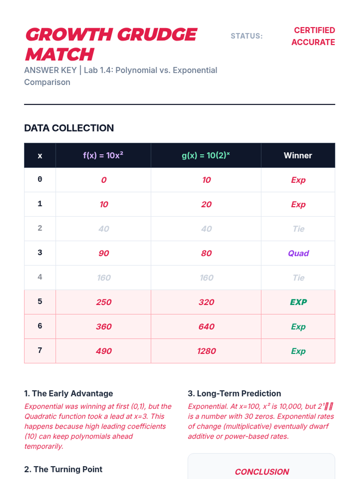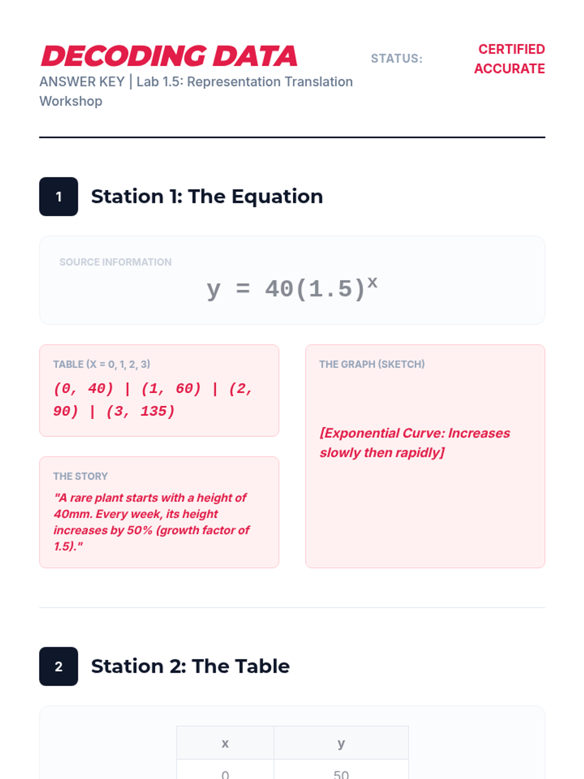 This workshop-style sequence focuses on the technical skills required to construct and compare function representations explicitly. Students move from conceptual understanding to algebraic rigor, learning to write equations for different growth models and comparing their rates of change directly.