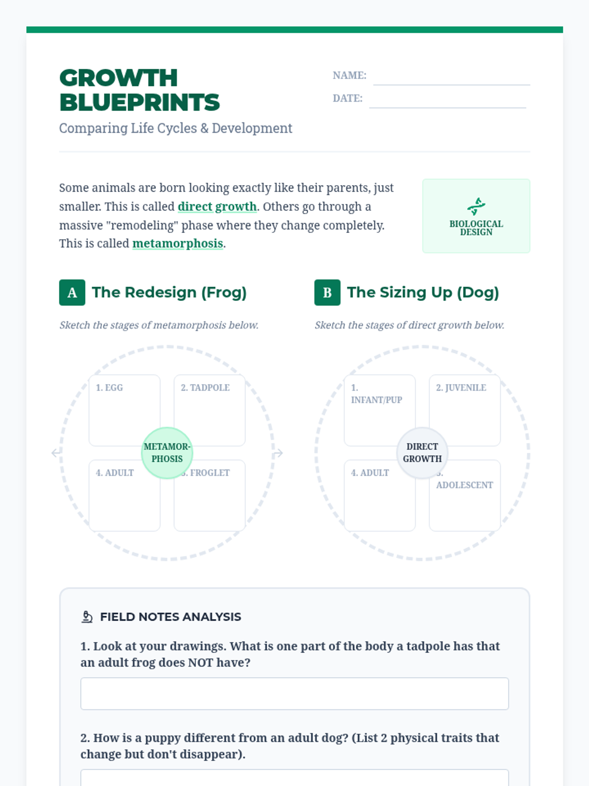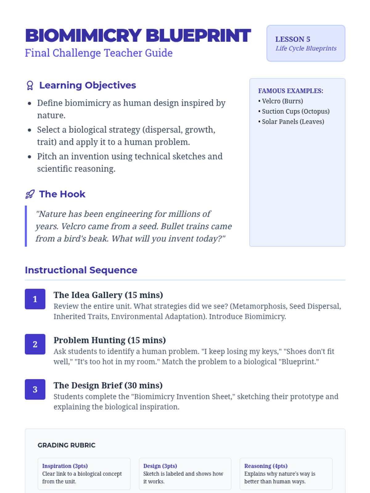 A project-based unit exploring the diversity of life cycles, reproductive strategies, and inheritance in the natural world, culminating in a biomimicry engineering challenge.