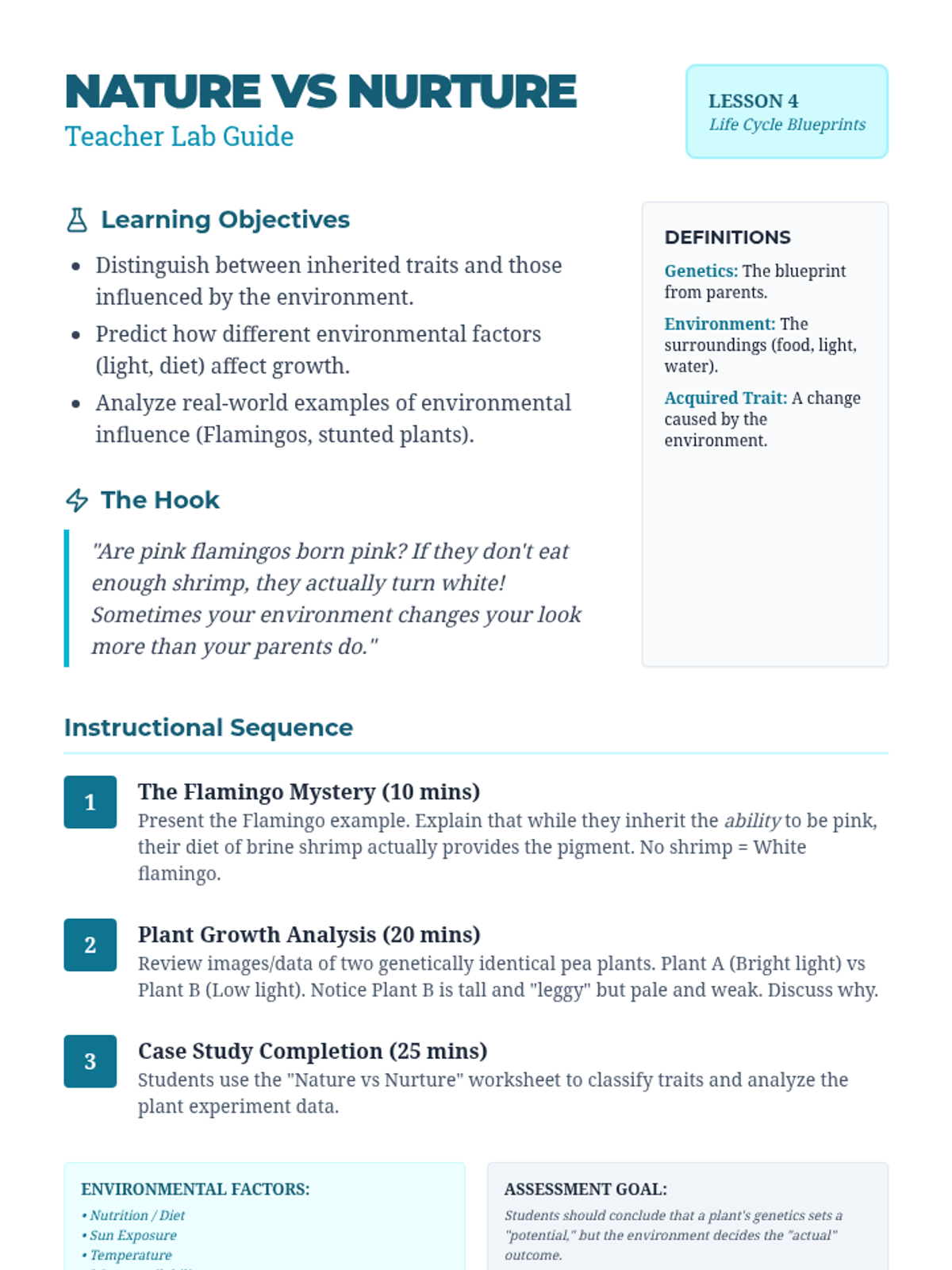 A 10-day project-based learning unit integrating 4th grade Math (multiplication/division) and Science (photosynthesis/life cycles). Students choose between designing a community garden or creating a garden business plan, applying their knowledge of plant systems to real-world calculations.