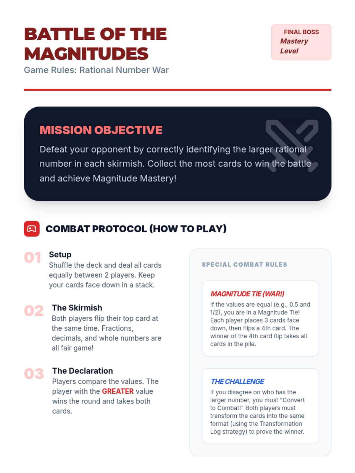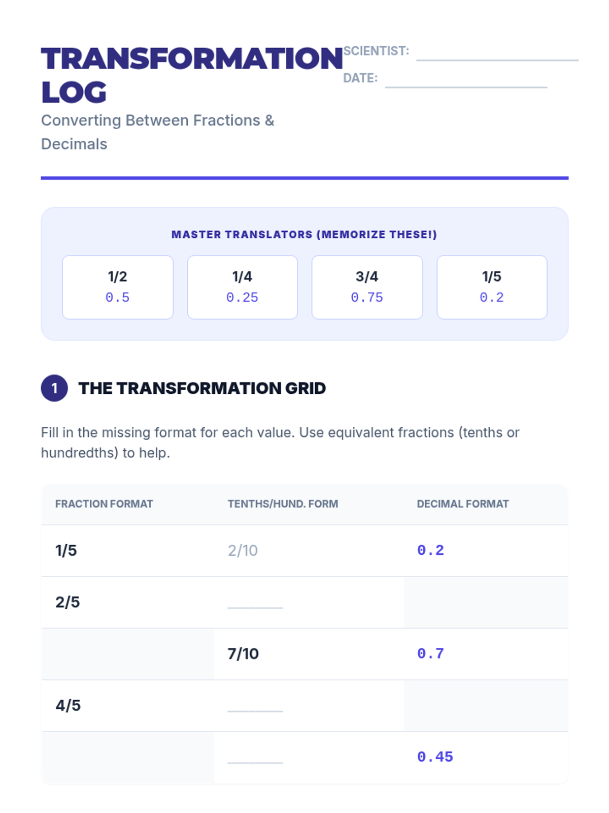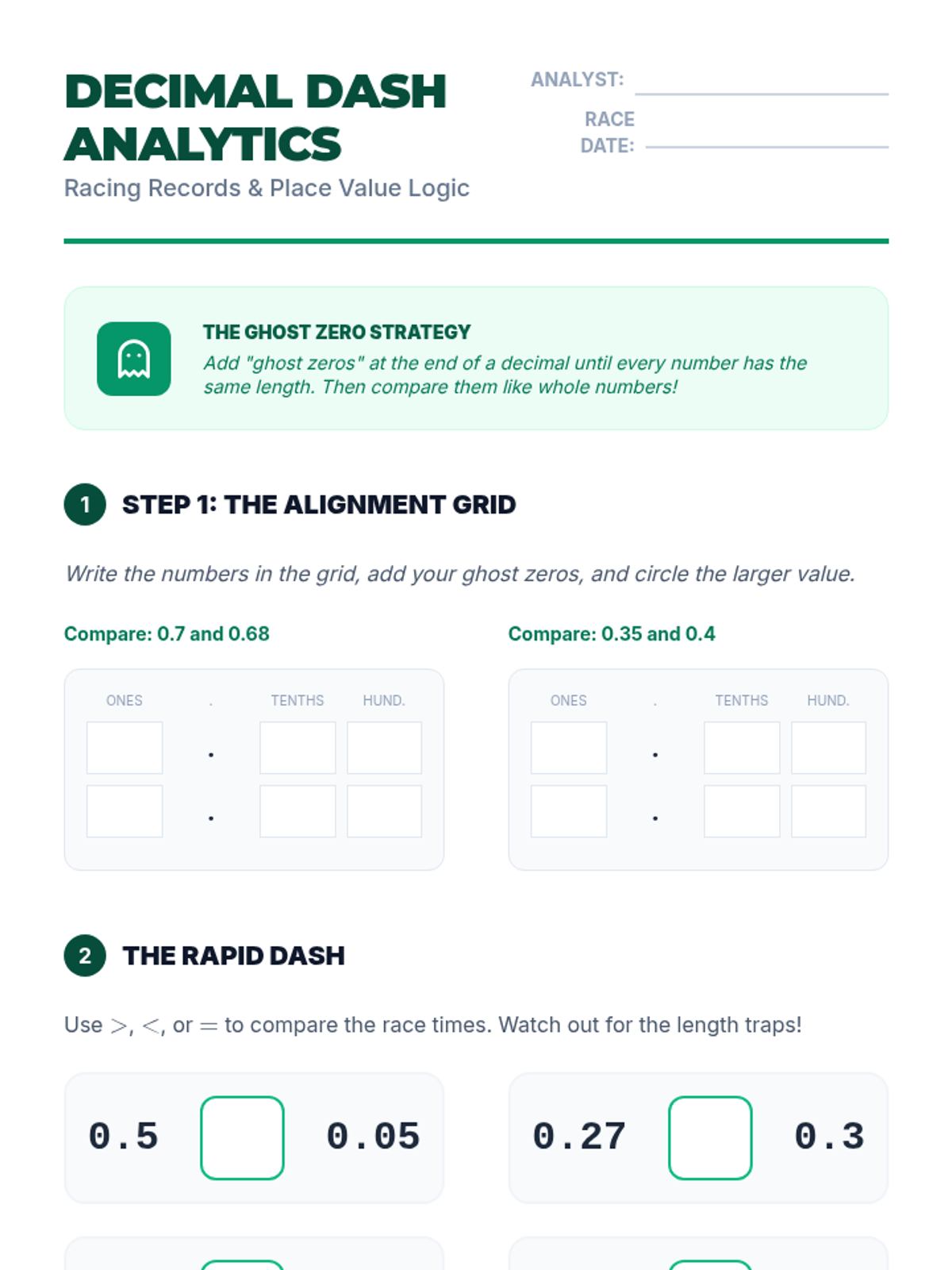 A comprehensive sequence for 4th graders to master comparing and ordering rational numbers (fractions and decimals). Students move from basic reasoning about fraction sizes to complex ordering of mixed formats using logic-based strategies and kinetic activities.