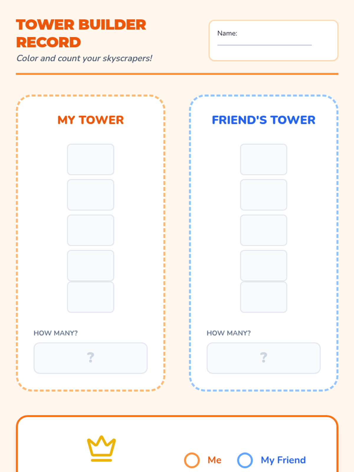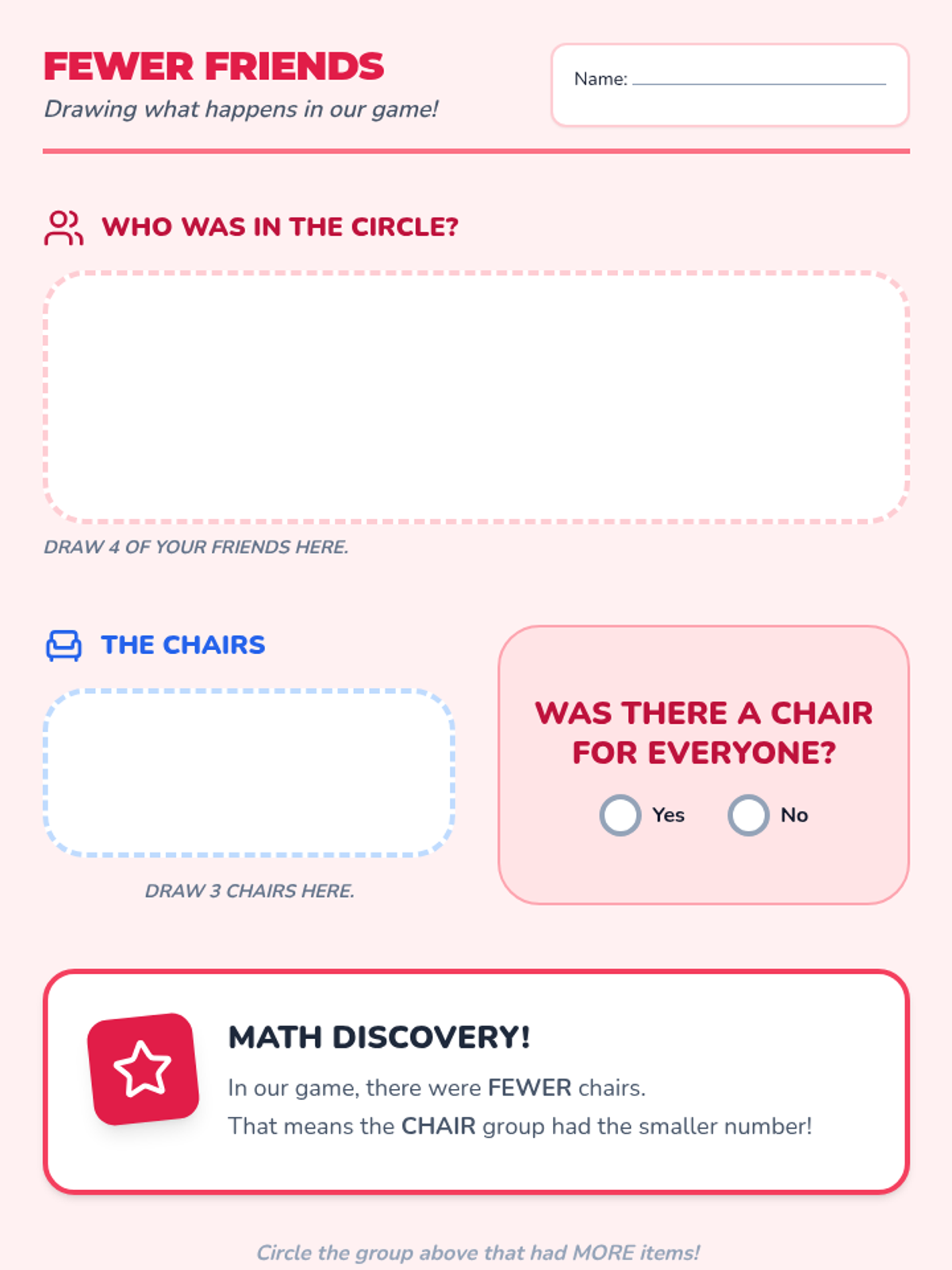 A foundational Pre-K math sequence focusing on one-to-one correspondence and visual comparison of quantities. Students explore concepts of more, less, and fewer through physical pairing, tower building, voting, and balancing scales.