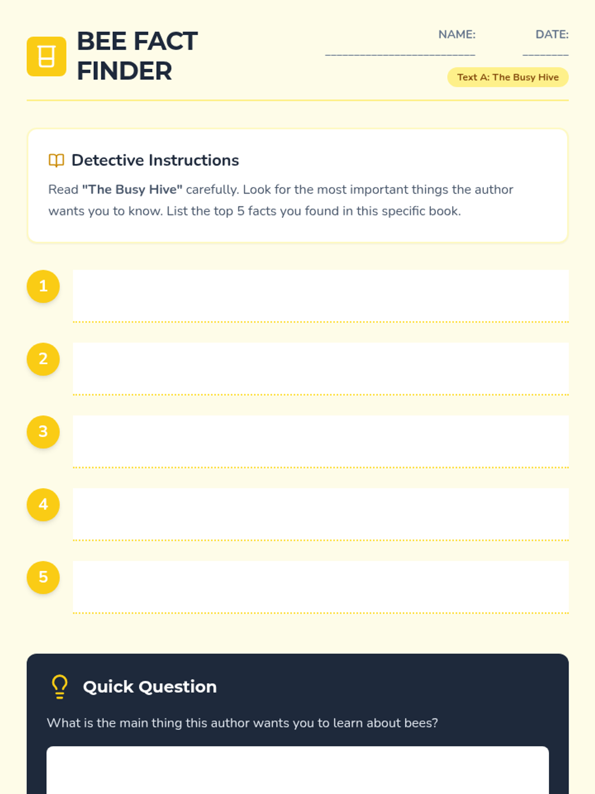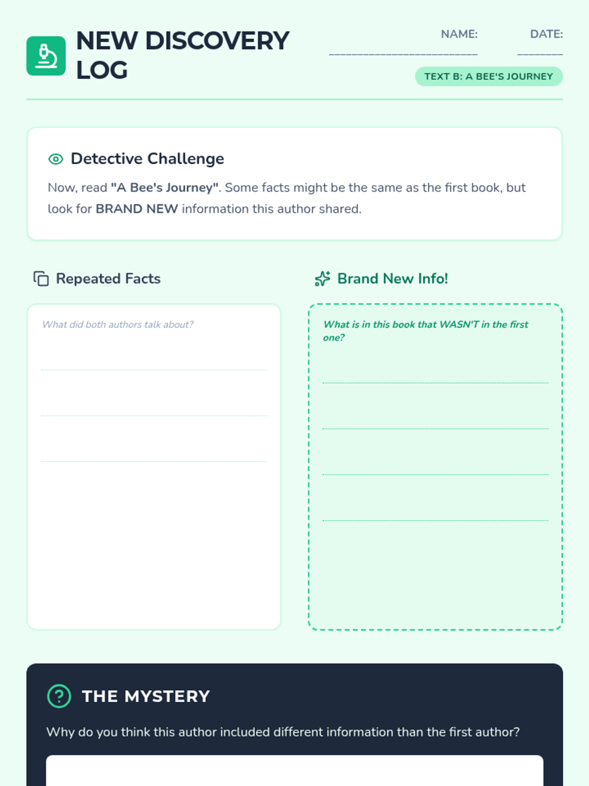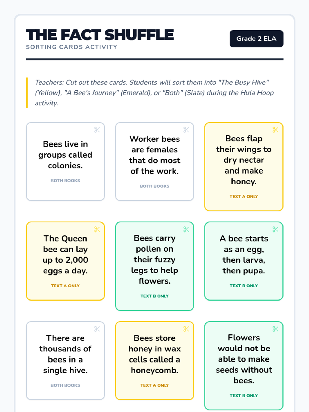 A 5-lesson sequence for 2nd-grade students exploring how different authors present information on the same topic (Honeybees). Students analyze two distinct texts, compare facts and visual features, and synthesize information into a final piece of writing.