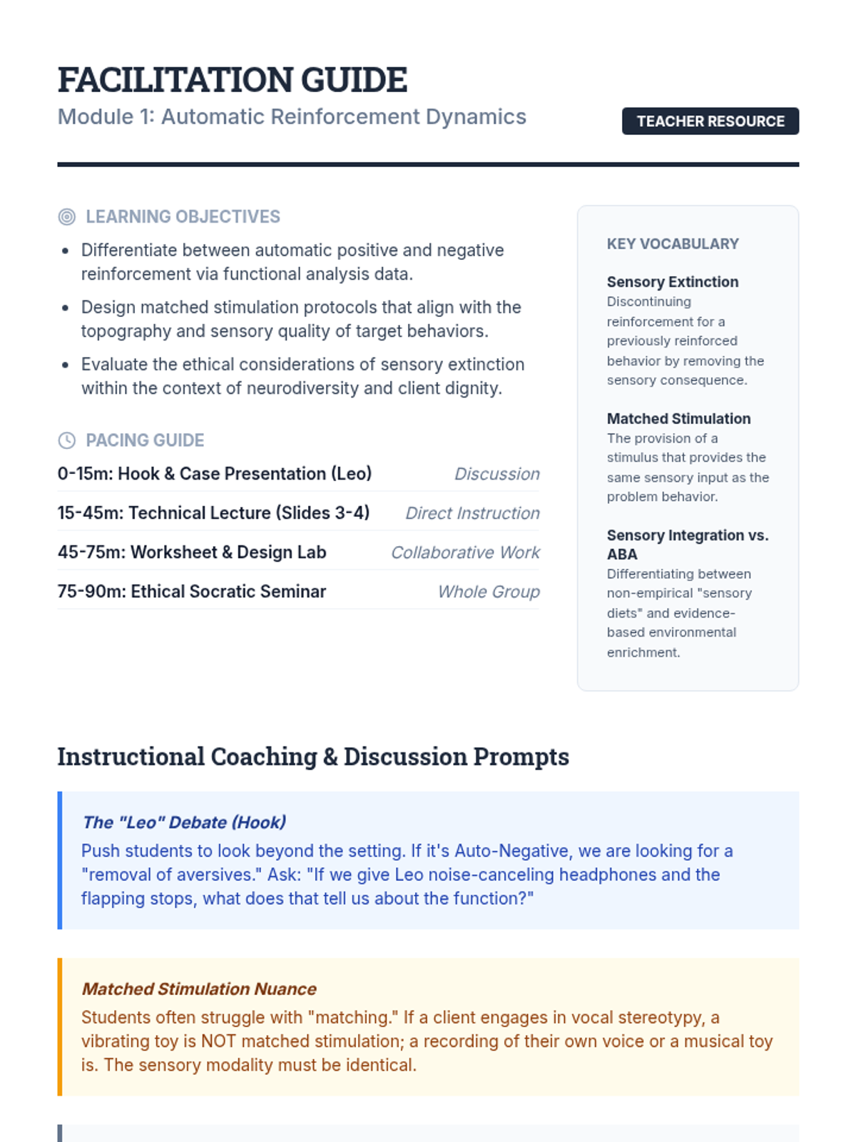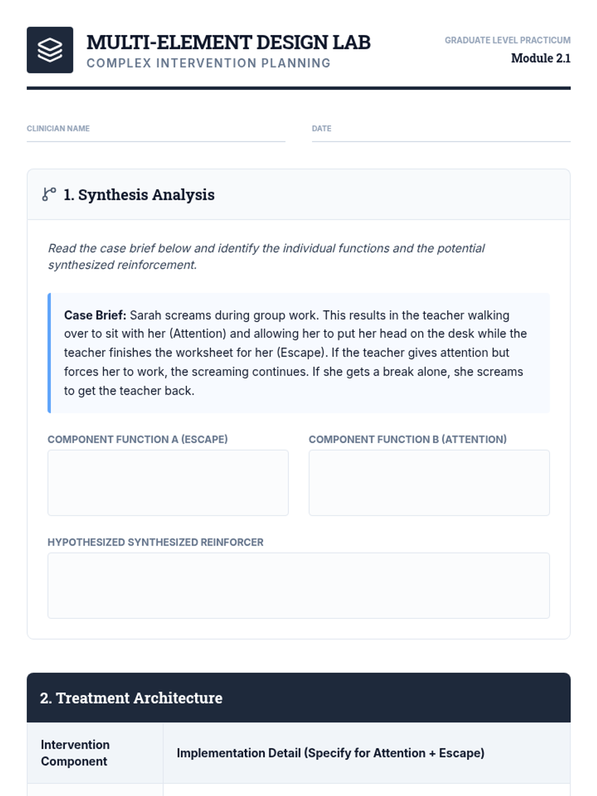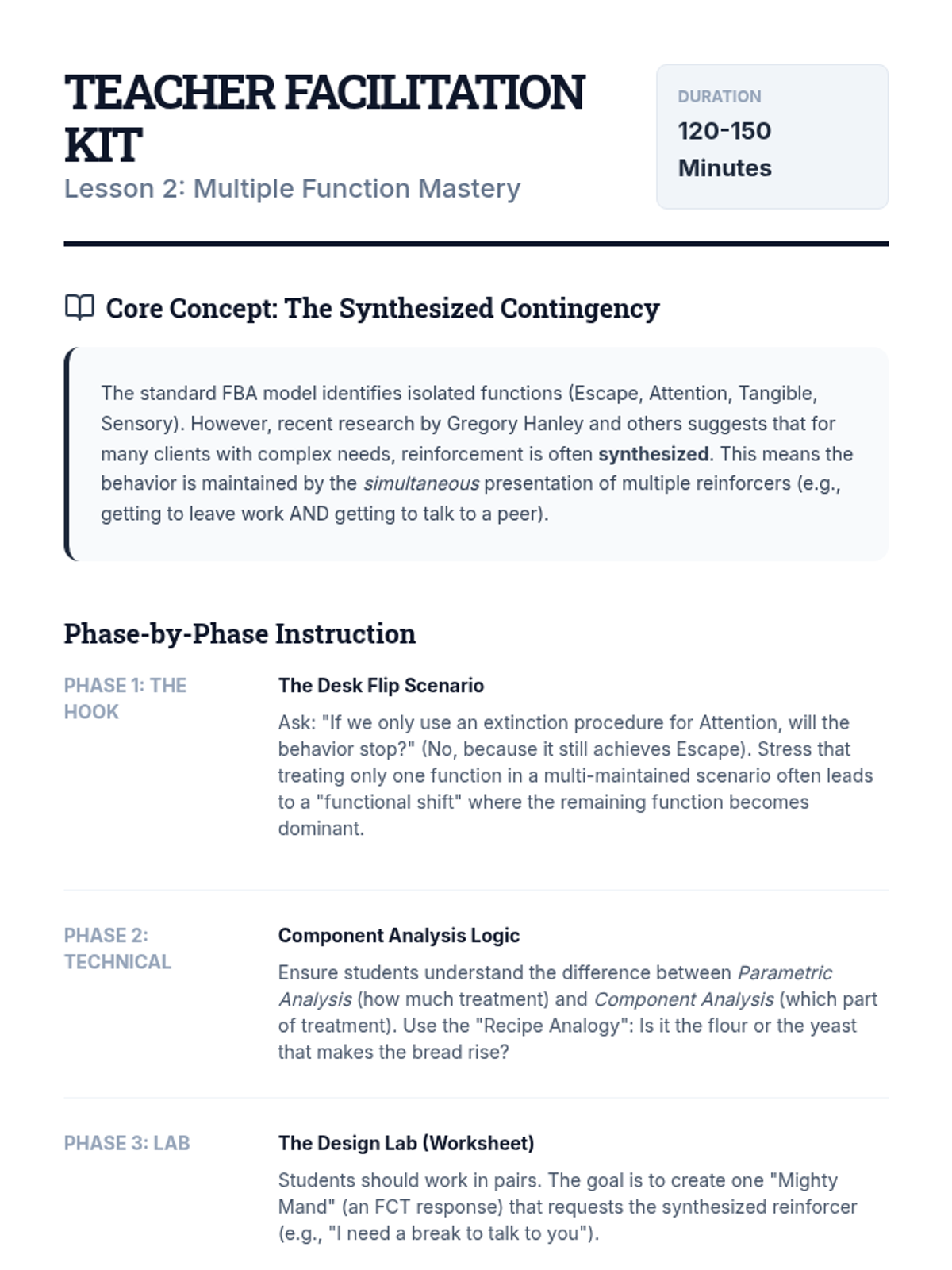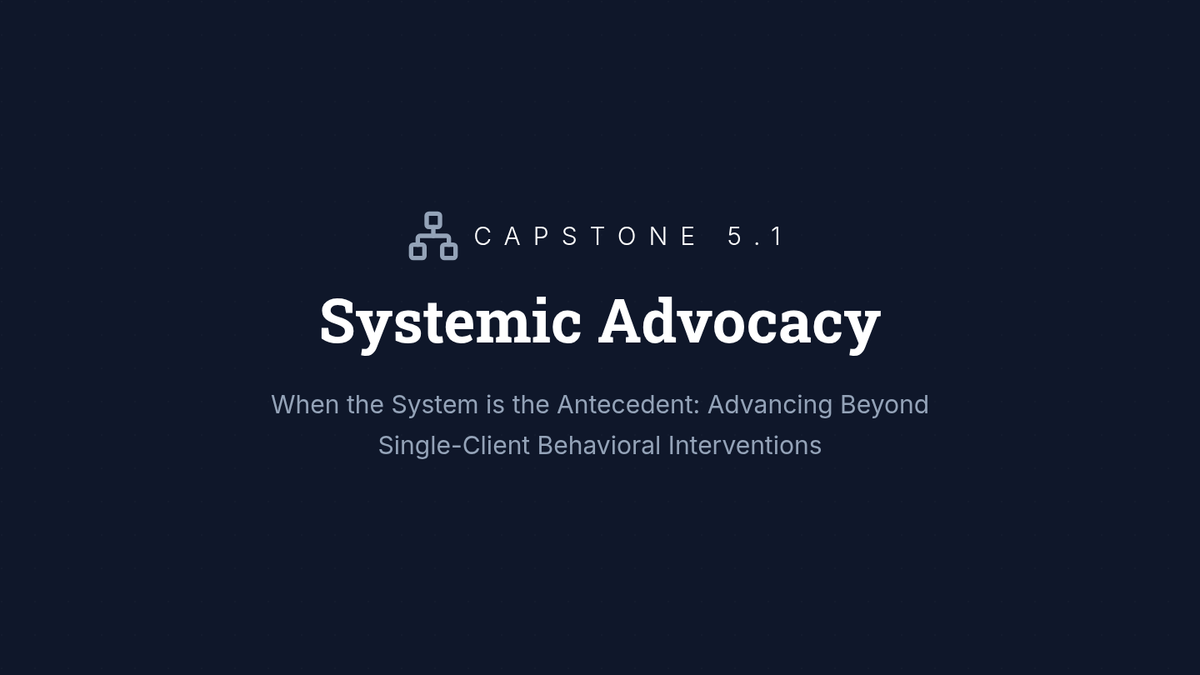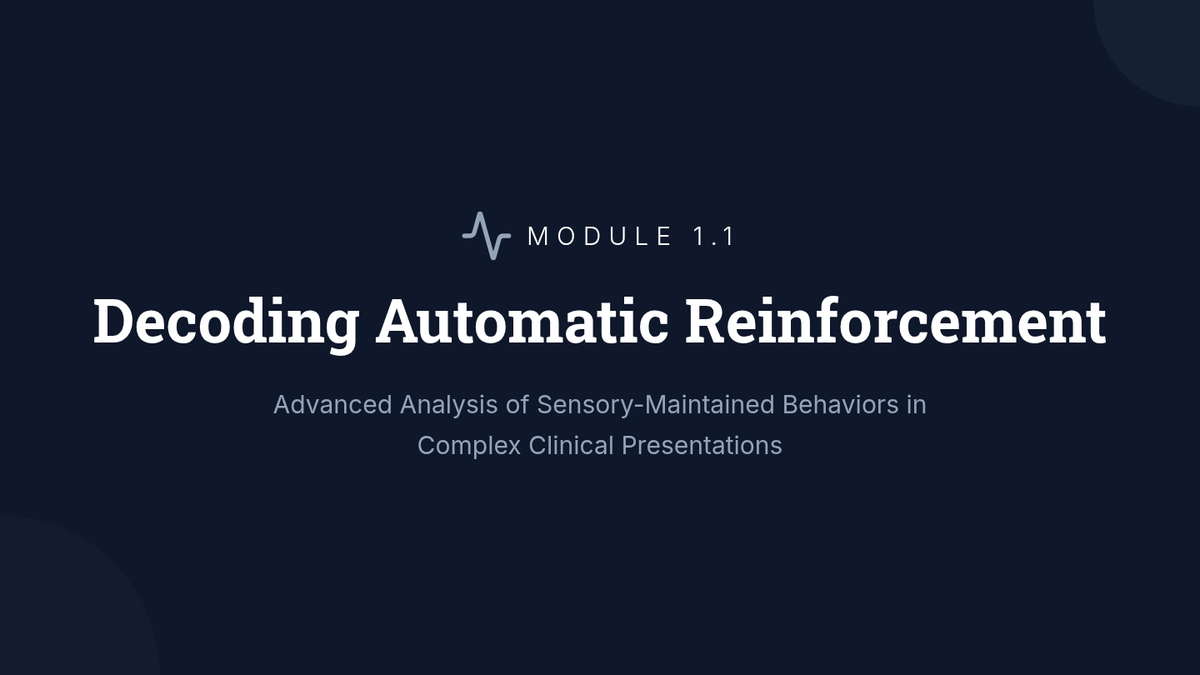 This advanced sequence for graduate students explores complex behavioral presentations, including automatic reinforcement, multiply-maintained behaviors, ethical dilemmas, and systemic barriers in function-based interventions.
