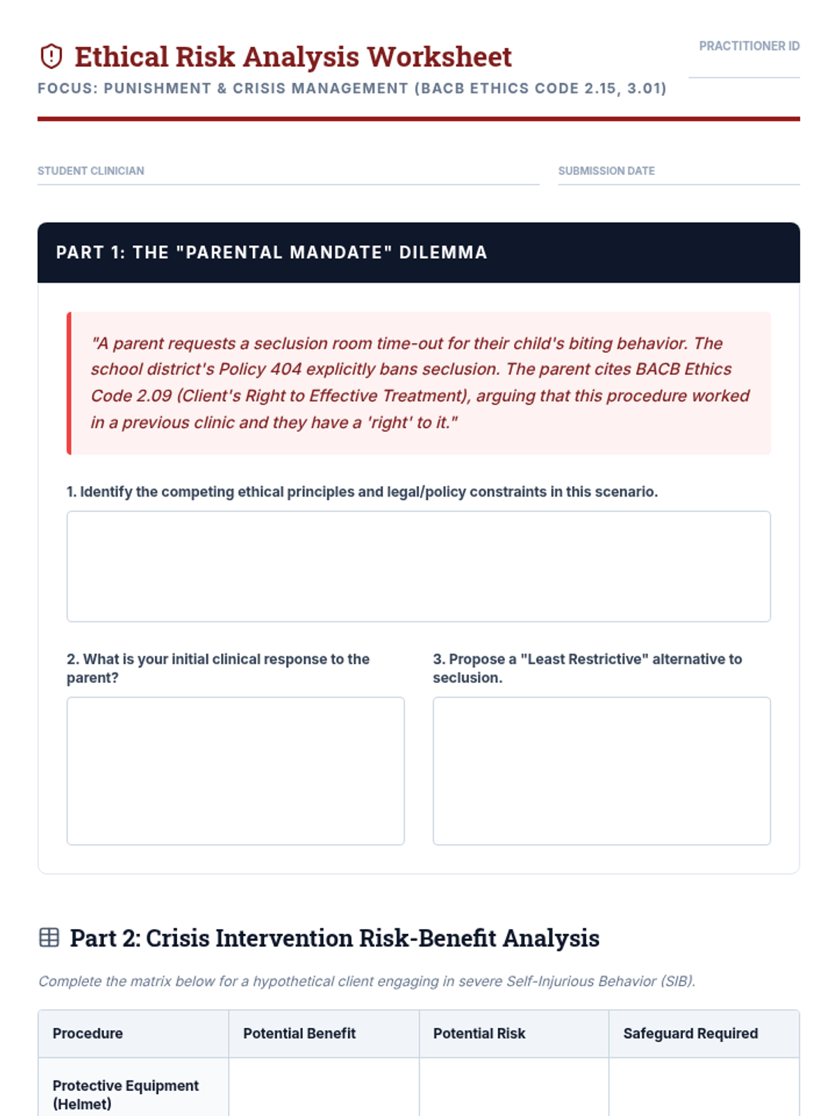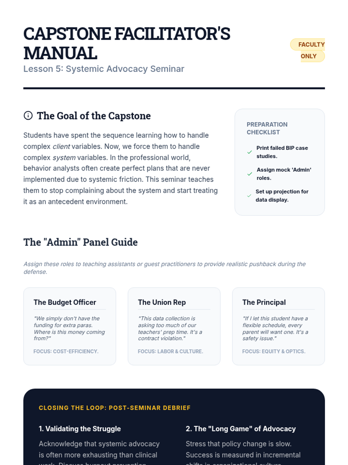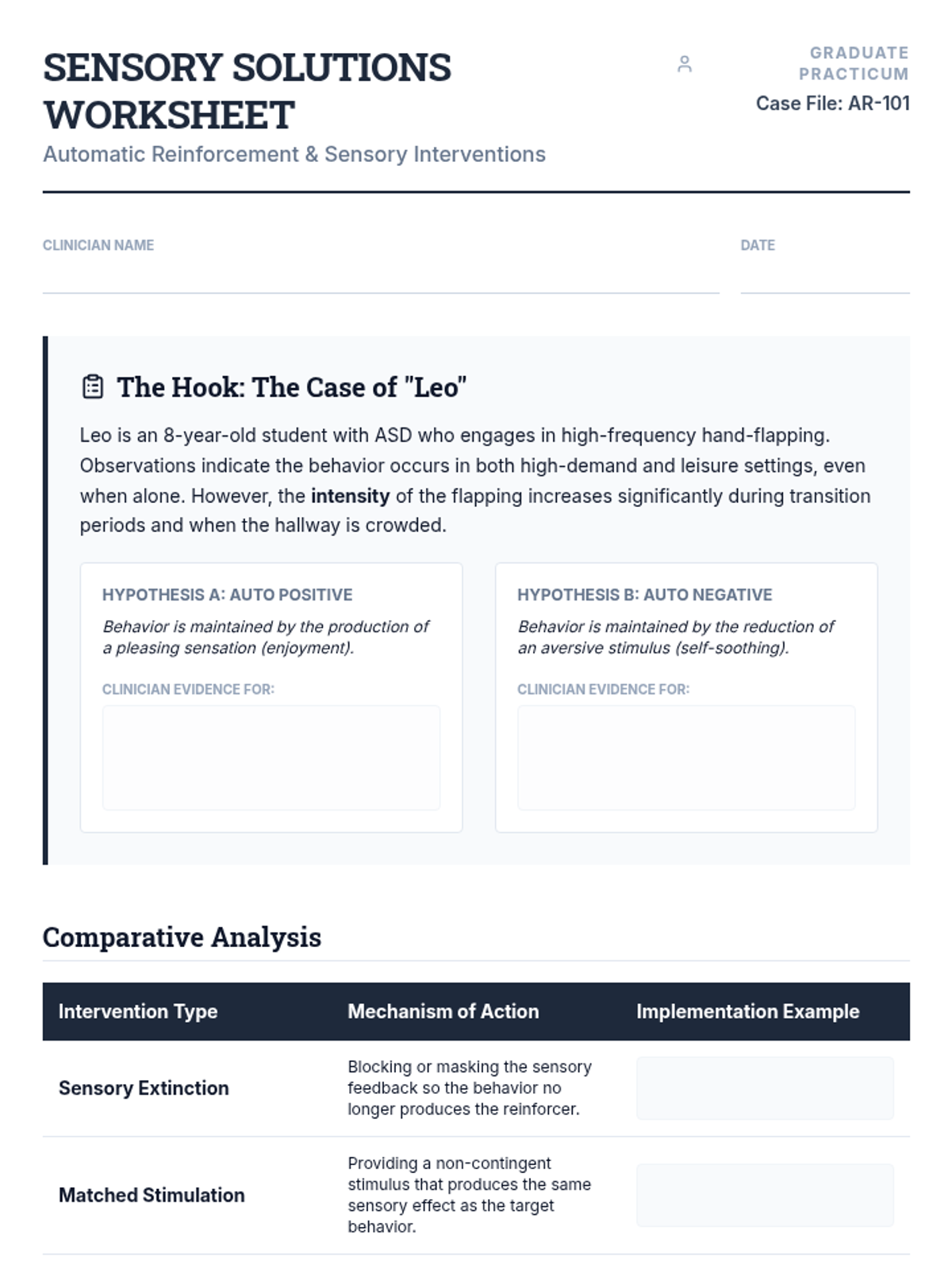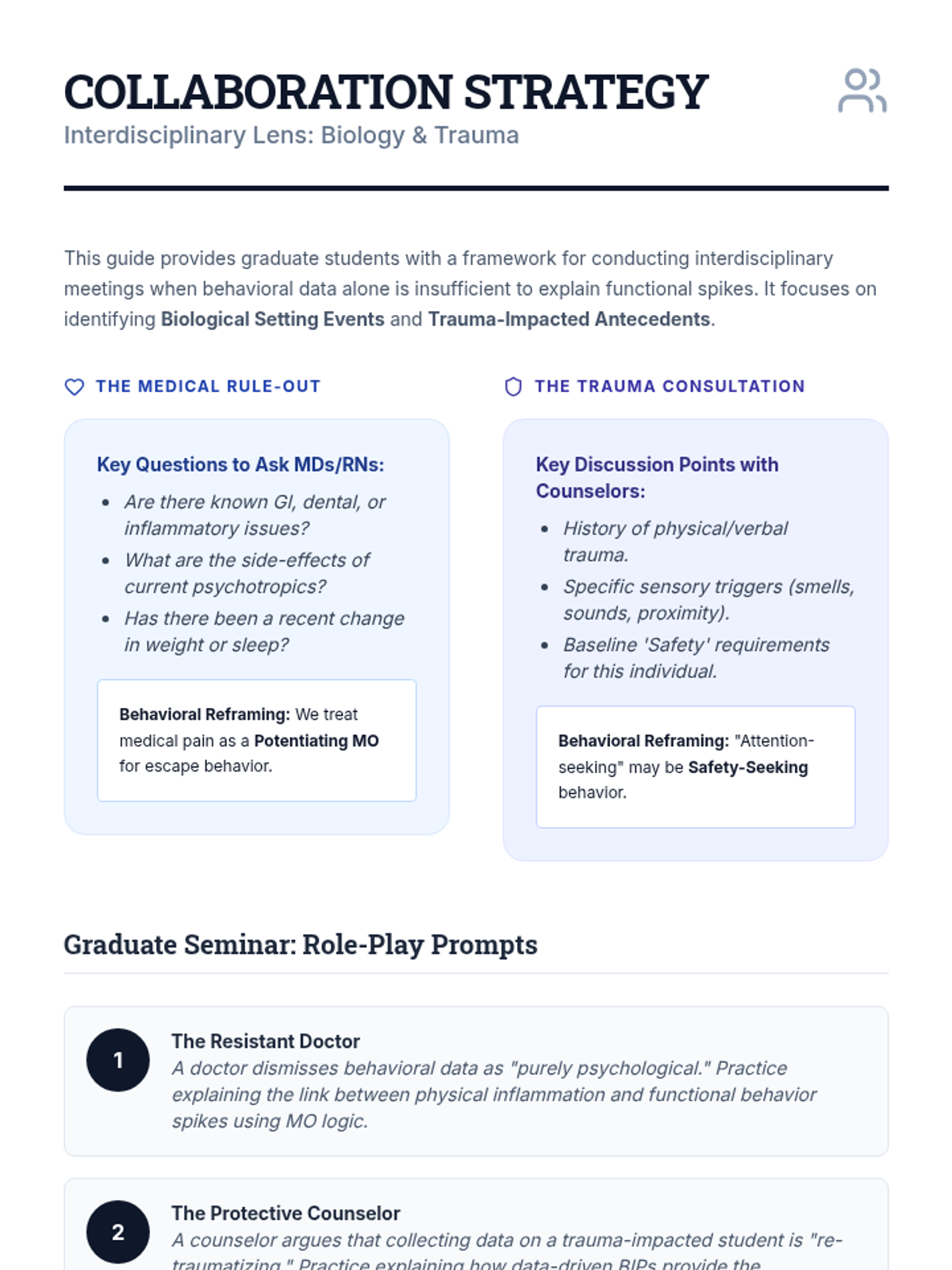 This advanced sequence for graduate students explores complex behavioral presentations, including automatic reinforcement, multiply-maintained behaviors, ethical dilemmas, and systemic barriers in function-based interventions.