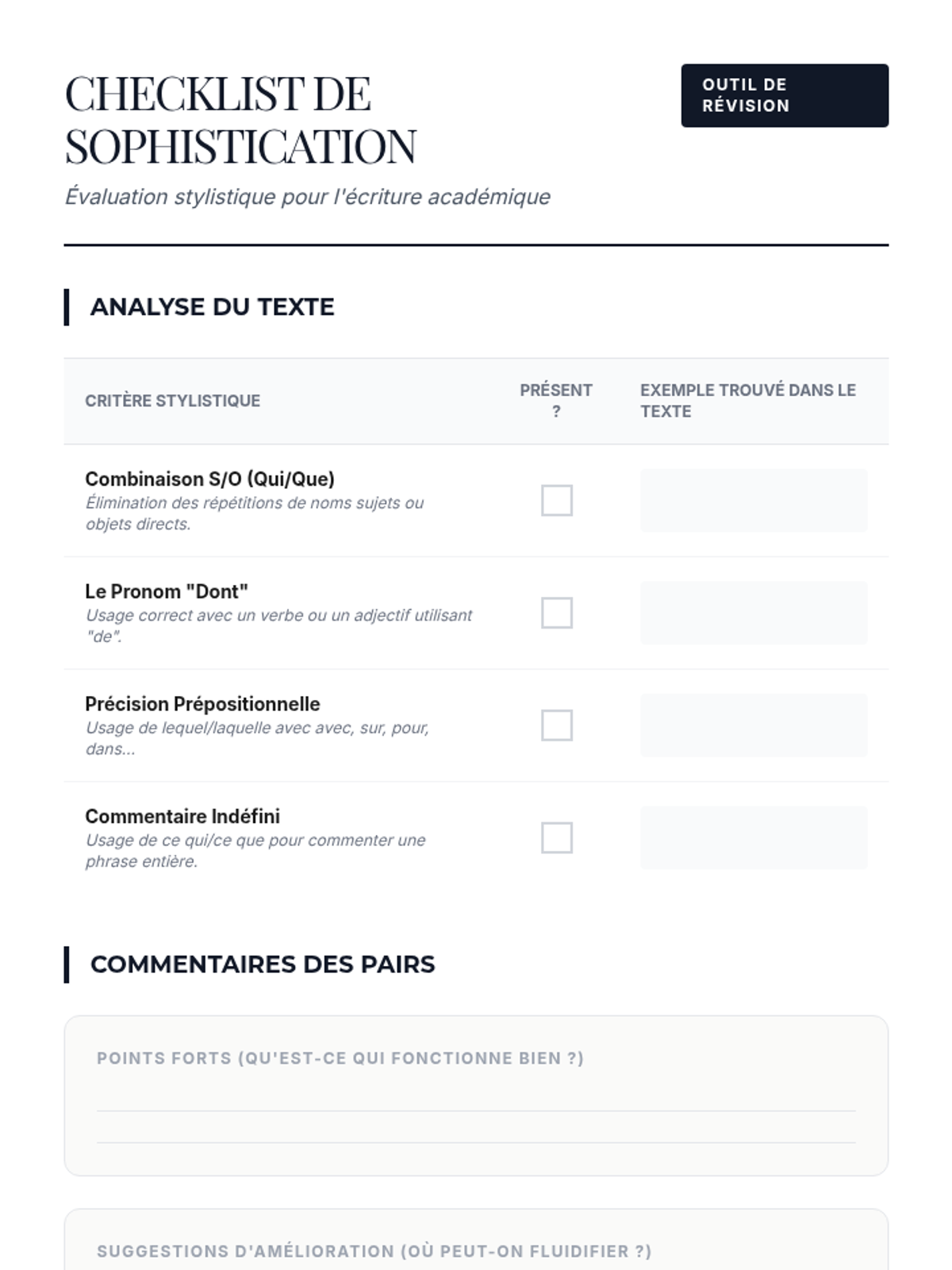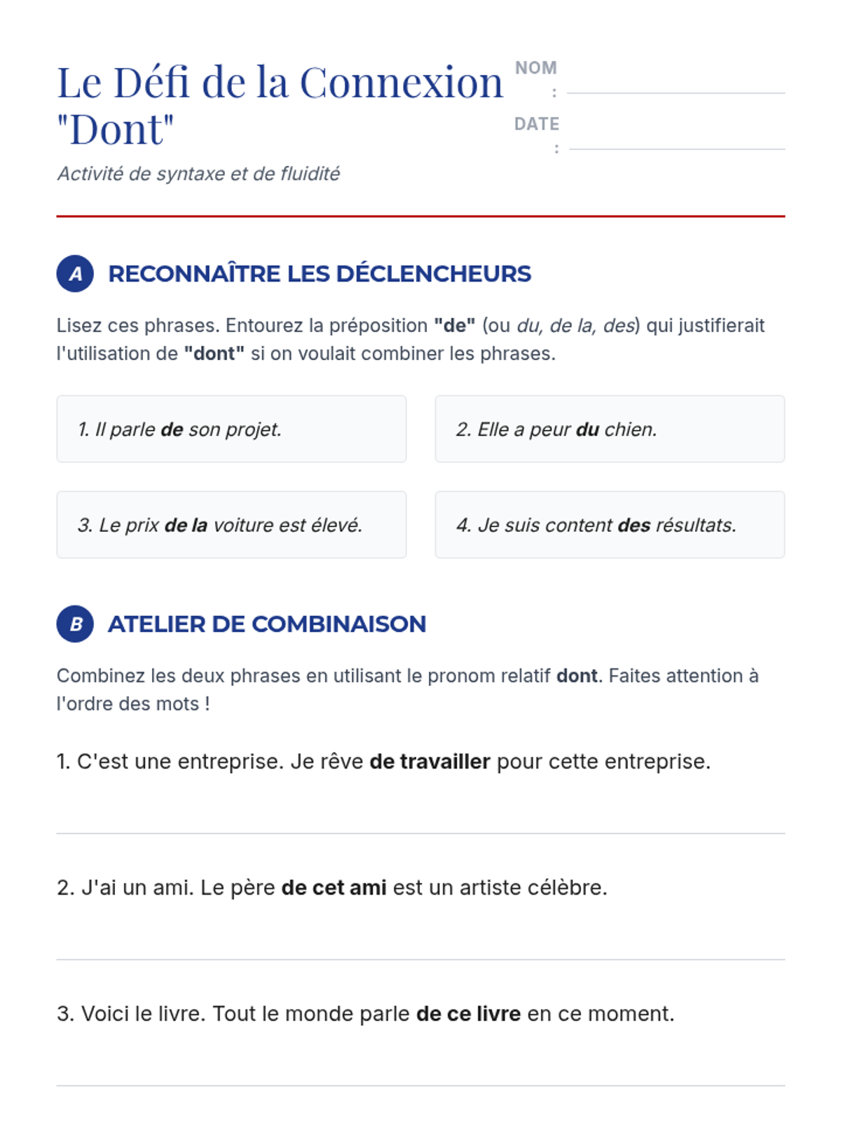 A comprehensive sequence for intermediate French students focused on moving from simple, choppy sentences to sophisticated, multi-clause academic writing using relative pronouns. Students master the mechanics of qui, que, où, dont, lequel, and indefinite relative pronouns through interactive workshops and stylistic editing.