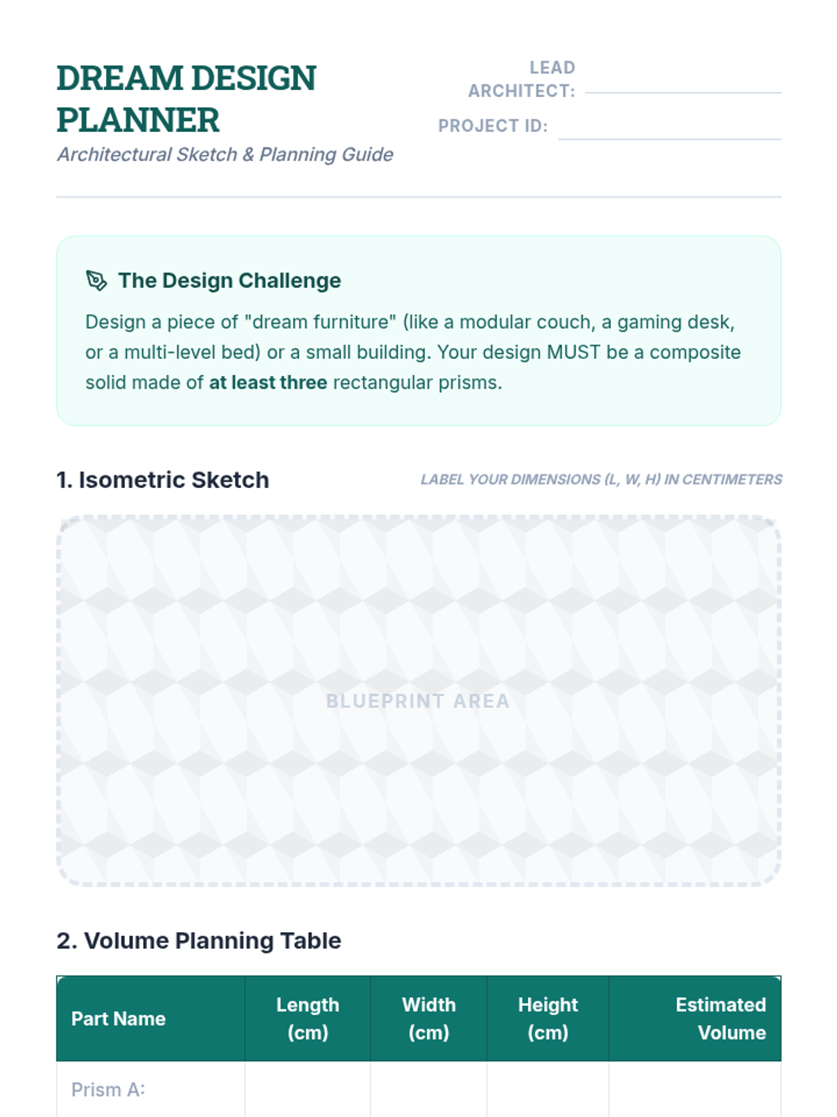 This sequence teaches 5th-grade students to find the volume of composite 3D shapes by decomposing them into rectangular prisms. Students explore additive and subtractive strategies through hands-on building, mathematical calculations, and a final design project.