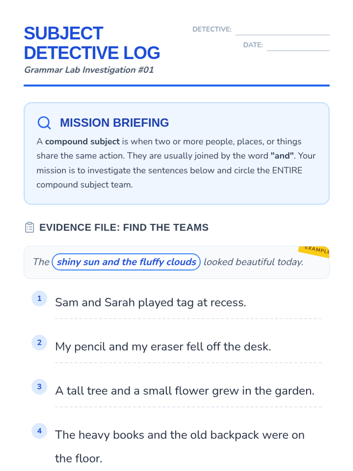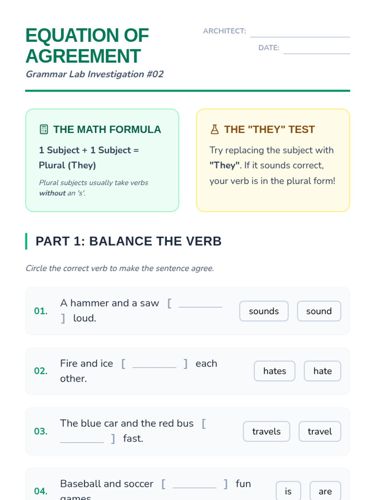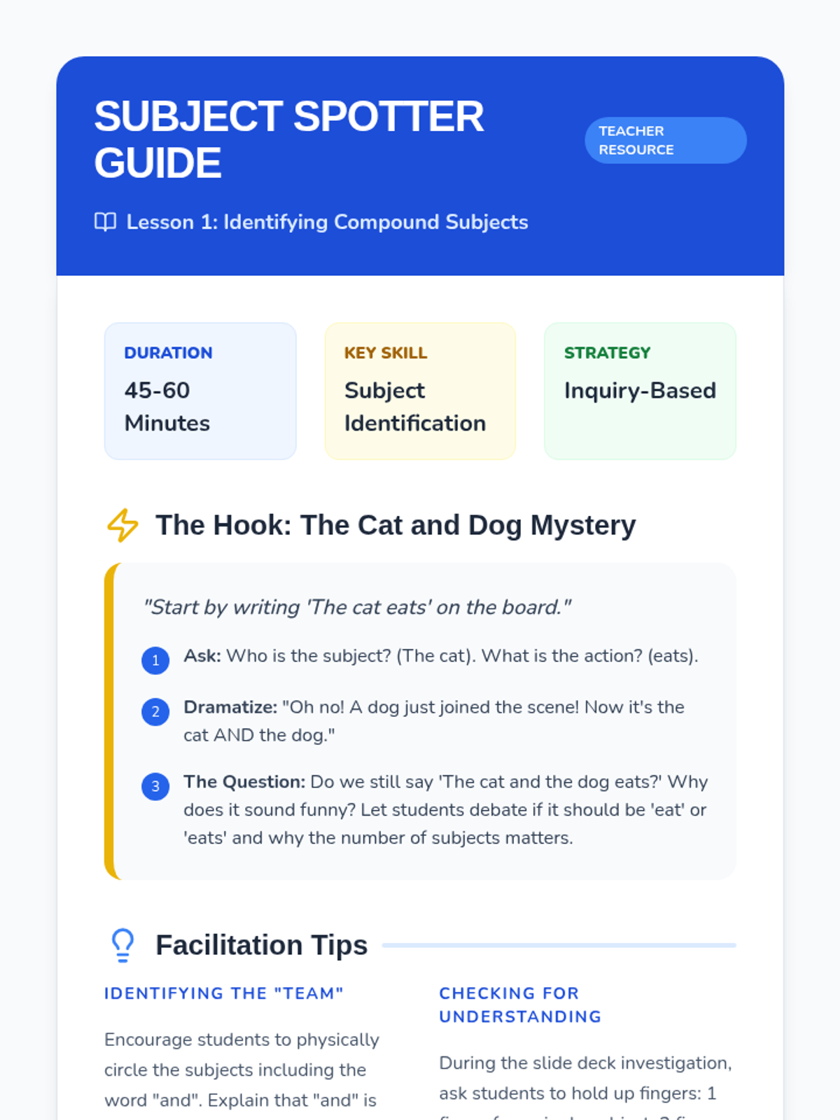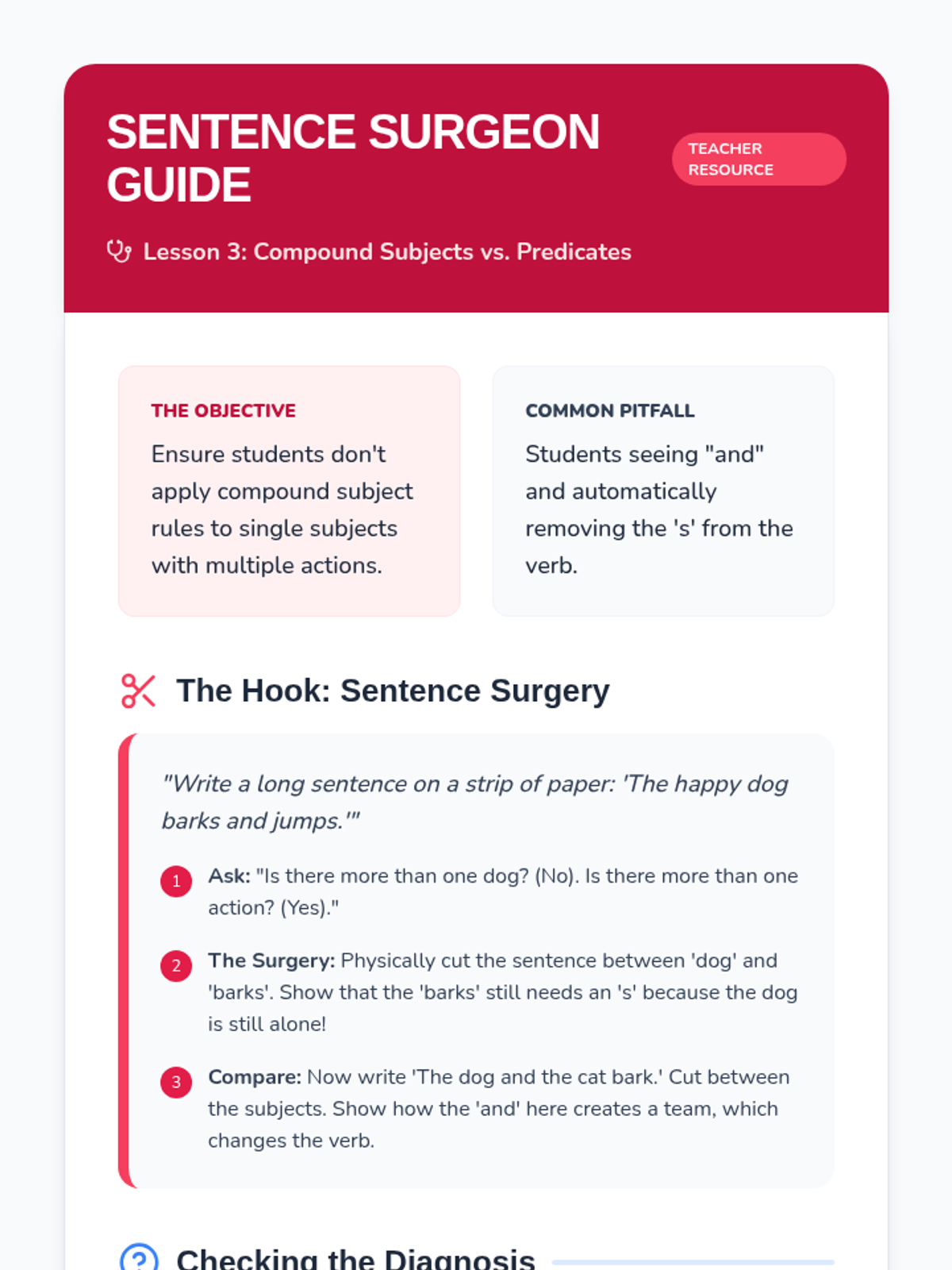 A 5-lesson inquiry-based sequence for 3rd graders to master subject-verb agreement with compound subjects, using the logic of 'Grammar Math' and 'Sentence Surgery'.