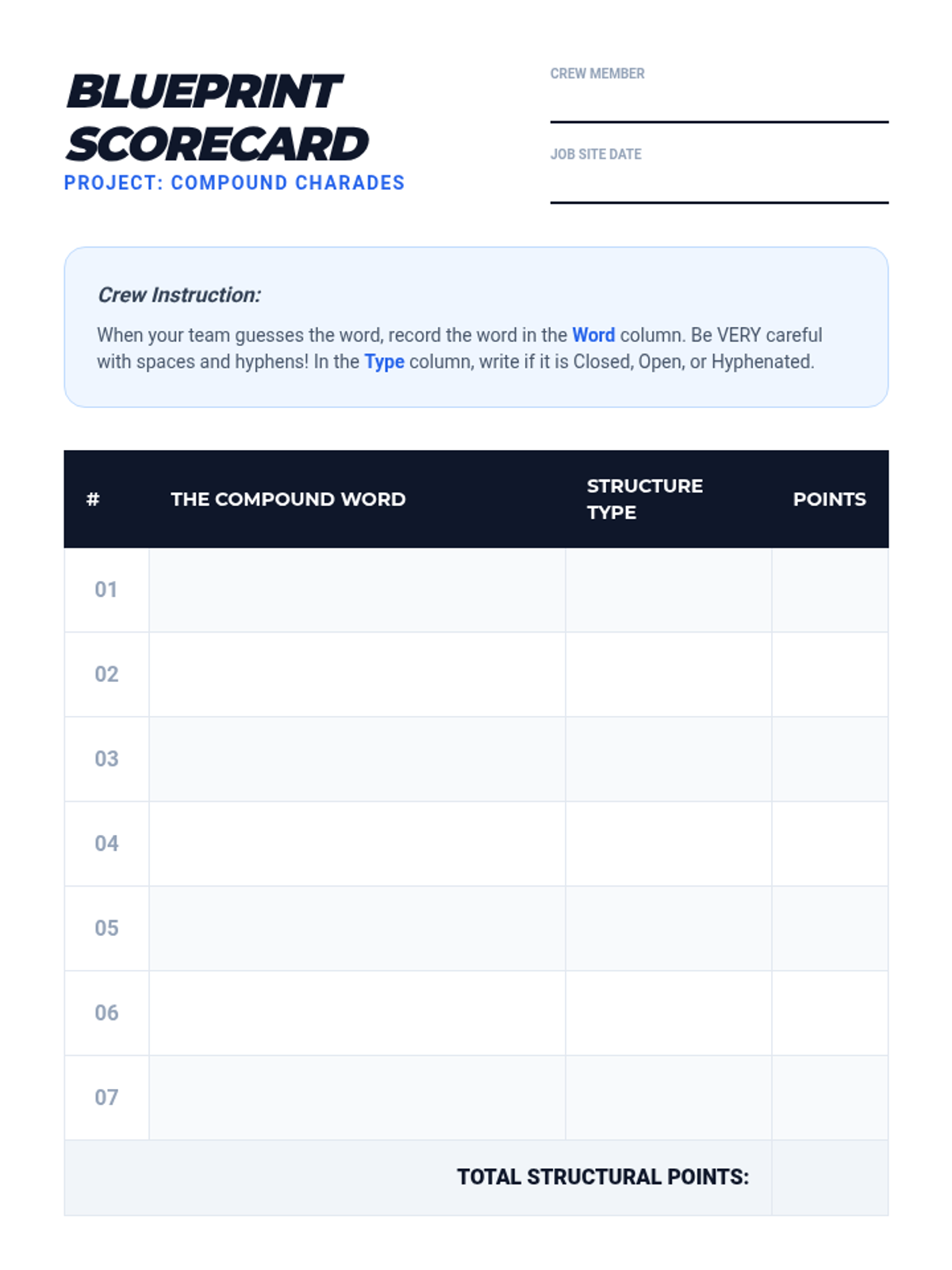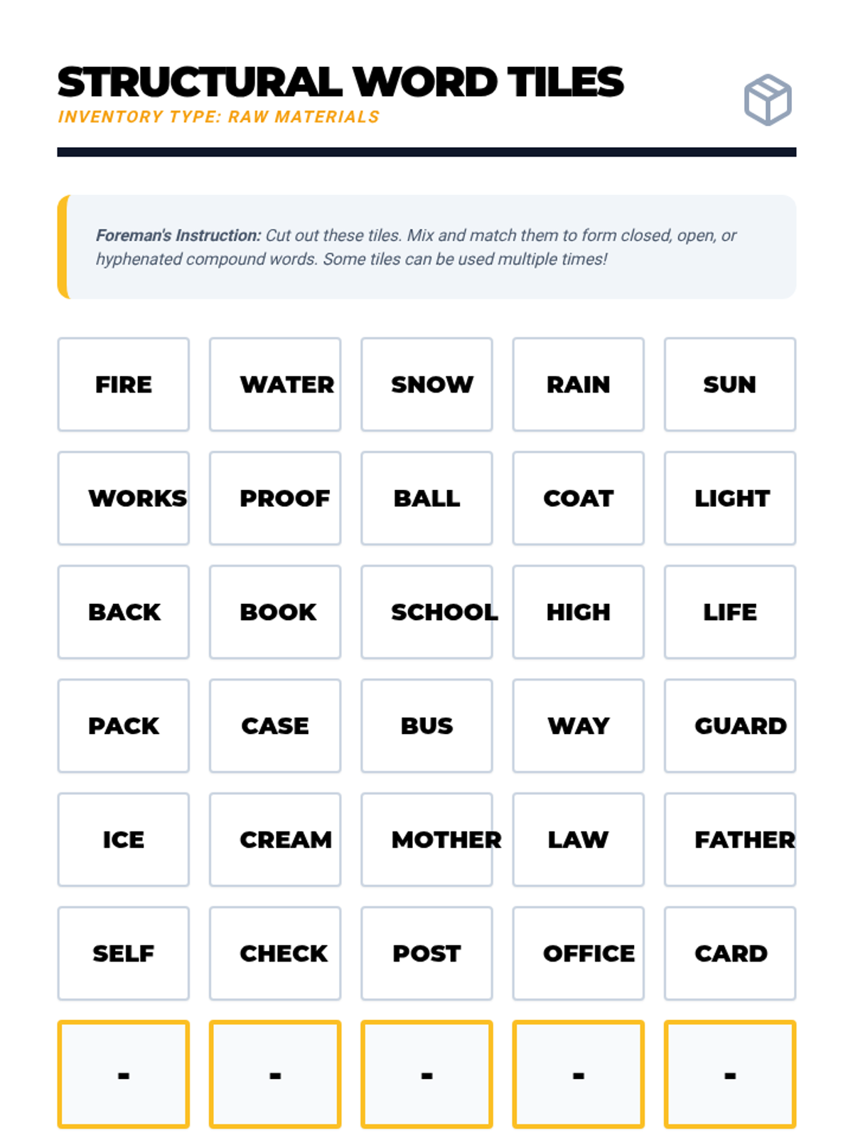 A high-energy, gamified unit where 4th graders act as 'Master Builders' to master the identification, categorization, and formation of open, closed, and hyphenated compound words.