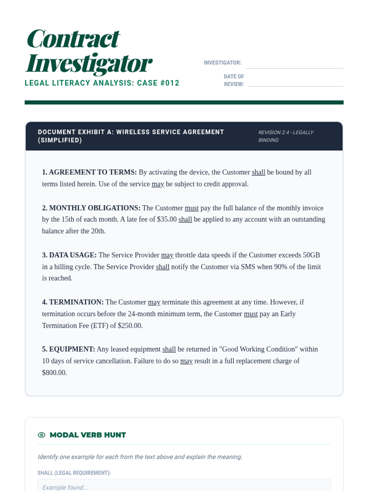 A comprehensive unit for 12th-grade English learners focusing on functional literacy for the workplace and adult life. Students learn to navigate professional emails, technical manuals, legal contracts, complex forms, and troubleshooting guides, emphasizing precision, tone, and logical application.
