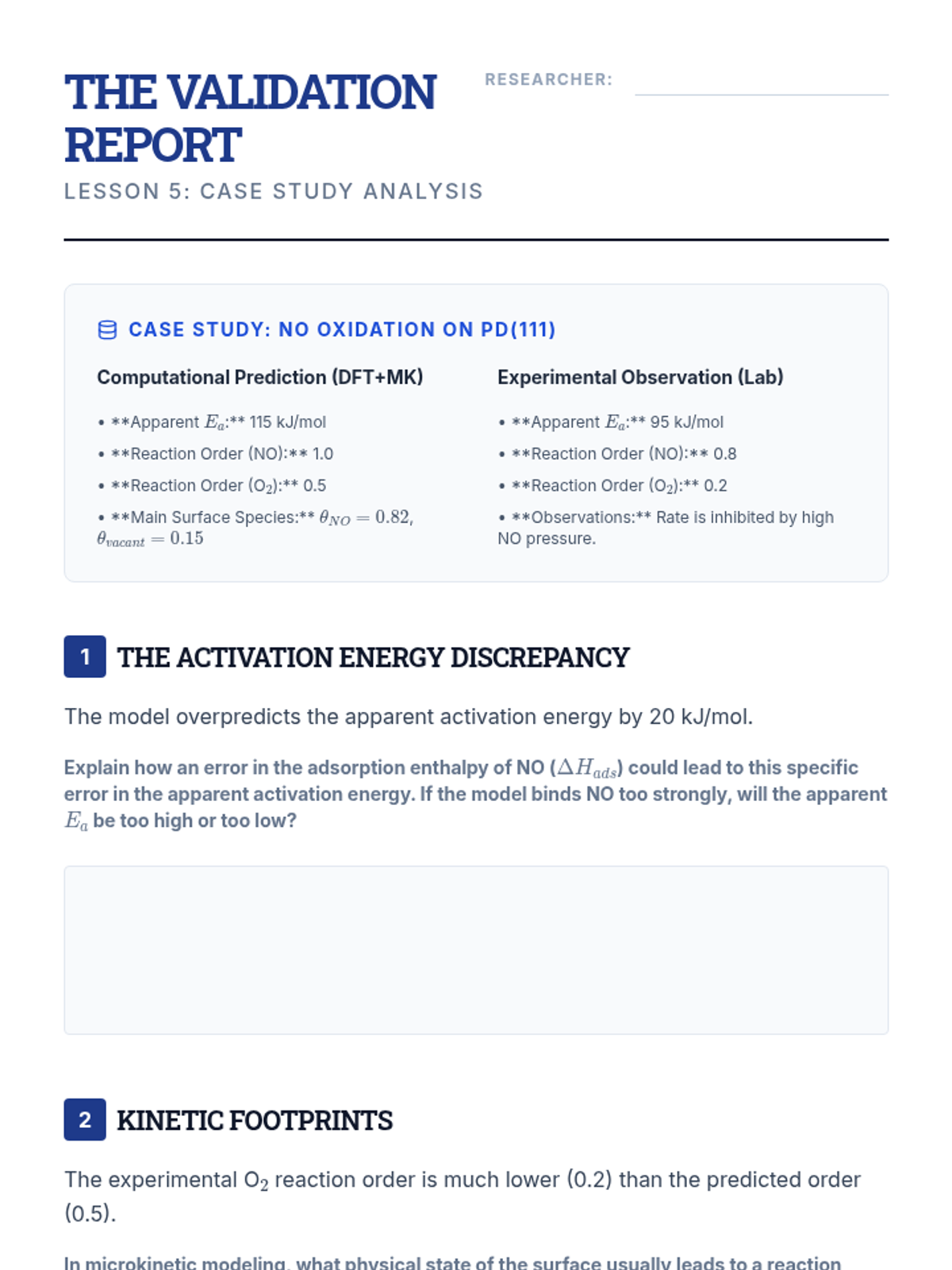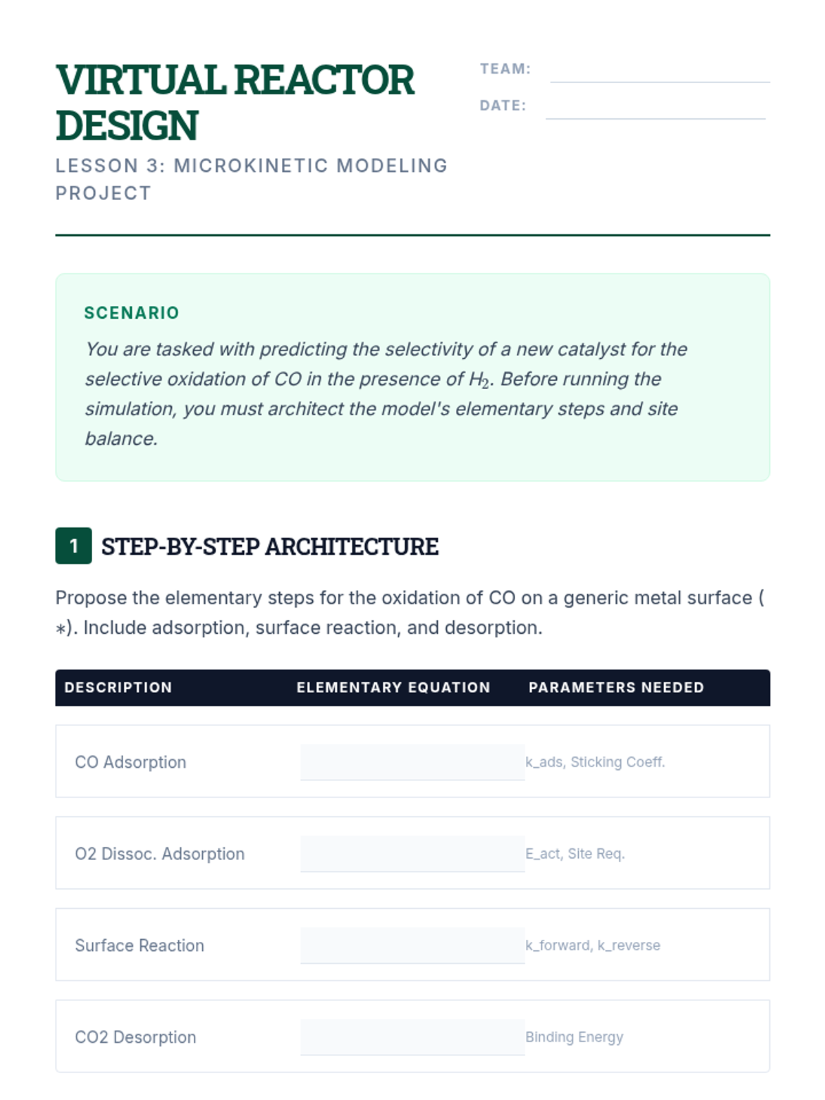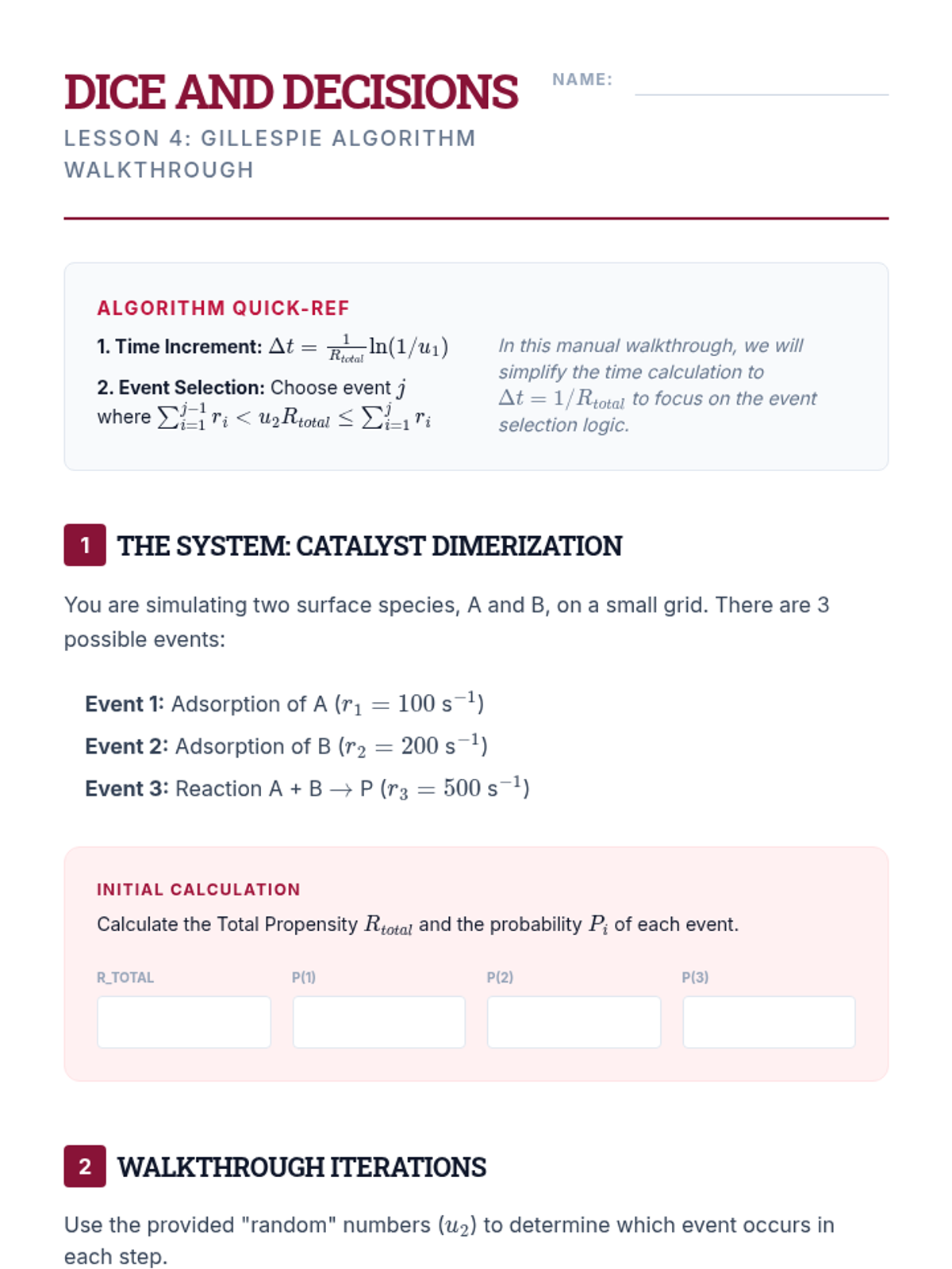 A graduate-level sequence exploring computational tools for predicting reaction kinetics, including Potential Energy Surfaces, RRKM theory, microkinetic modeling, and Kinetic Monte Carlo methods.
