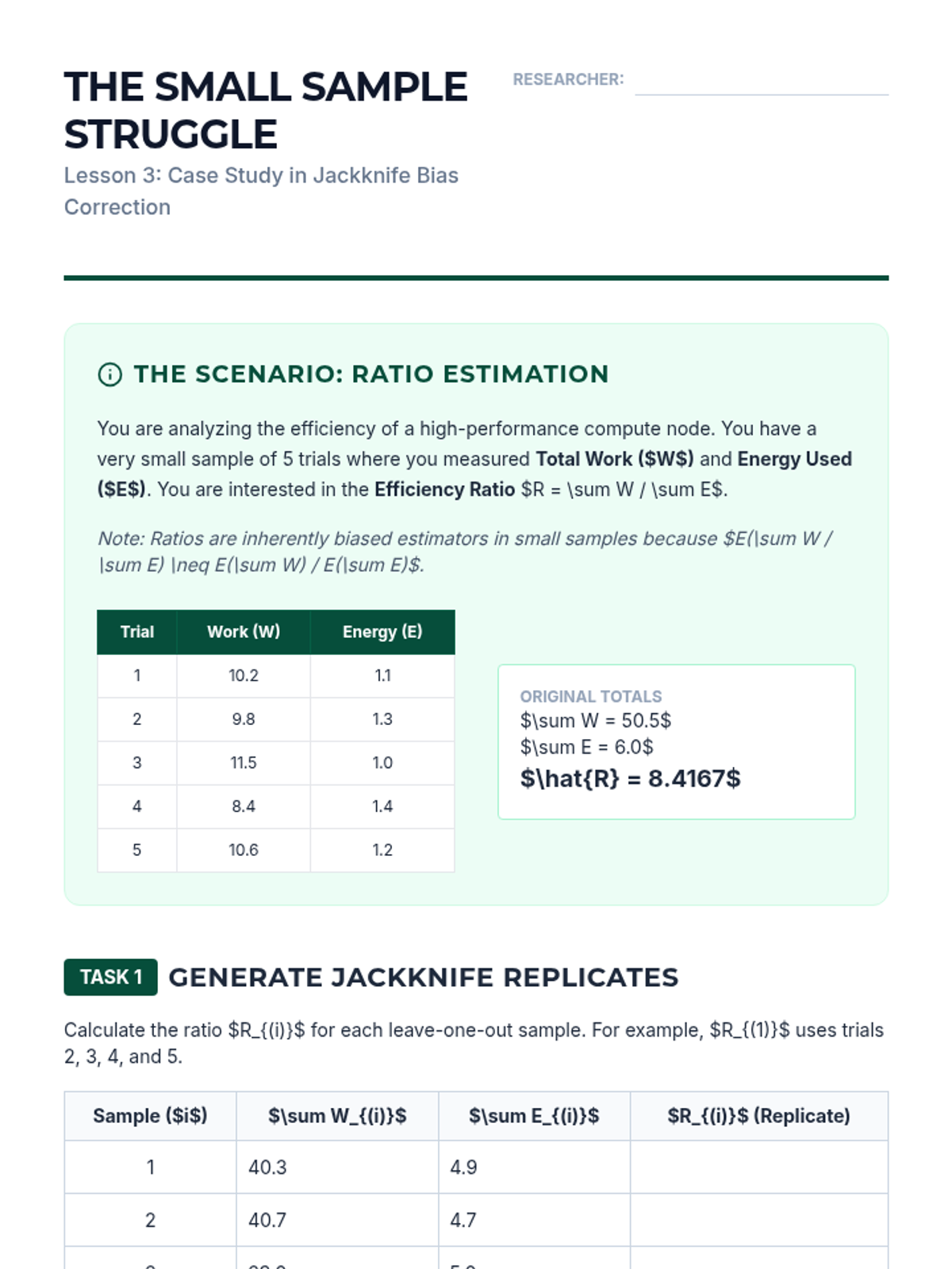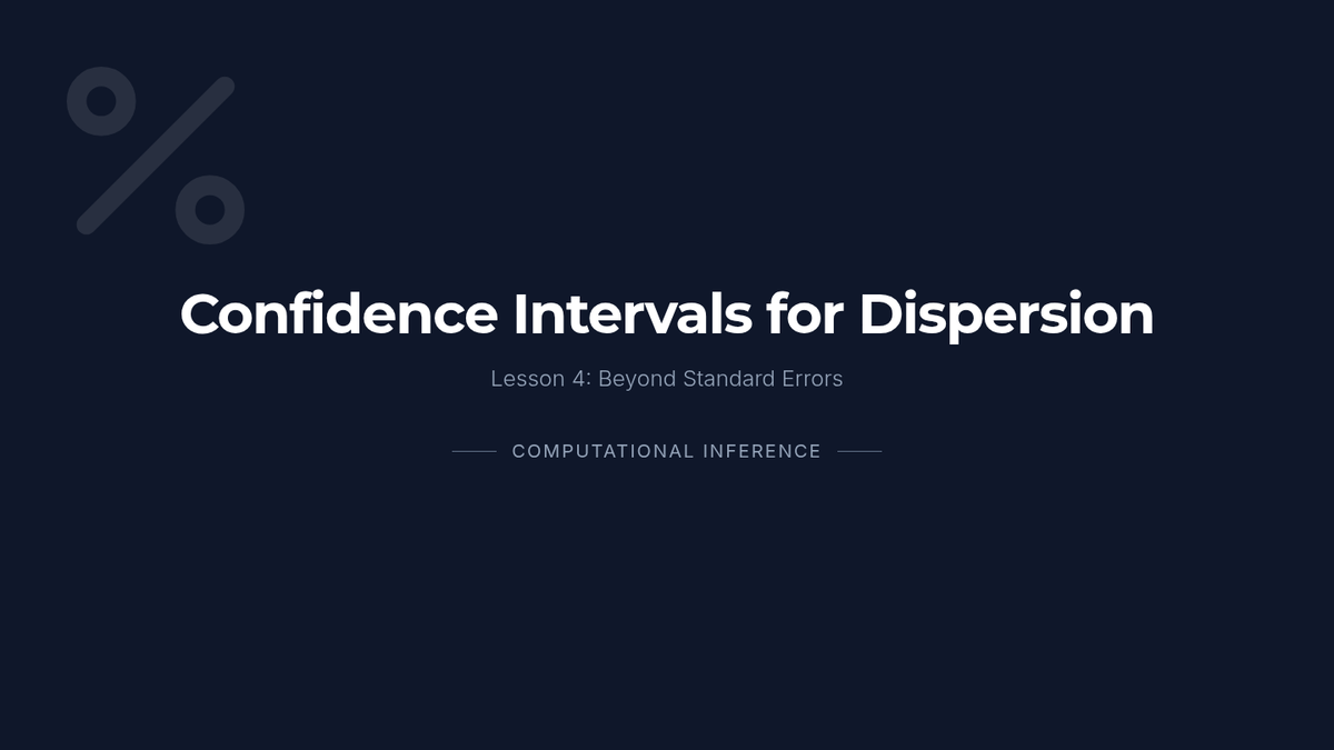 A graduate-level sequence exploring computational resampling methods (Bootstrap, Jackknife, Permutation) to estimate the variability and uncertainty of dispersion statistics when parametric assumptions fail.