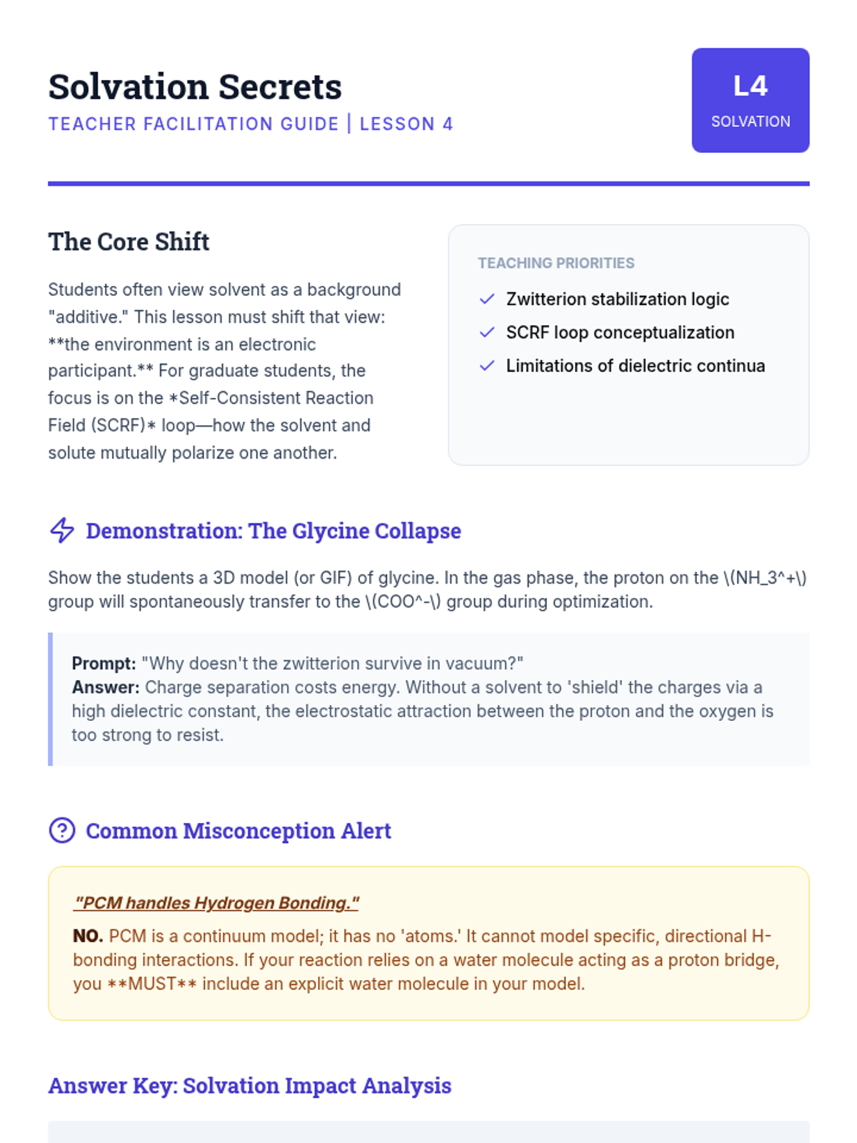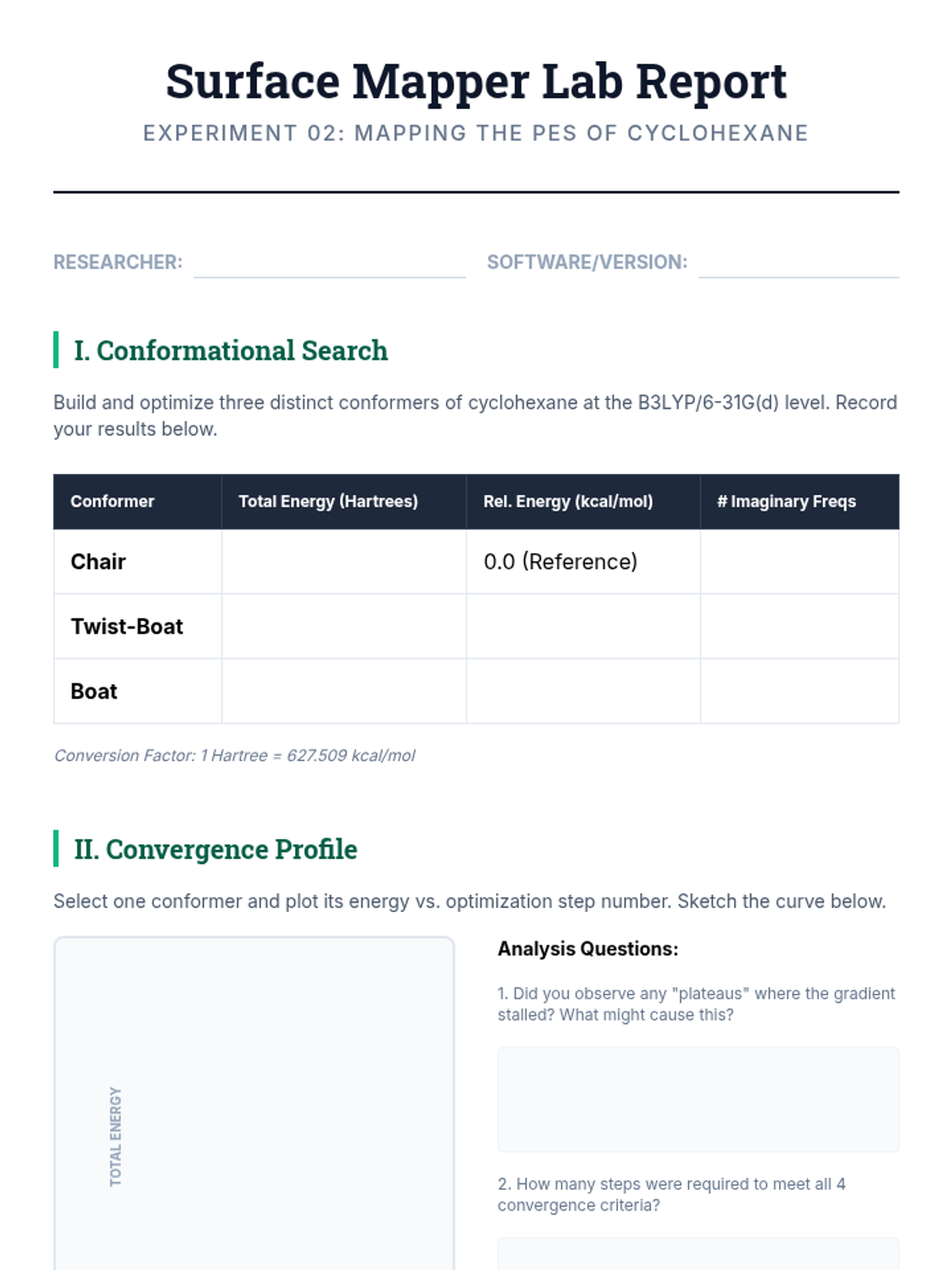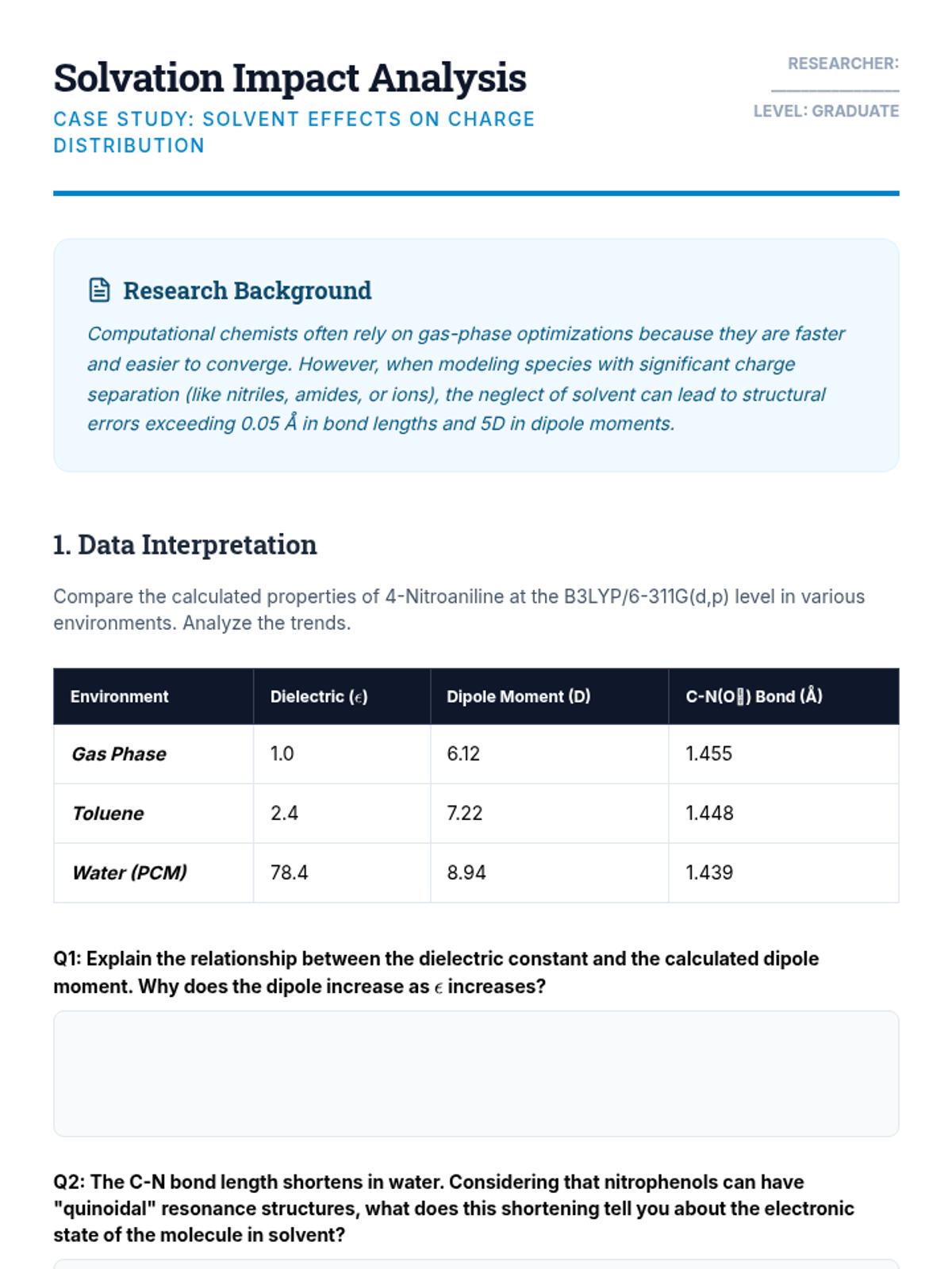 A graduate-level sequence focused on the practical application of quantum mechanical methods to predict molecular geometry and properties, from basis set selection to benchmarking against experimental data.