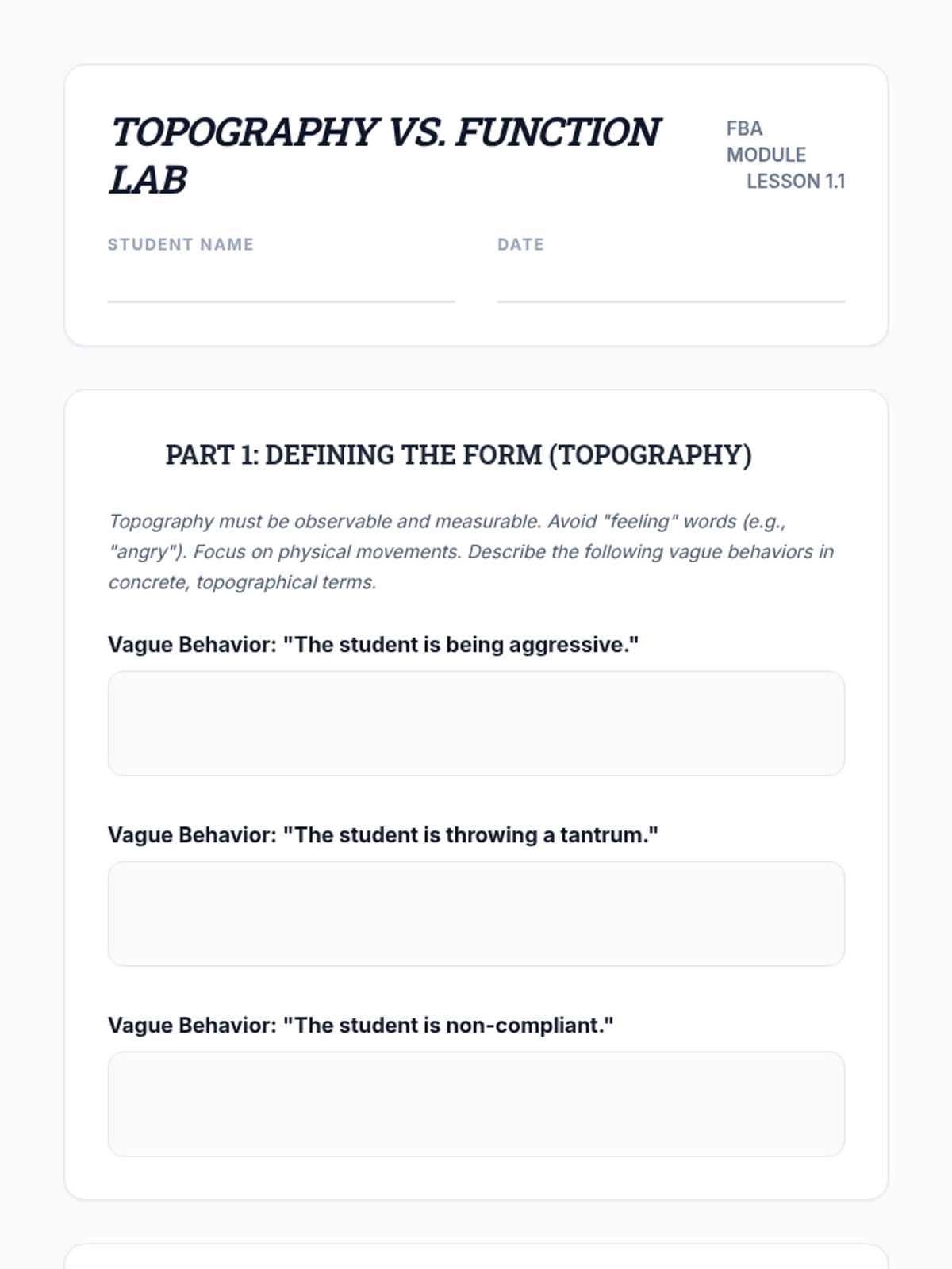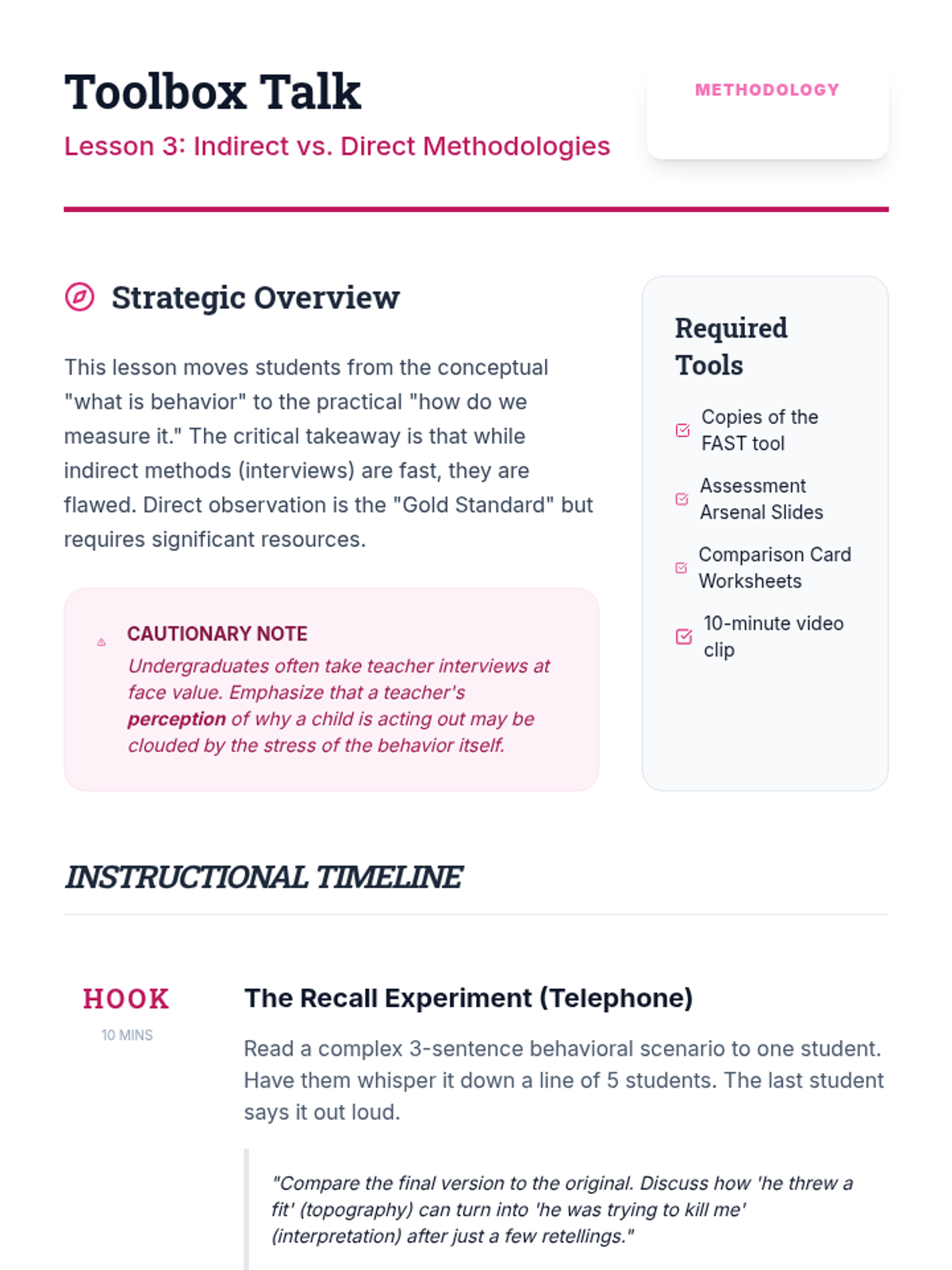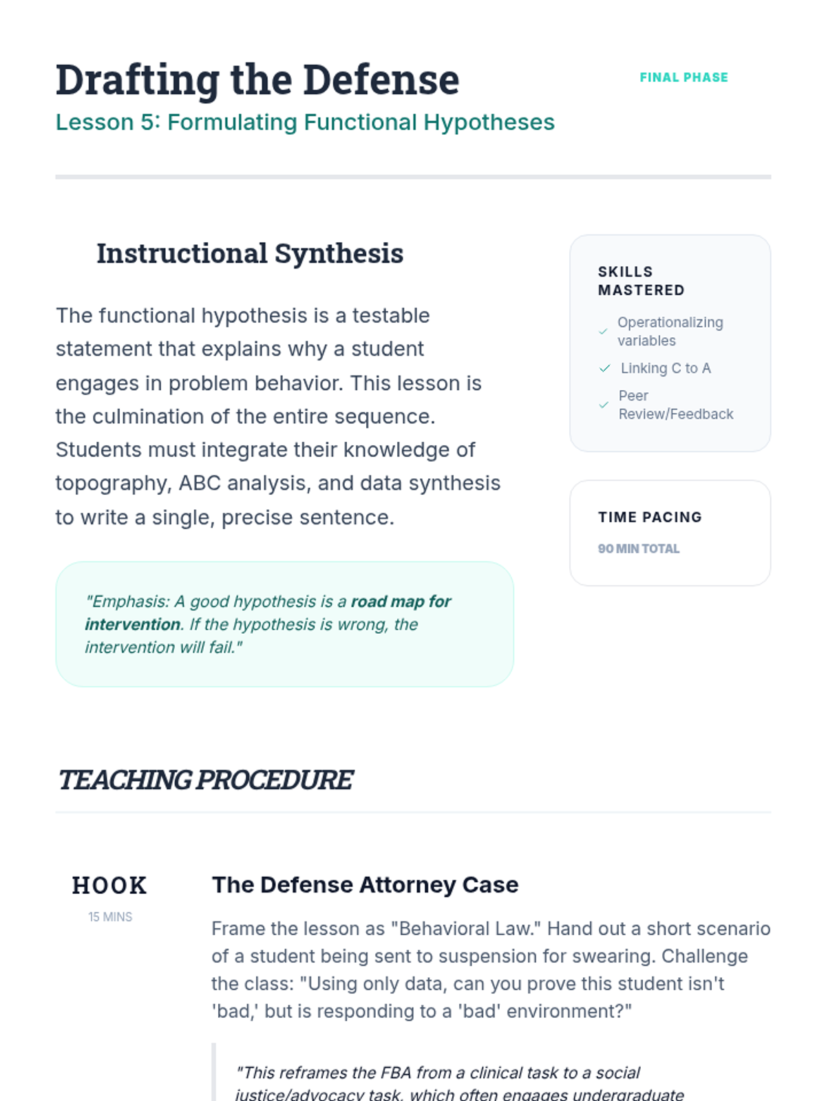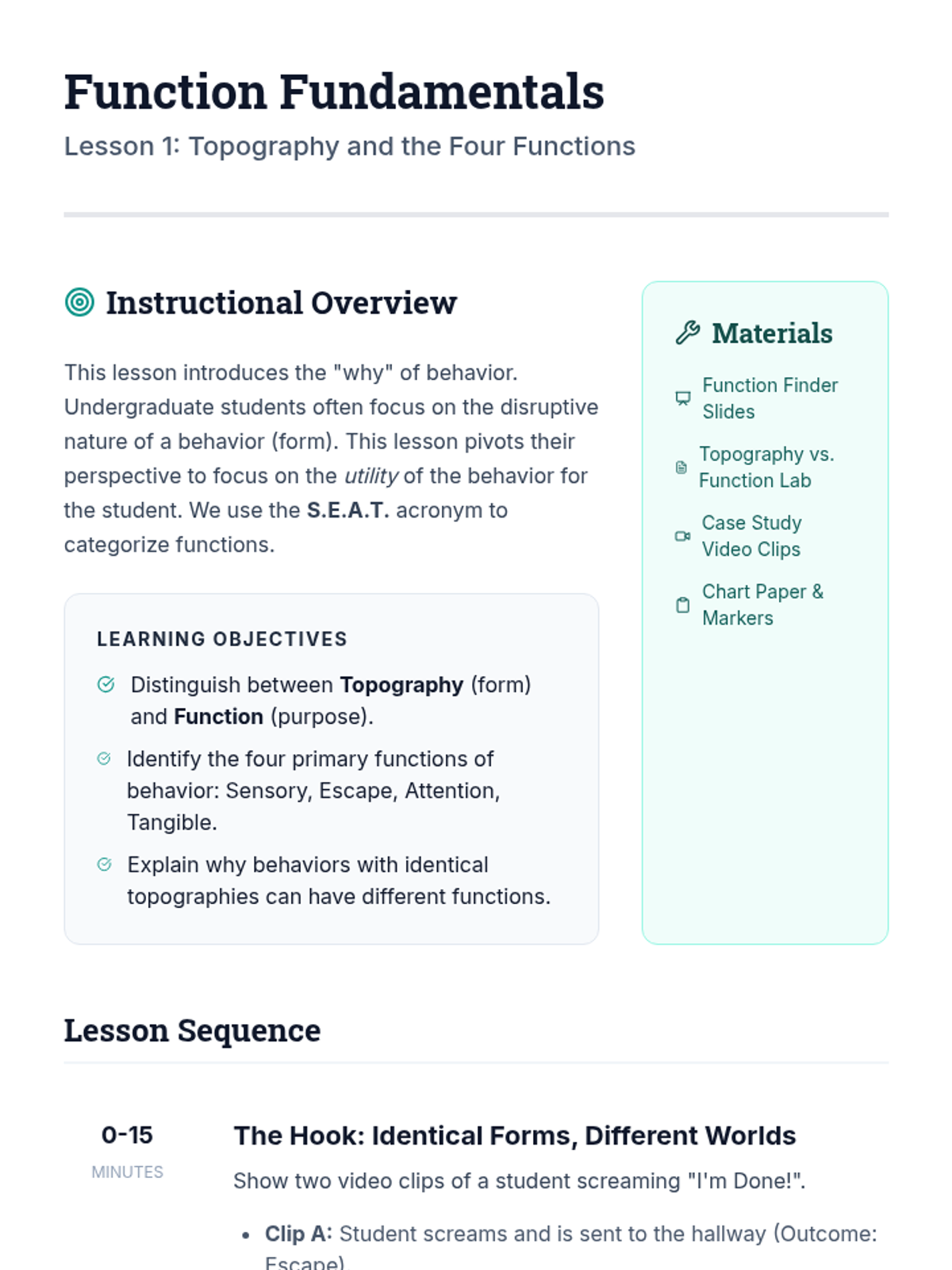 A comprehensive introduction to Functional Behavior Assessment (FBA) for undergraduate students, focusing on identifying behavioral functions, conducting ABC analysis, utilizing assessment tools, and synthesizing data into testable hypotheses.