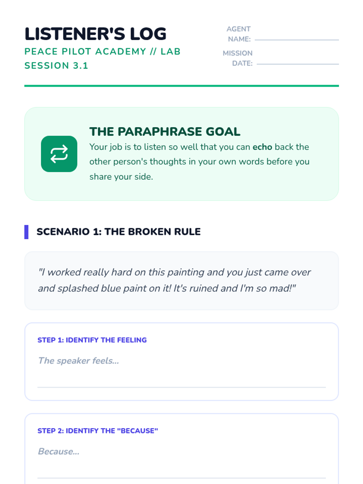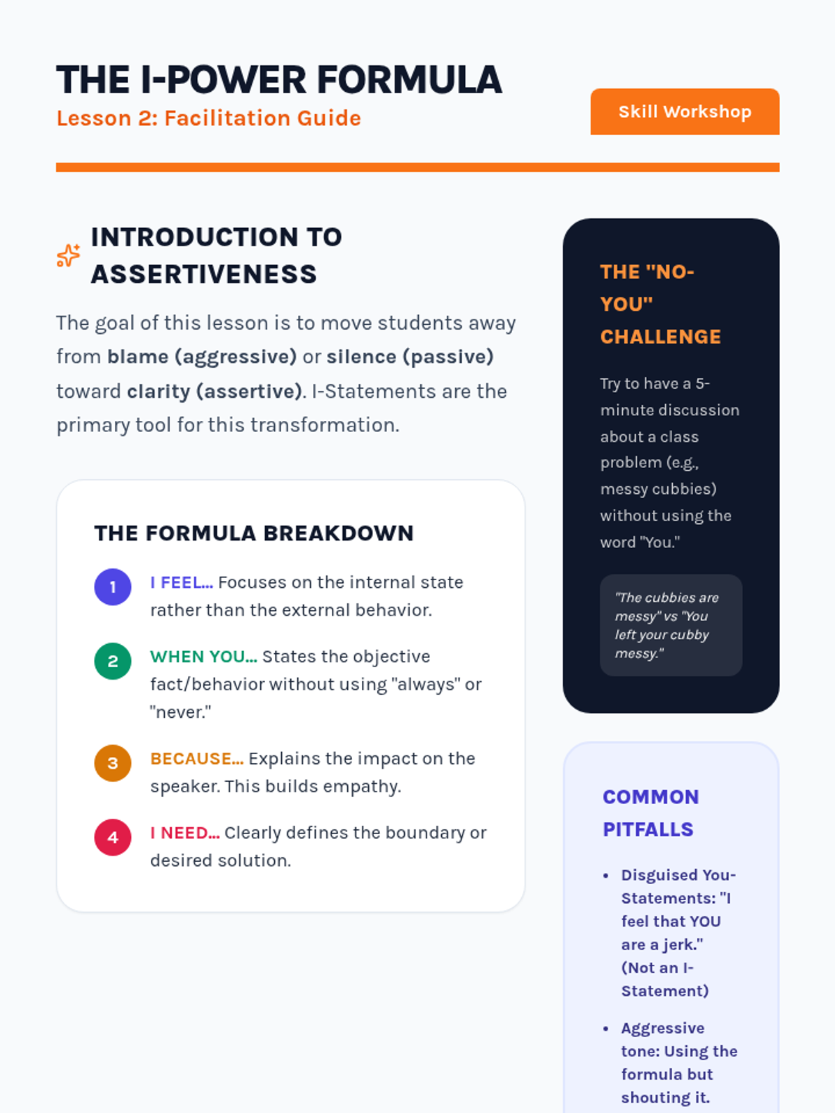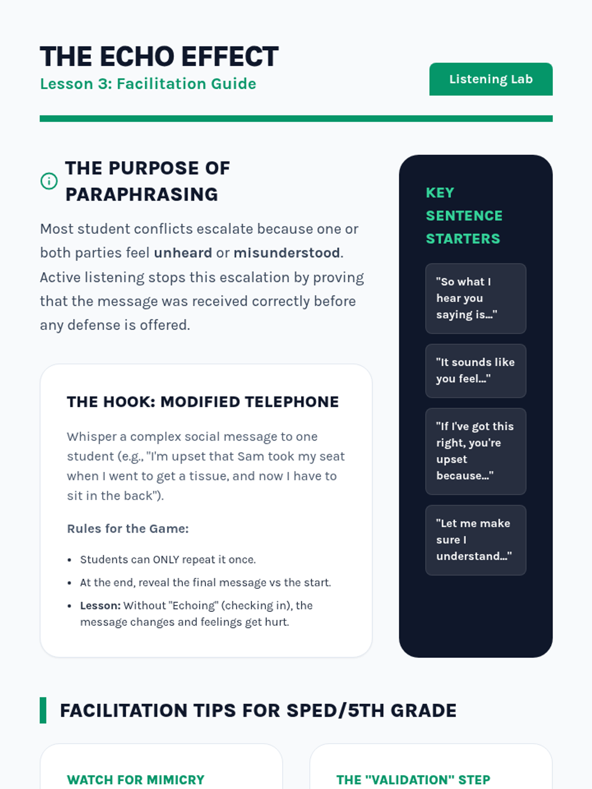 A 5th-grade social-emotional learning sequence that teaches students how to deconstruct conflict, use I-statements, practice active listening, and negotiate compromises through simulations and role-play.