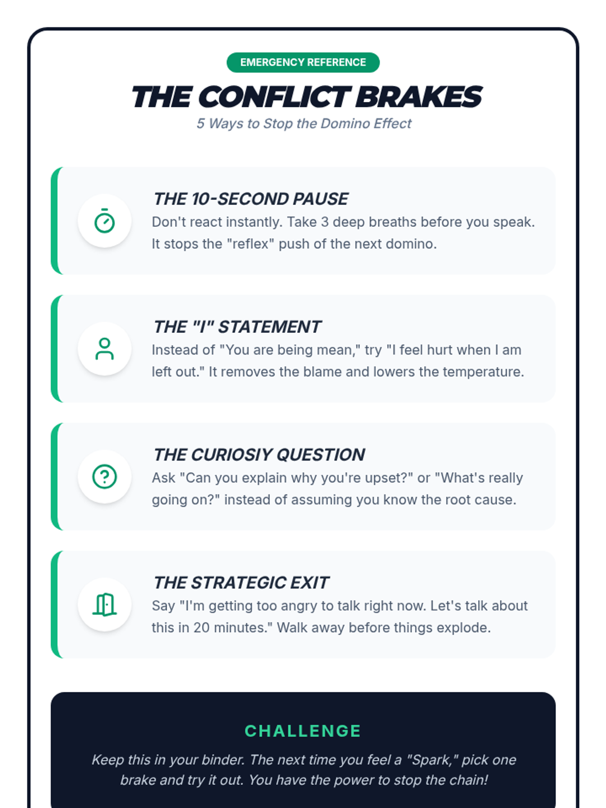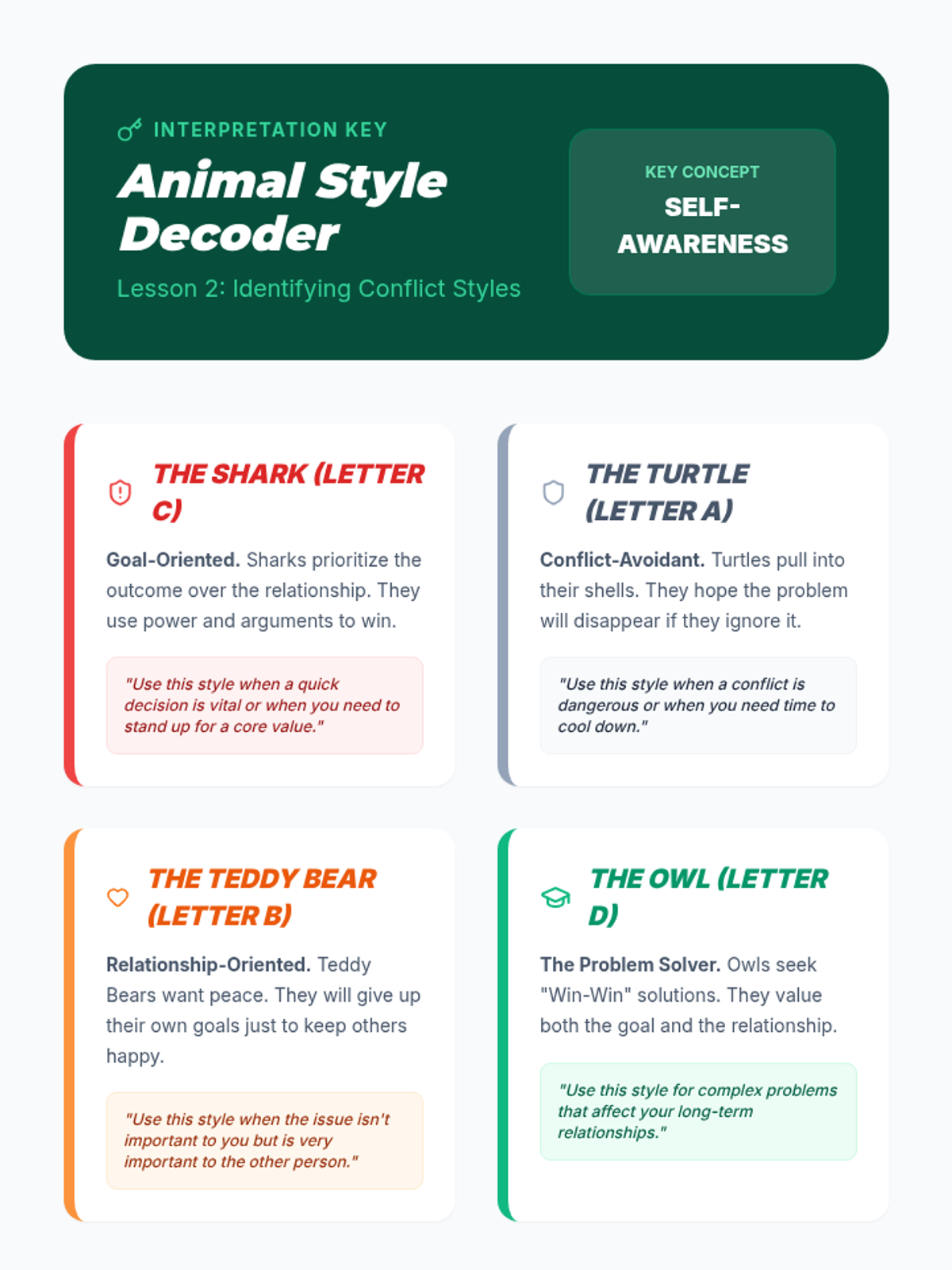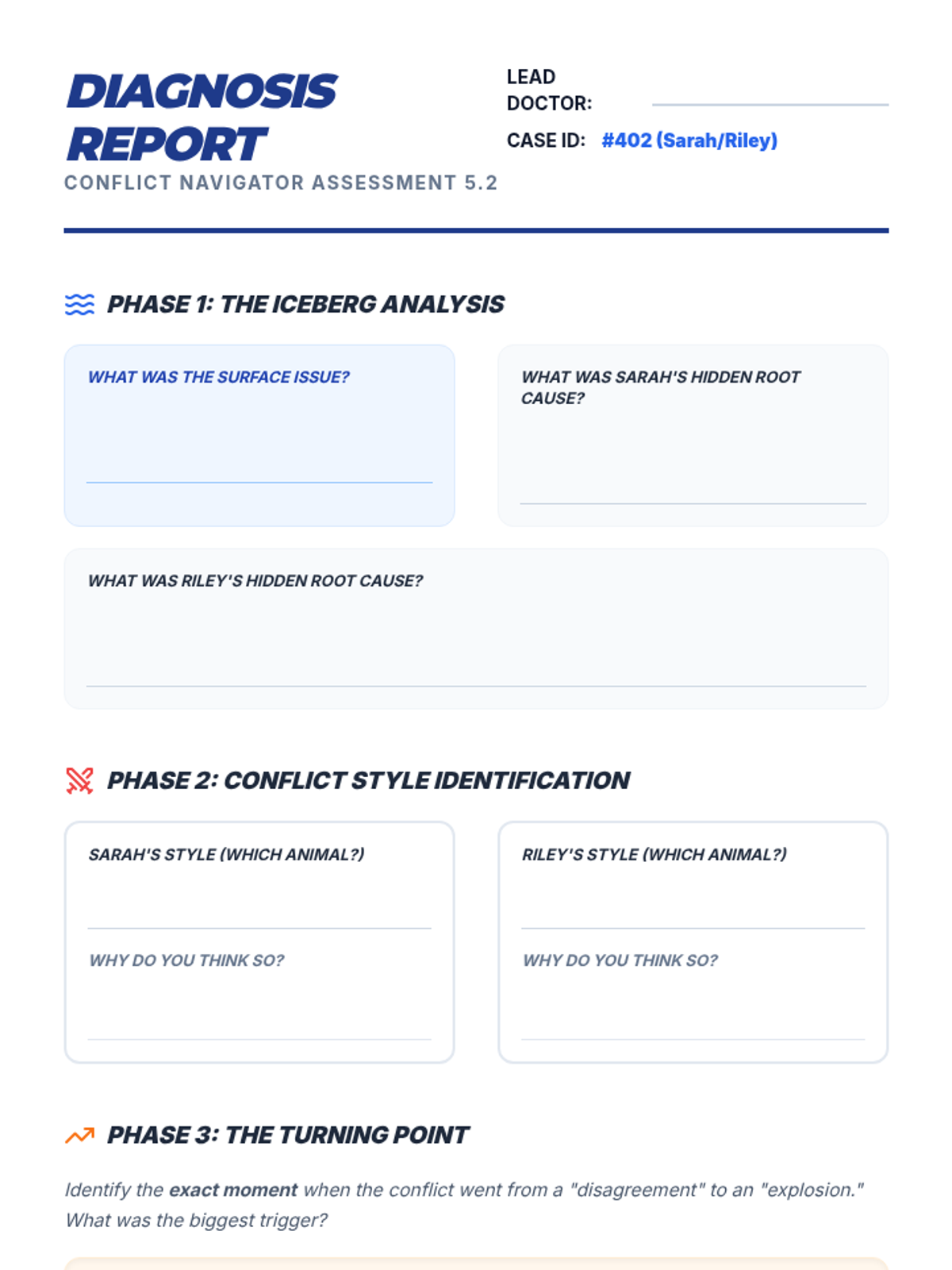 A comprehensive 6th-grade sequence on conflict navigation, teaching students to identify root causes, recognize personal conflict styles, practice perspective-taking, understand escalation, and diagnose complex disputes.