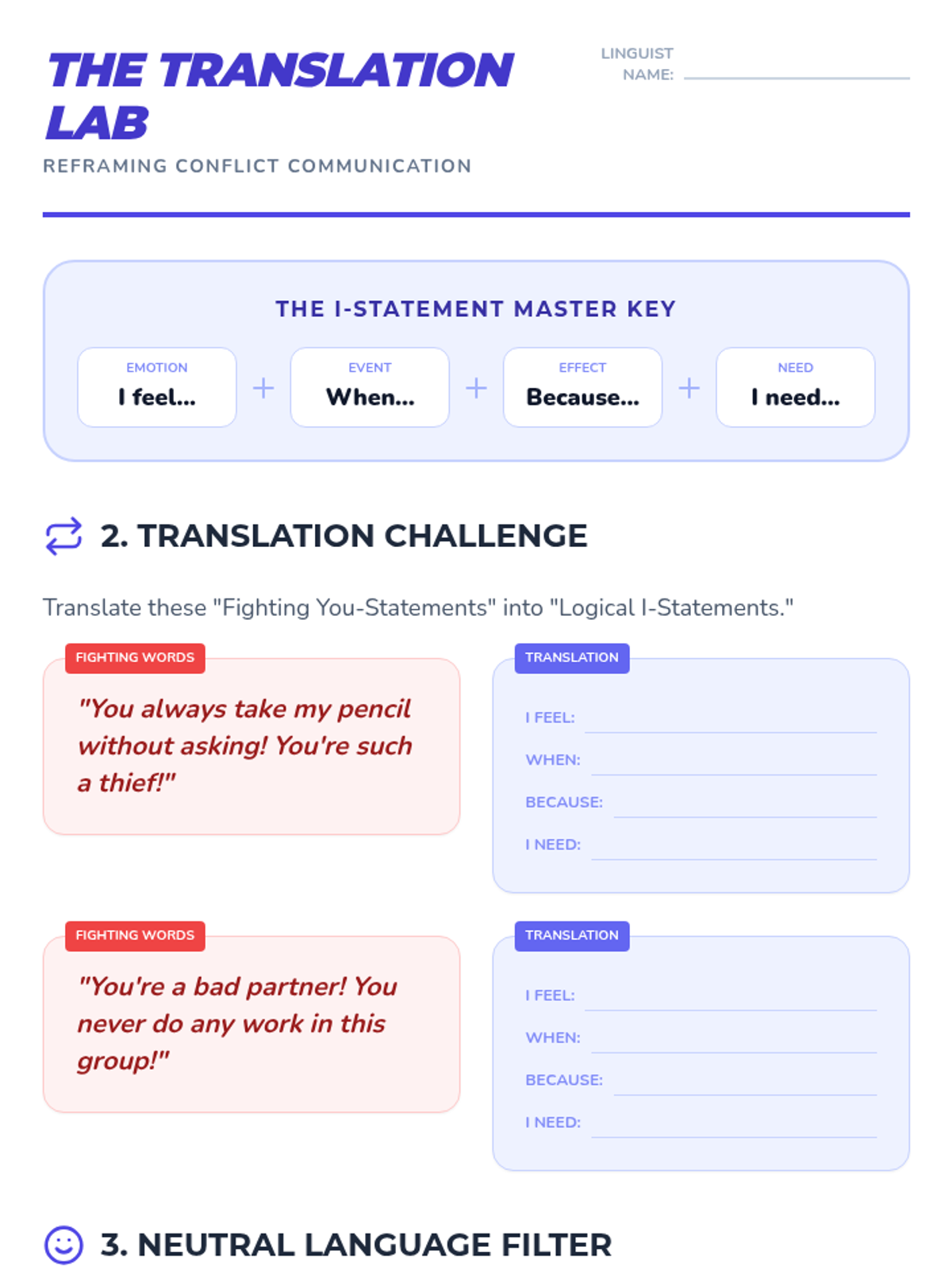 A 5-lesson sequence for 6th graders on emotional regulation and de-escalation during conflict. Students learn the science of the 'amygdala hijack', identify personal triggers, practice calming strategies, and learn to de-escalate peer conflicts.