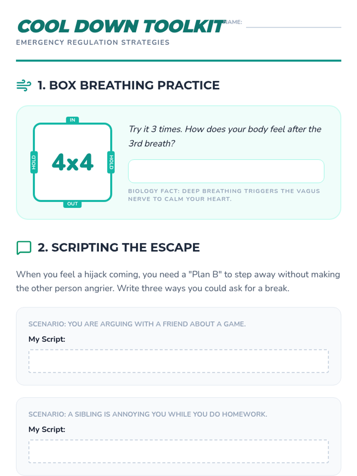 A comprehensive toolkit designed for a 6th-grade student to navigate emotional dysregulation. This sequence focuses on identifying internal triggers, building a personalized strategy toolkit, and establishing a clear safety protocol for crisis moments, providing stability in both school and home environments.
