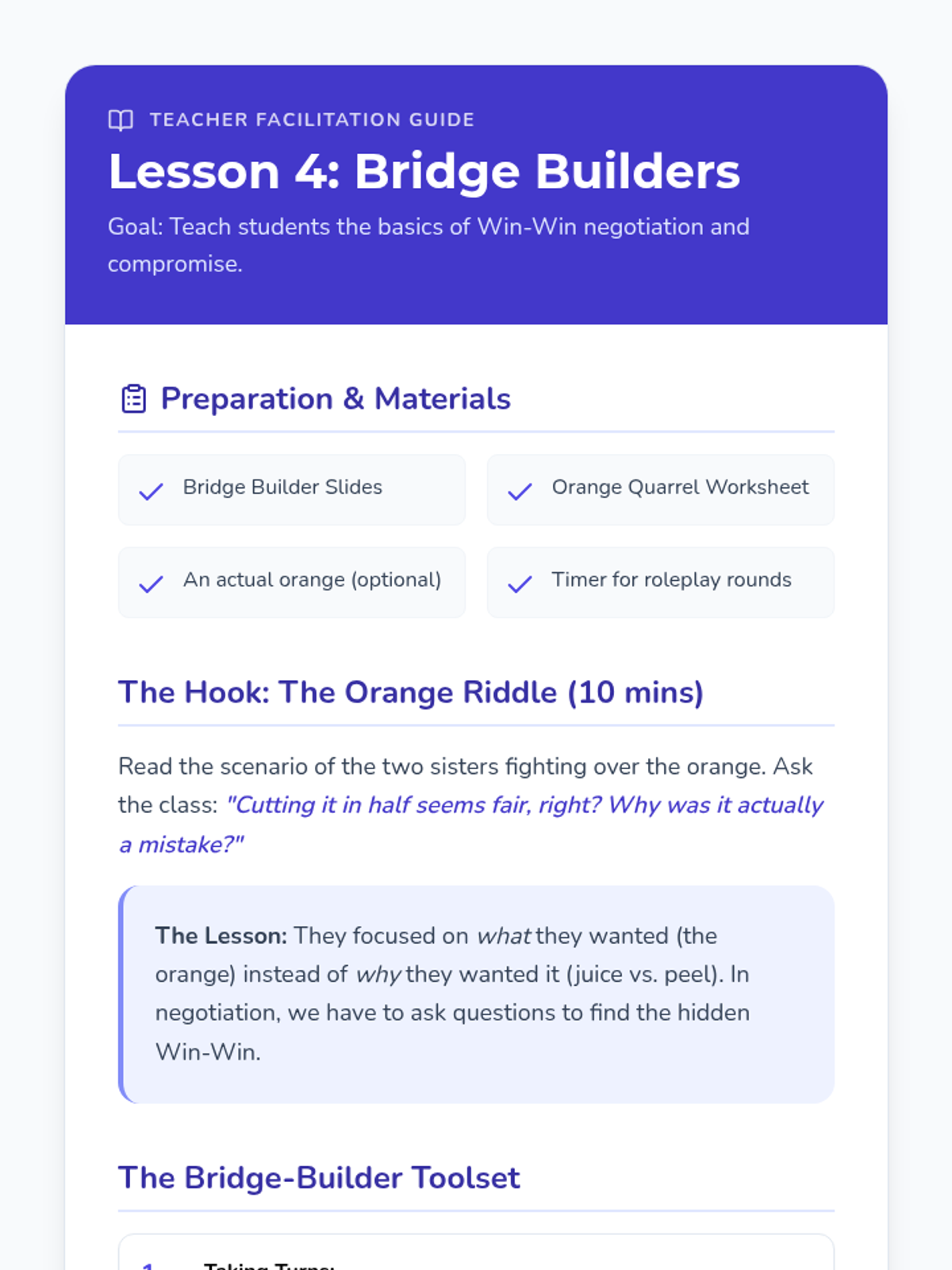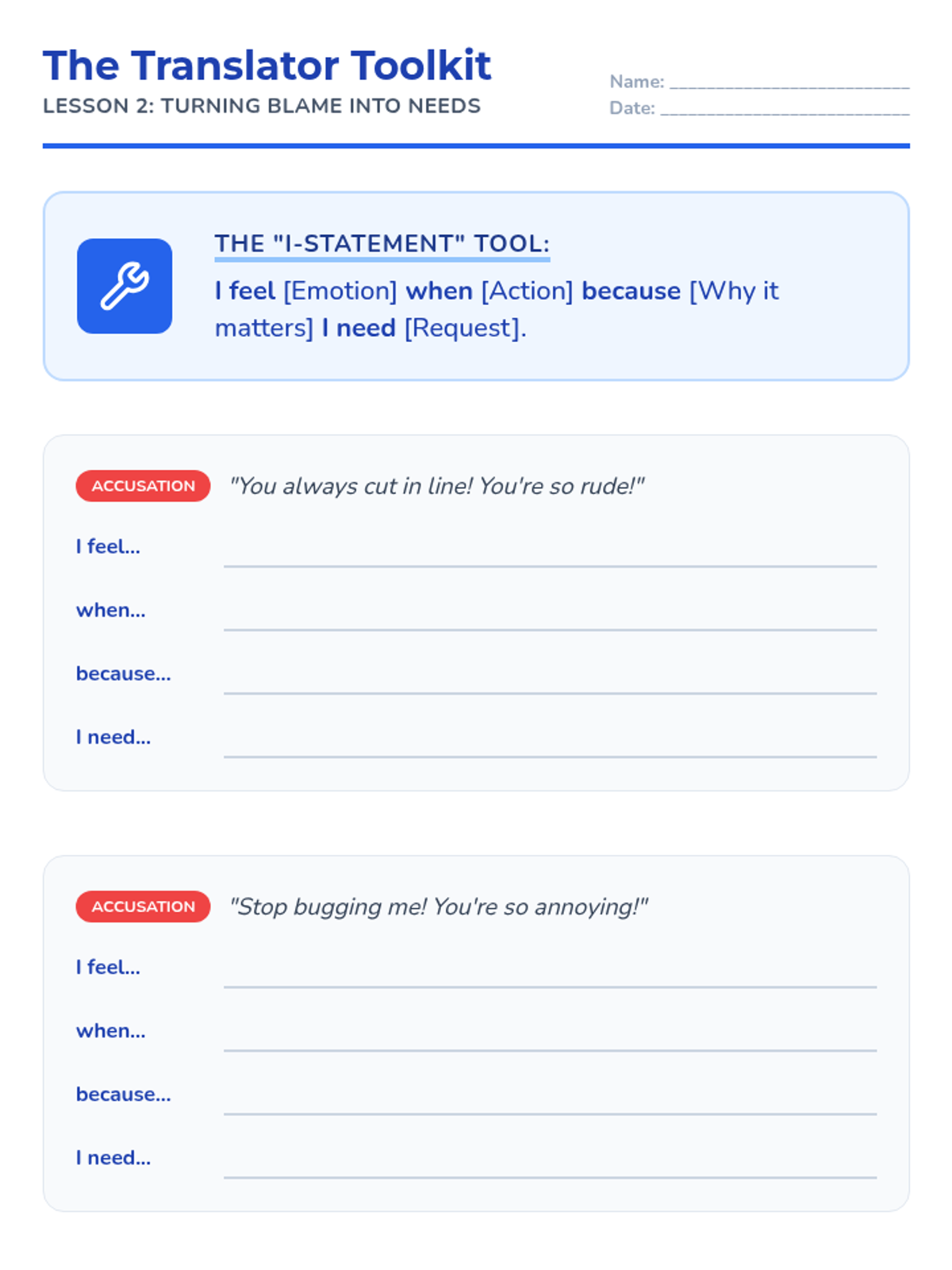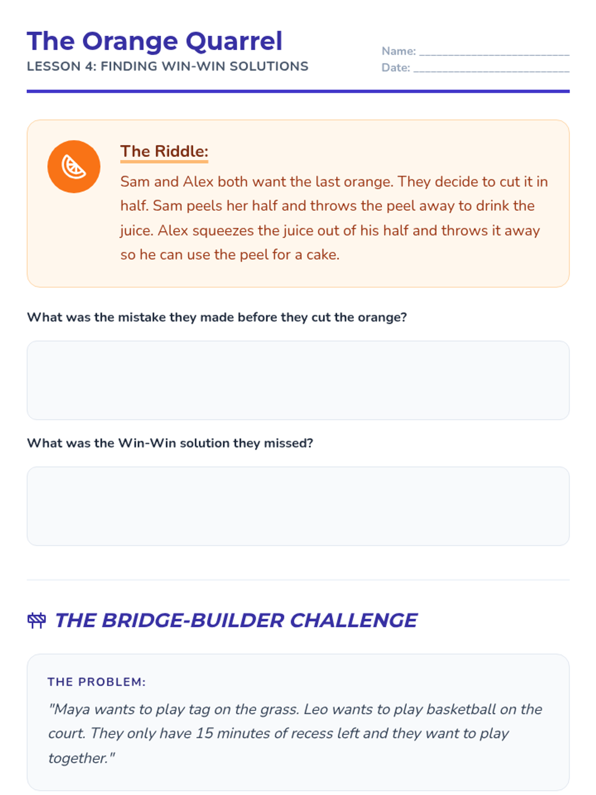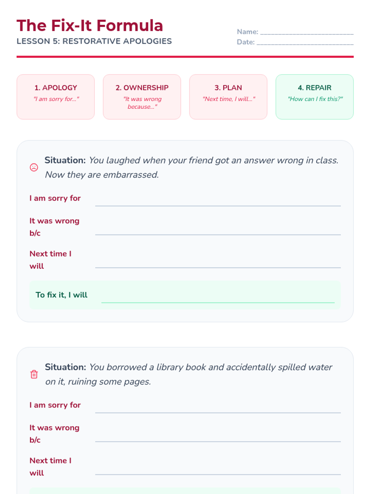 A comprehensive 5-lesson sequence for 4th Grade students focused on developing assertive communication and conflict resolution skills. Students transition from aggressive or passive behaviors to assertive alternatives through interactive games, 'I-statement' practice, and restorative relationship repair.