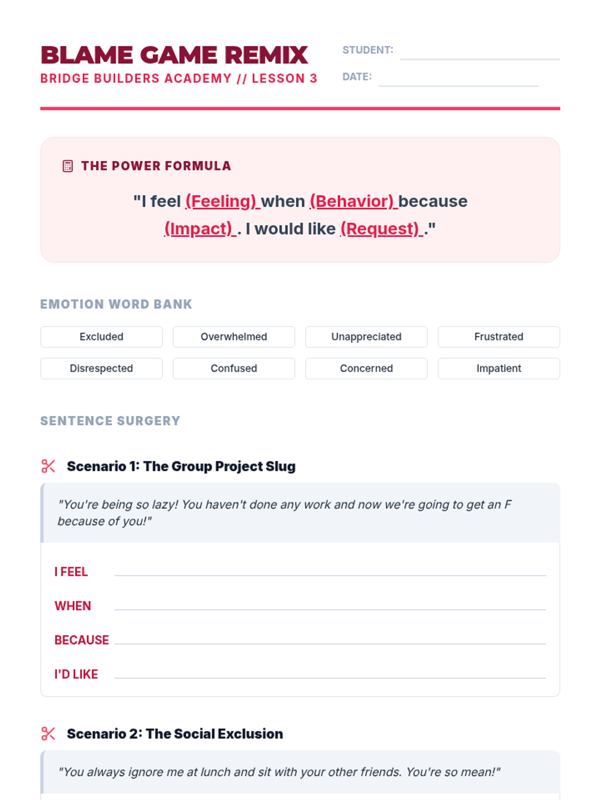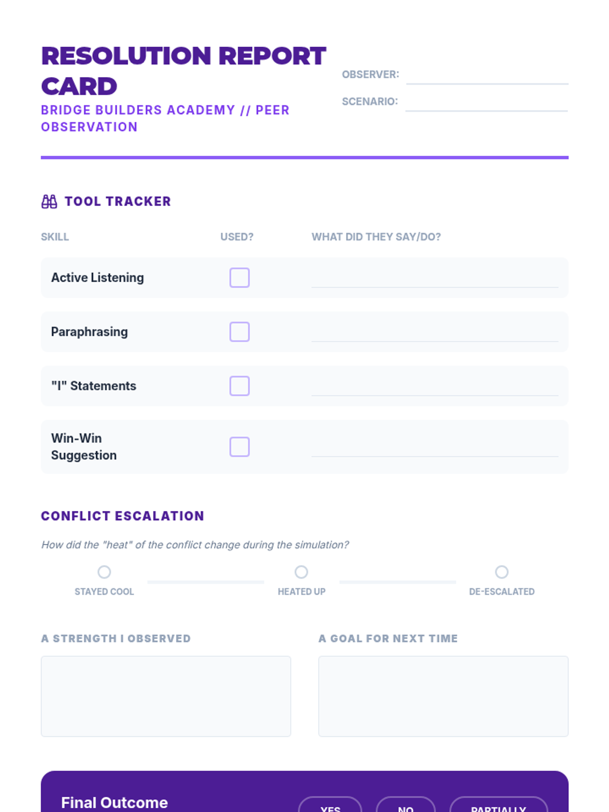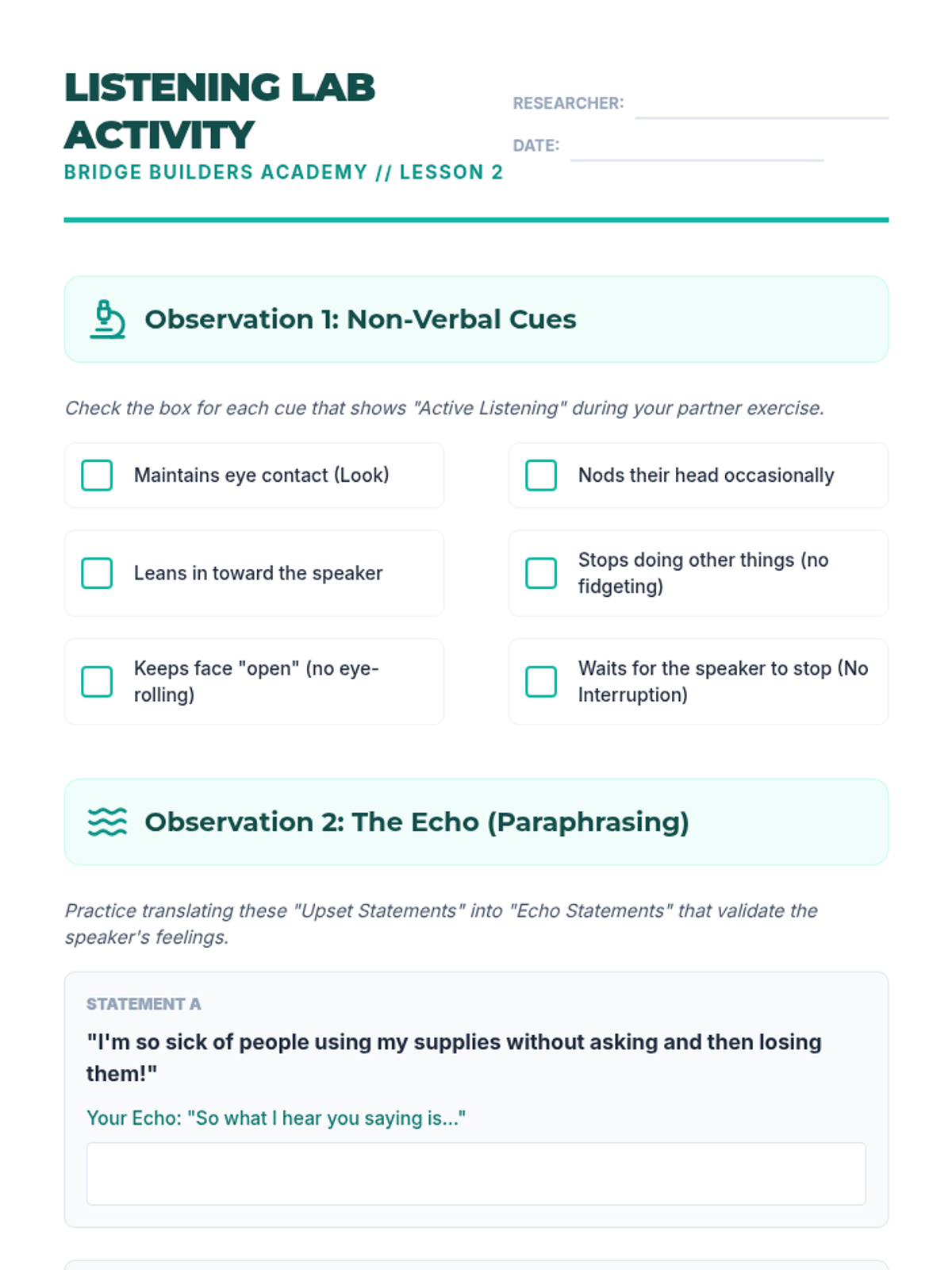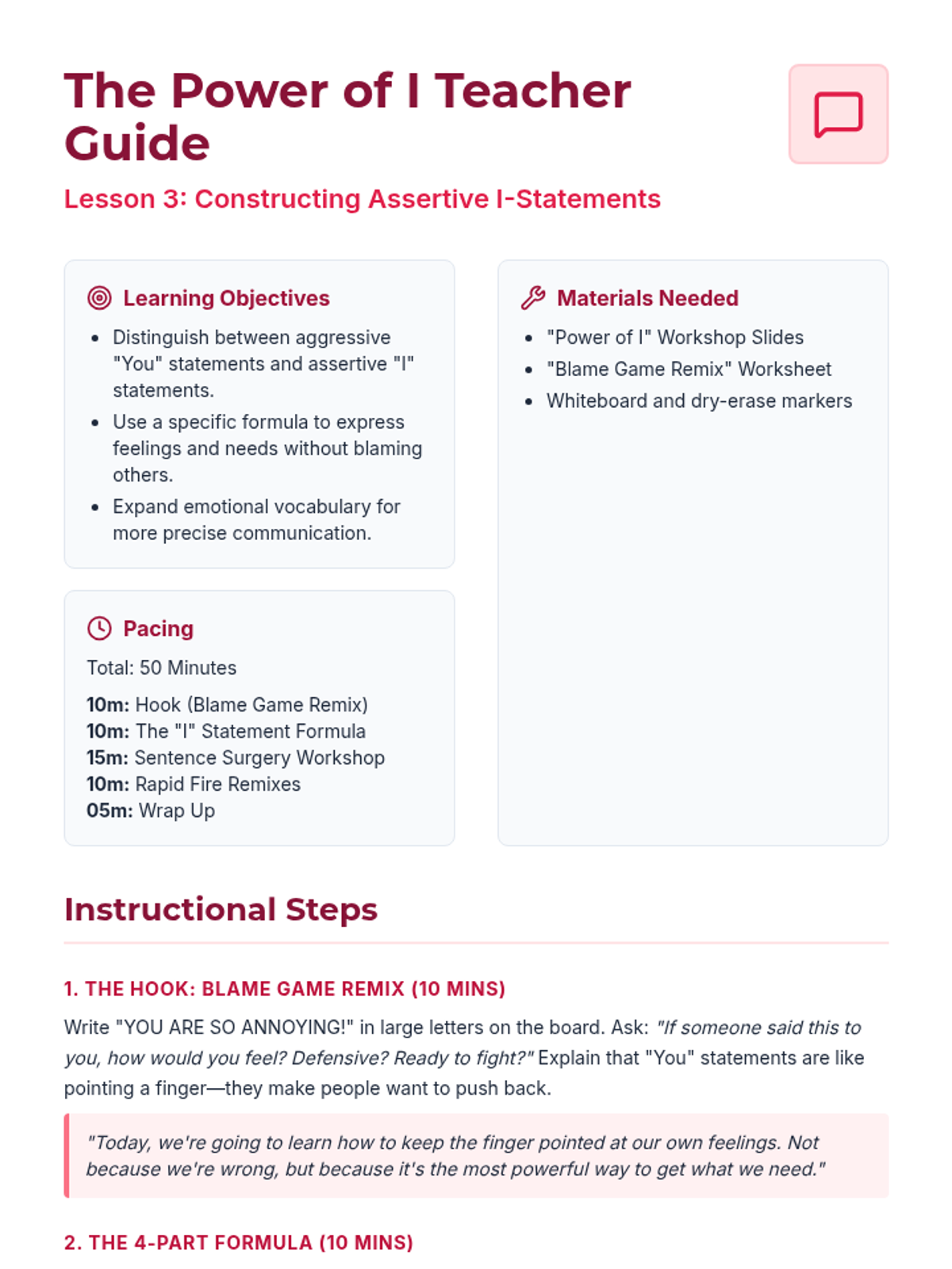 A comprehensive 5-lesson sequence for 6th-grade students on conflict resolution, covering triggers, escalation, active listening, assertive communication, and negotiation. Students will build a practical toolkit for managing interpersonal disputes peacefully and effectively.