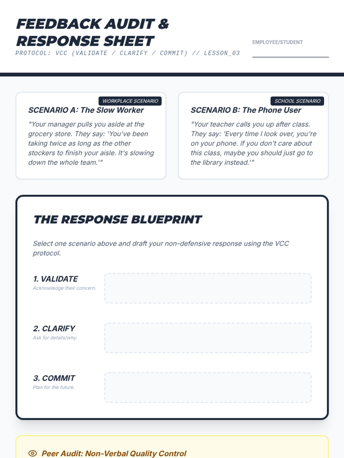 A high-impact 5-lesson sequence designed for credit-deficient high school sophomores to reclaim their academic path. The curriculum reframes impulse control as a strategic 'power move' for achieving independence, career success, and graduation through cognitive discipline and environmental awareness.