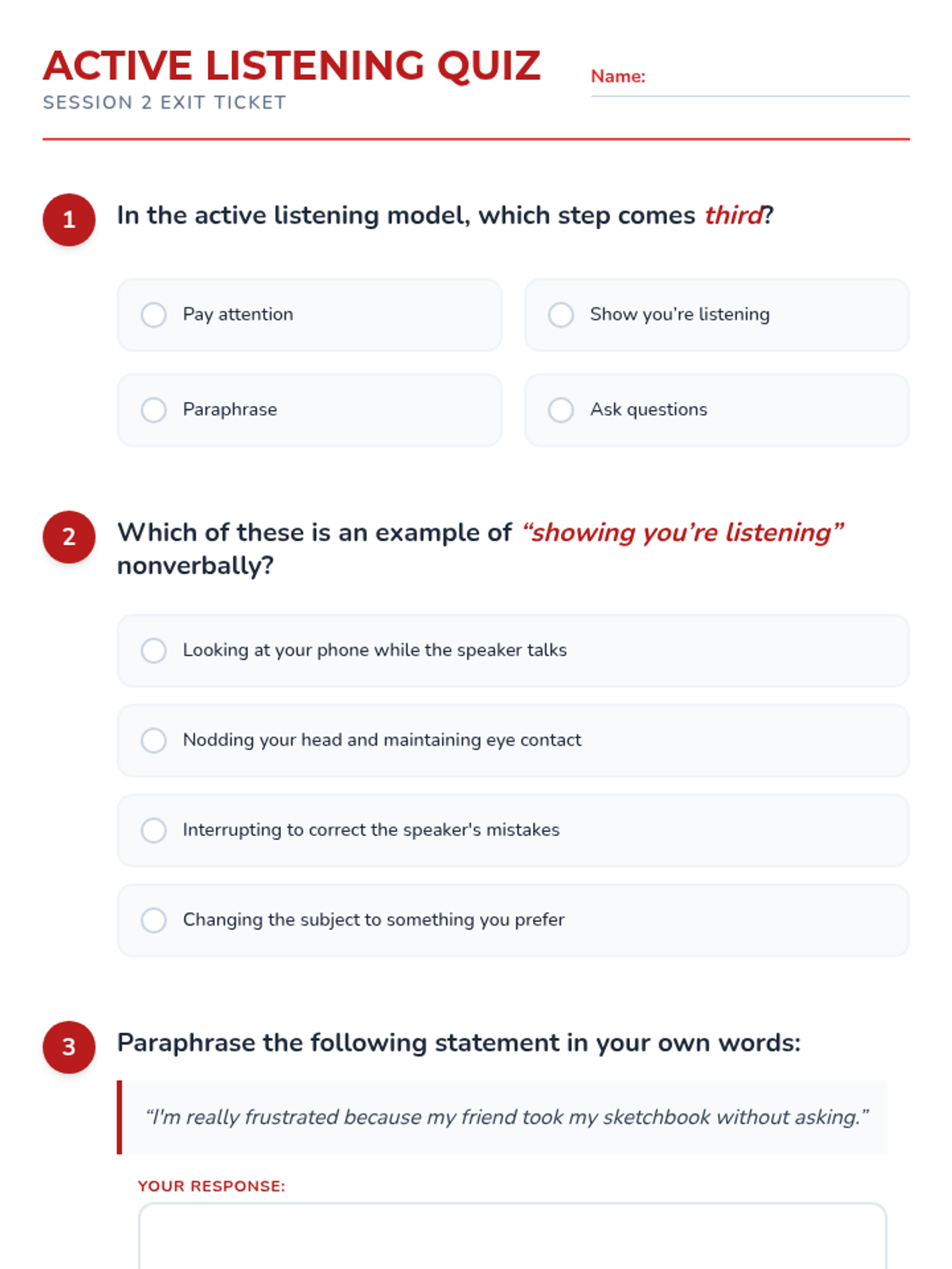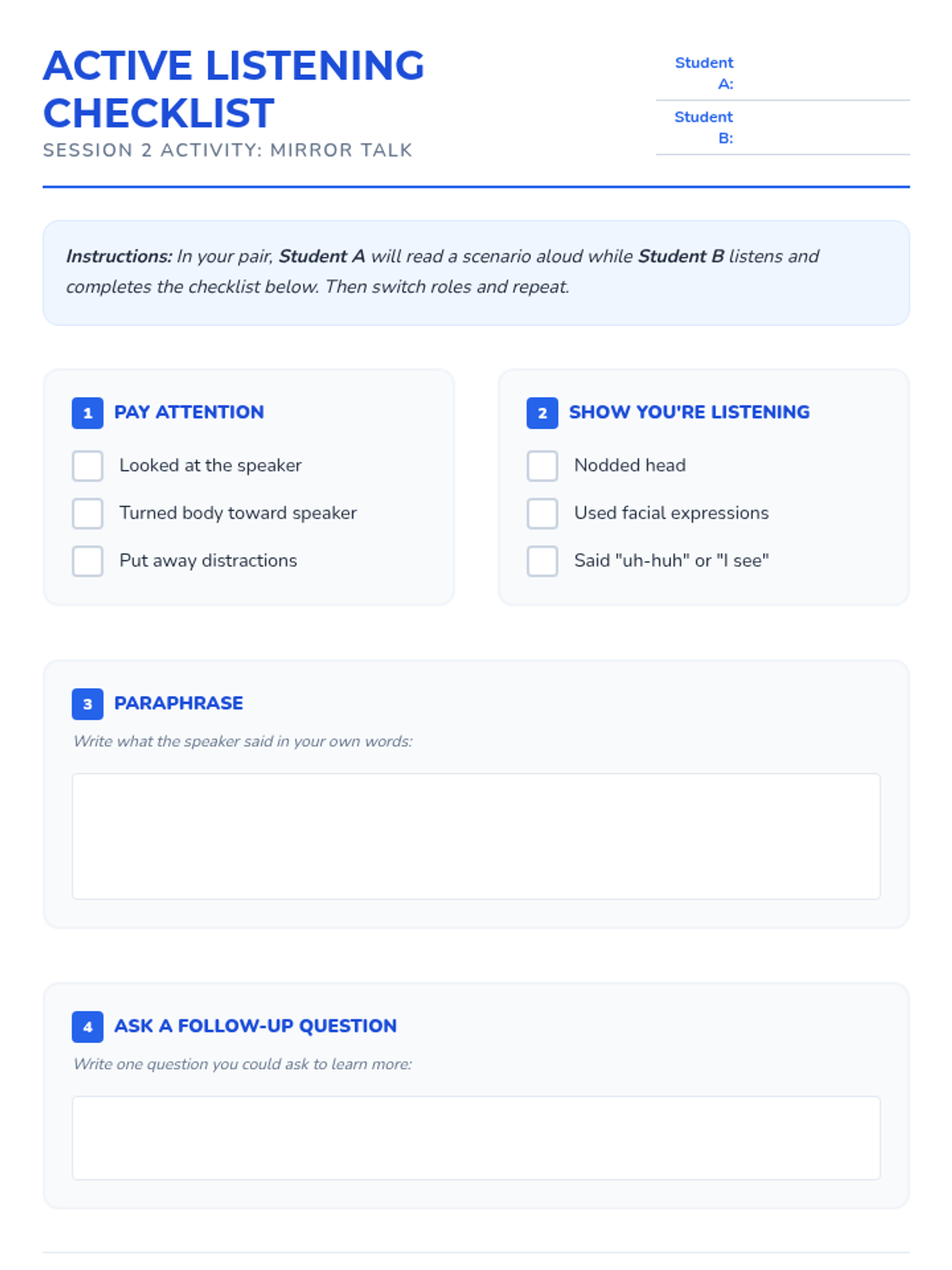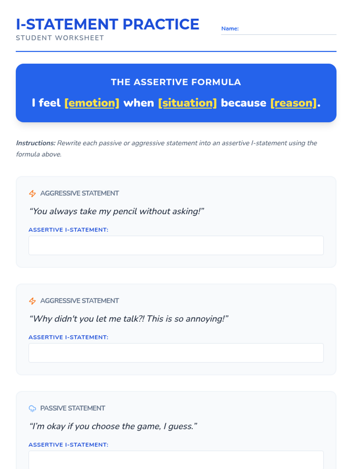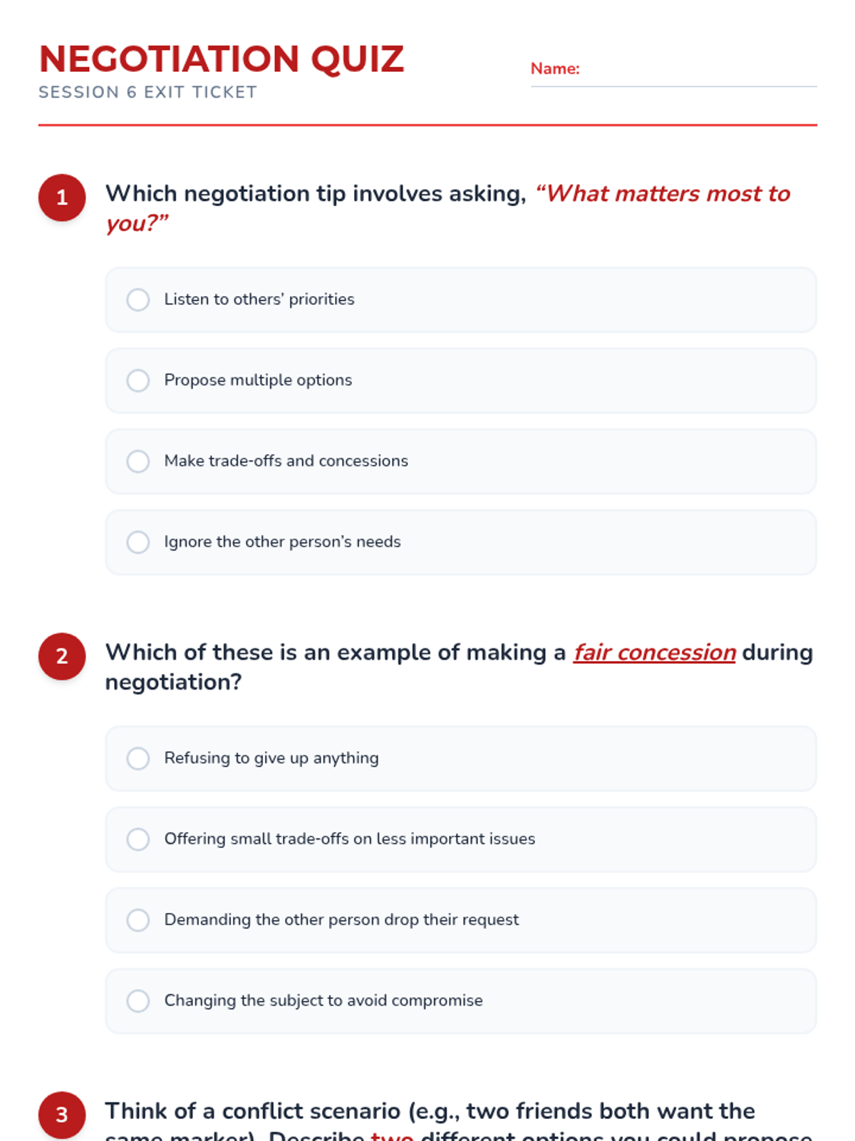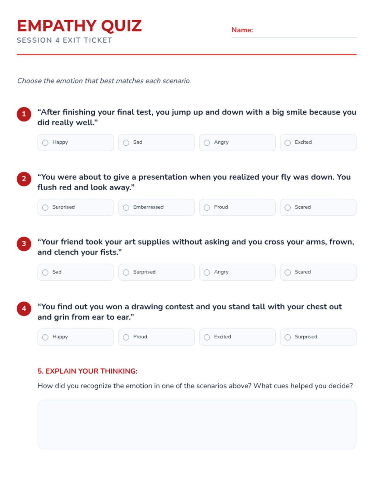 An 8-session conflict resolution series designed for 4th–6th graders to develop essential social skills in small-group settings. This sequence empowers students to navigate disagreements positively through interactive activities, games, and structured problem-solving.