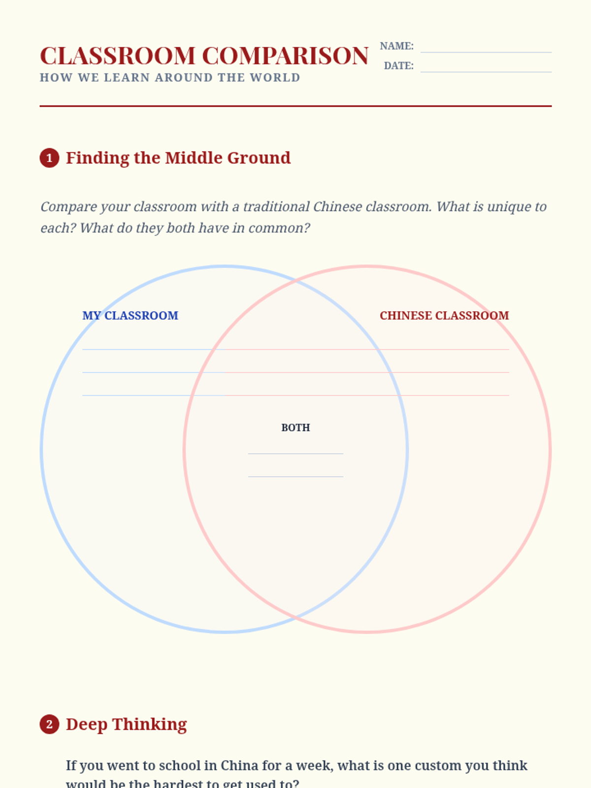 This project-based sequence explores how social groups and communities influence individual identity. Students investigate the various 'circles' they belong to—family, school, clubs, and cultural groups—and analyze how these memberships shape their values and behaviors. The learning journey culminates in the creation of a 'Social Identity Map' that visualizes their connections.