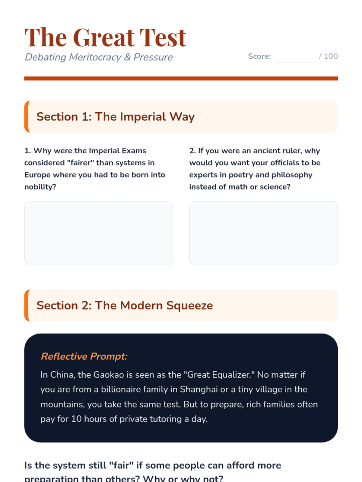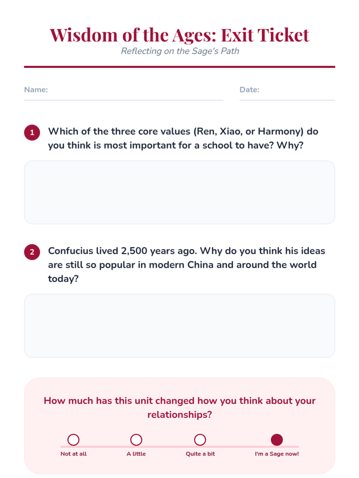 This 5-lesson sequence for 5th graders explores the impact of Confucianism on modern Chinese culture. Students bridge ancient philosophy with modern daily life by examining core values like filial piety, social harmony, and the importance of education through discussions, case studies, and modern application.