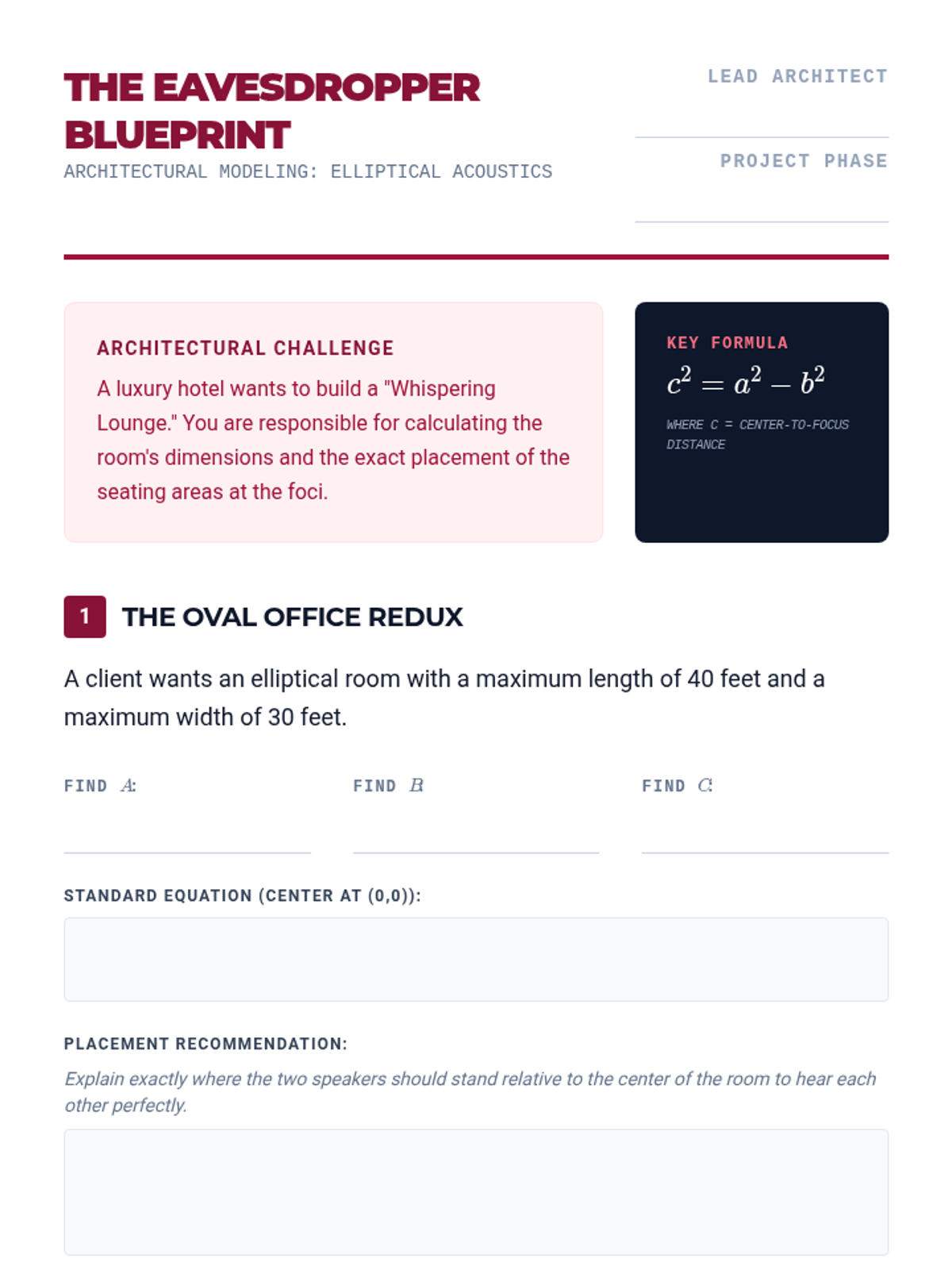 A project-based sequence for 12th-grade students exploring the real-world applications of conic sections in engineering, physics, and medicine. Students transition from geometric definitions to algebraic equations while solving practical problems involving satellite dishes, whispering galleries, and navigation systems.