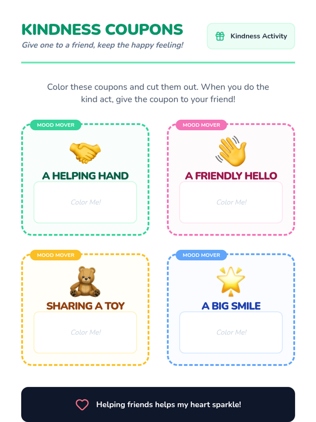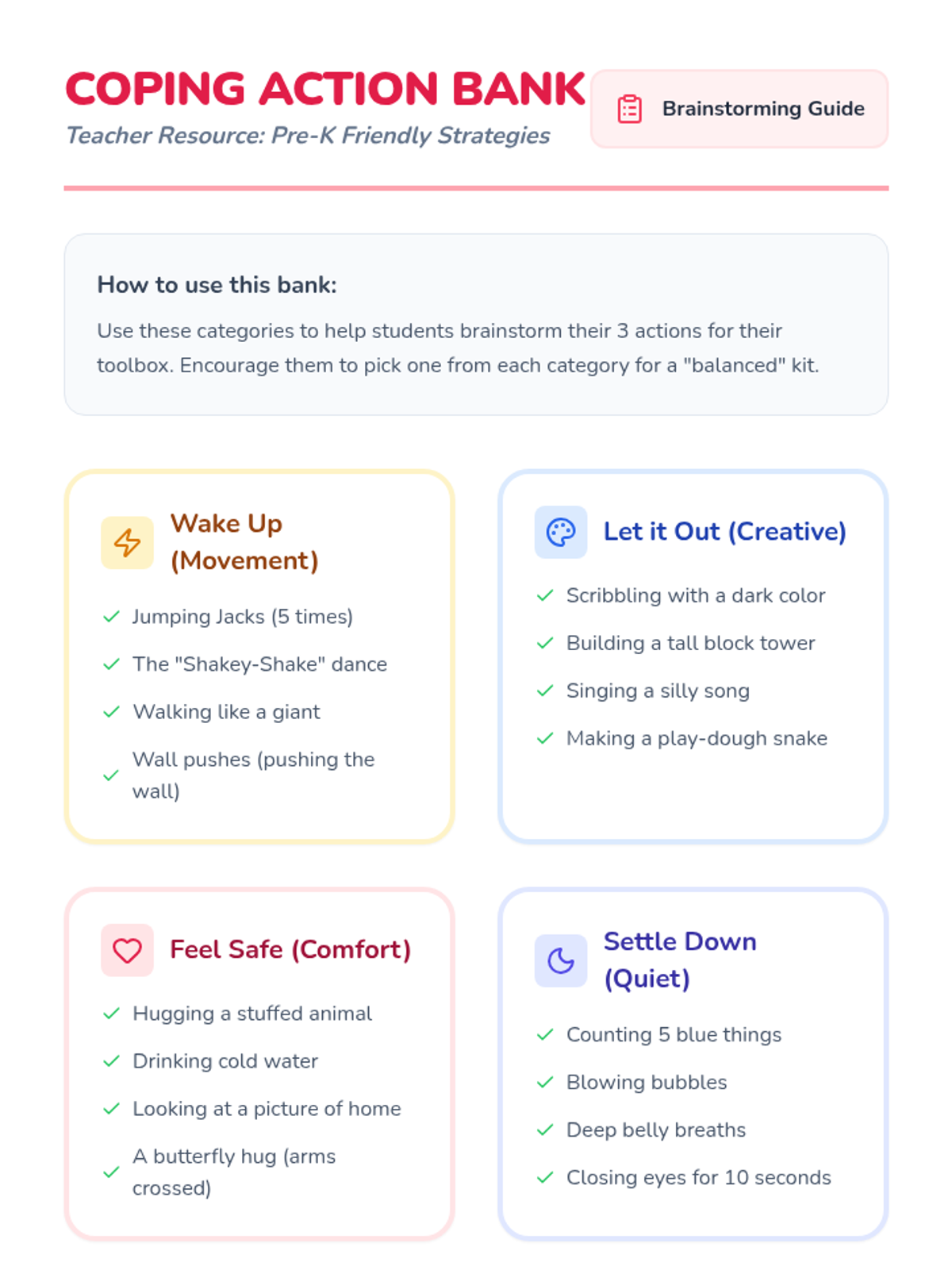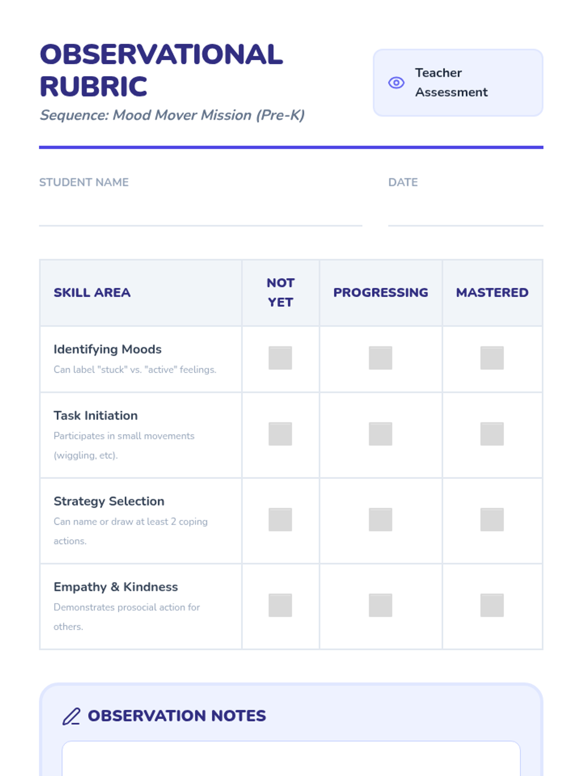 A Pre-K sequence introducing behavioral activation concepts by helping a puppet character navigate low moods through small, physical actions and kindness. Students learn that 'doing' can change 'feeling' in a developmentally appropriate, narrative-driven way.