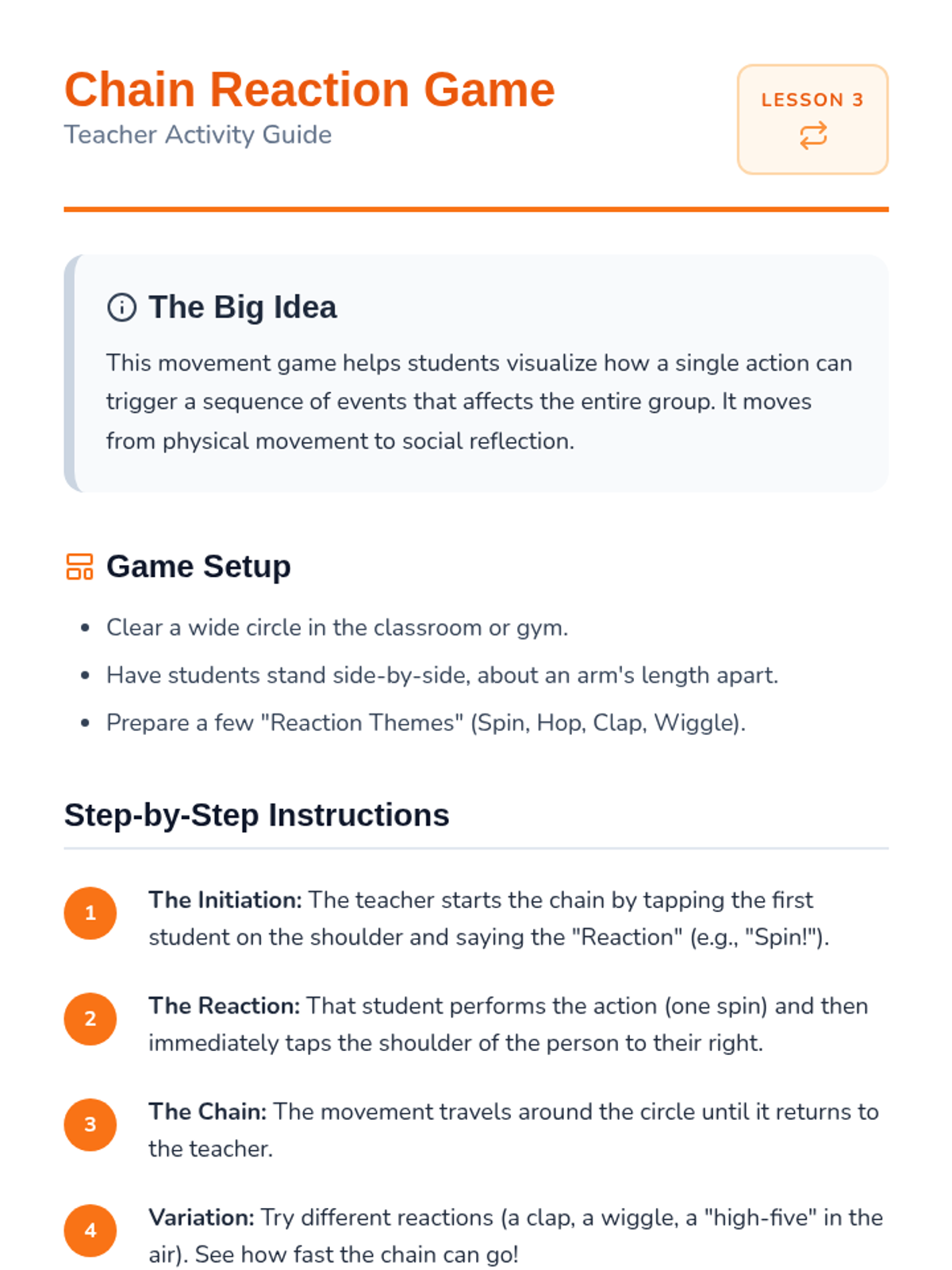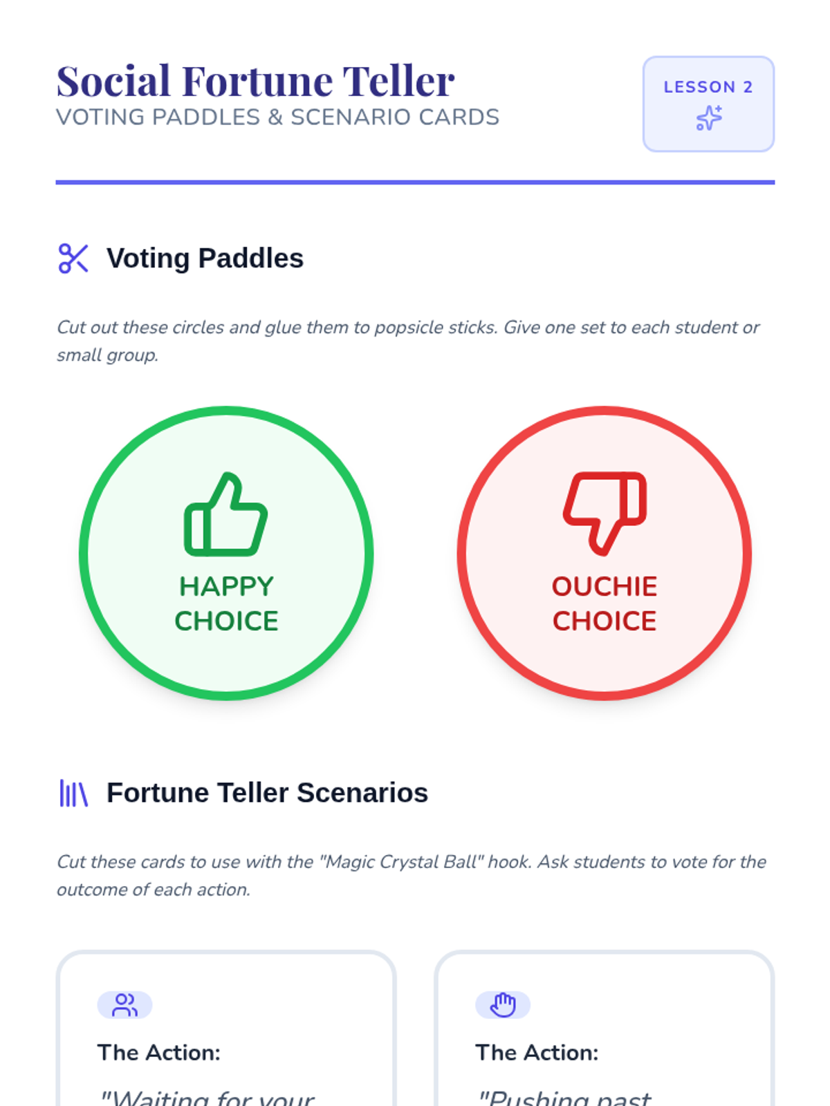 This sequence focuses on the consequences of behaviors, helping Pre-K students understand the connection between their actions and resulting outcomes. Through interactive play, prediction games, and simulations, students learn to distinguish between helpful and hurtful actions and practice 'rewinding' scenarios for better results.