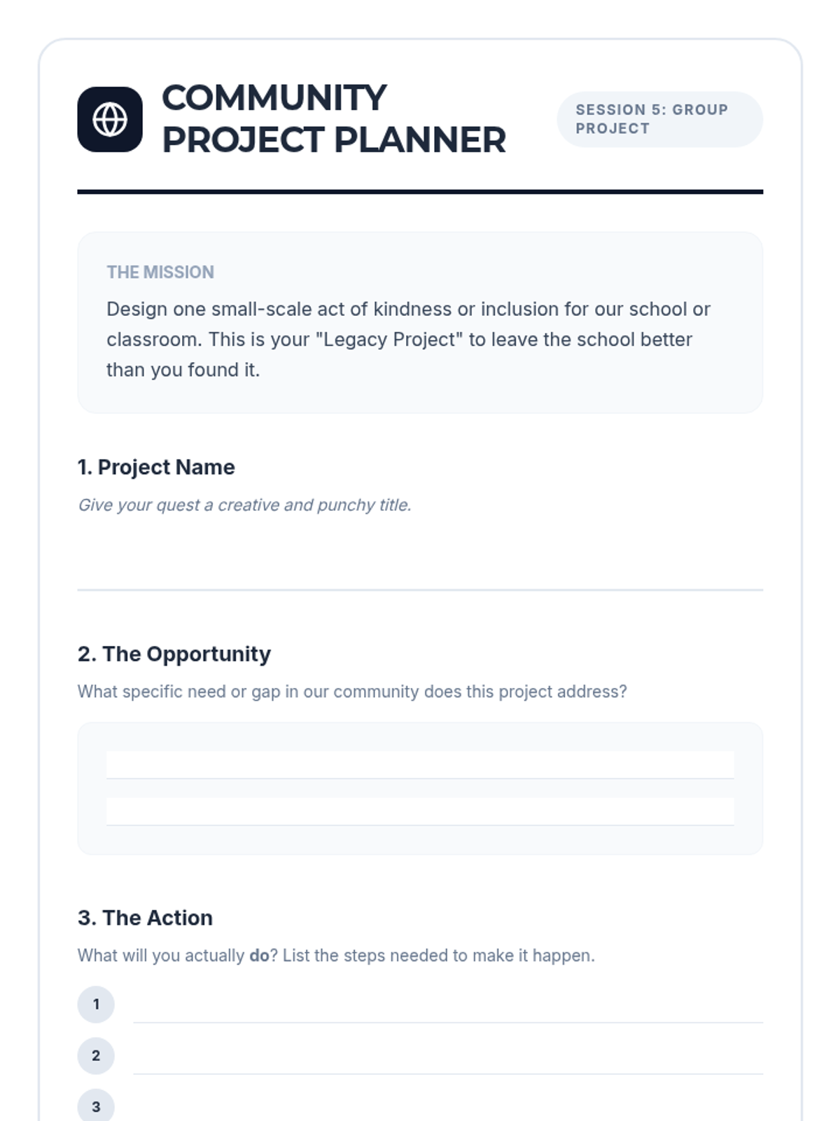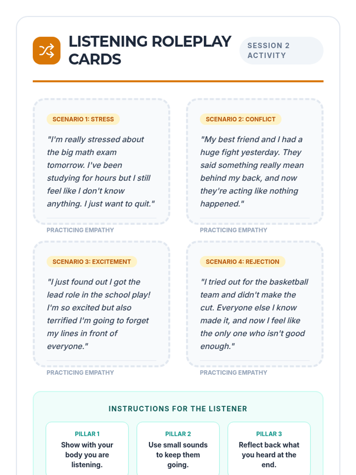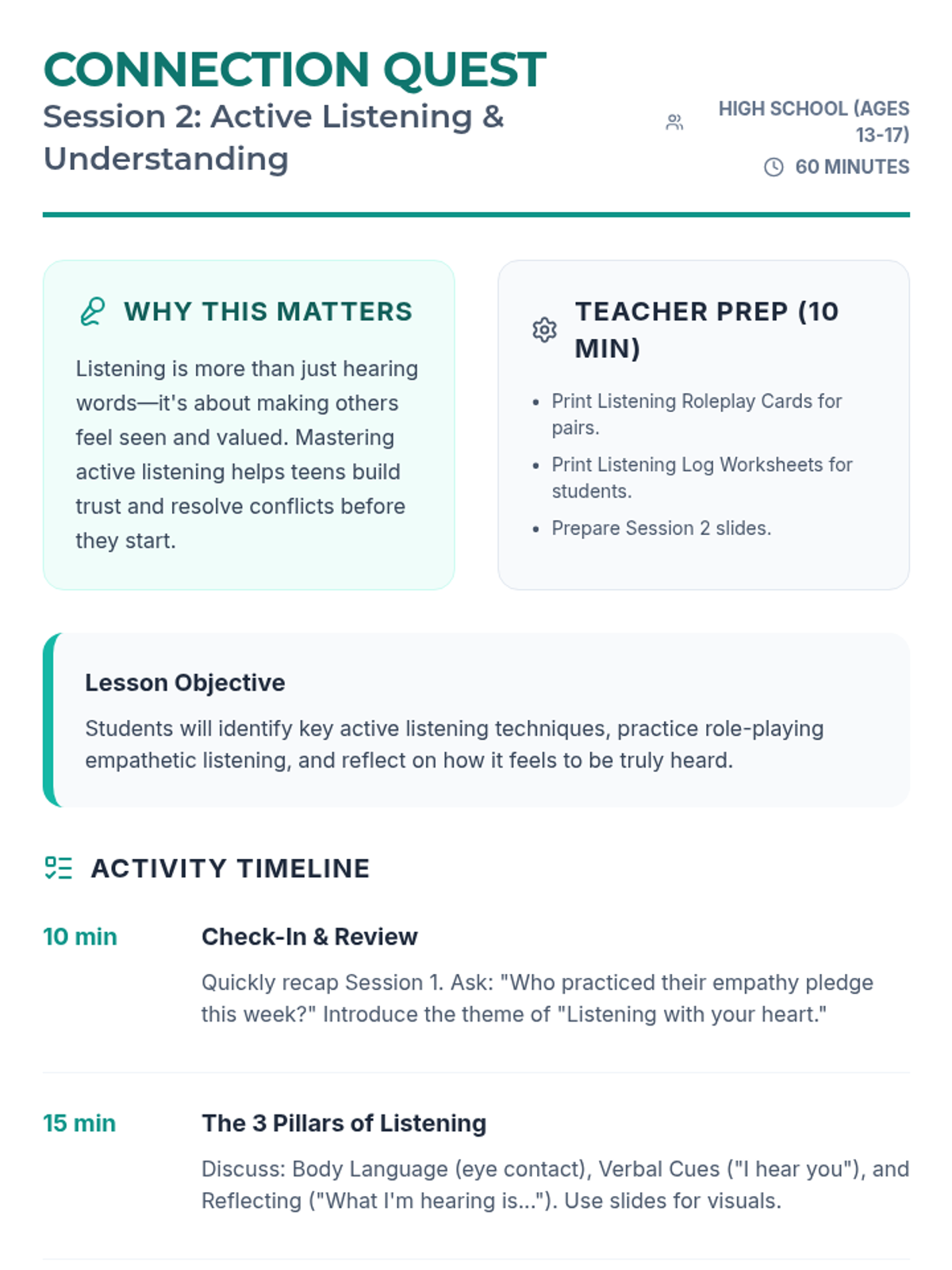 A 5-session social-emotional learning series for teens that explores empathy, active listening, diversity, and community building through interactive activities and reflection.