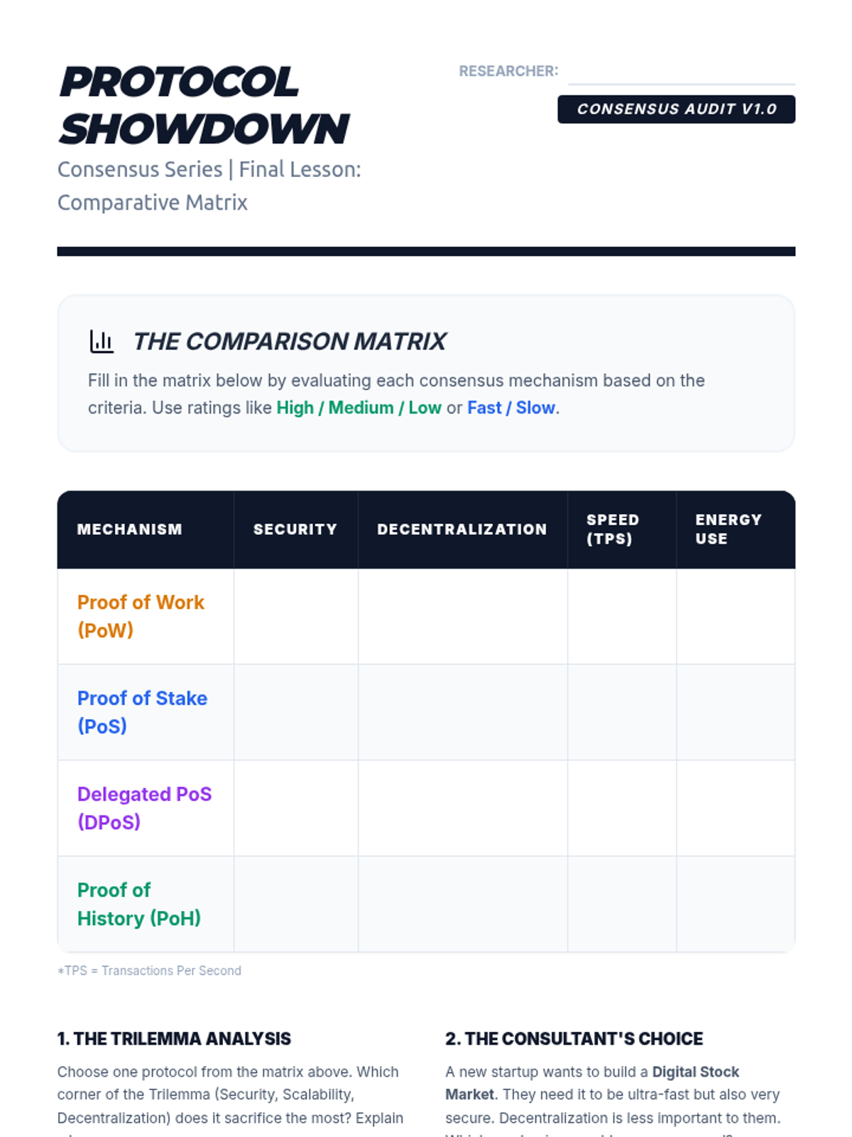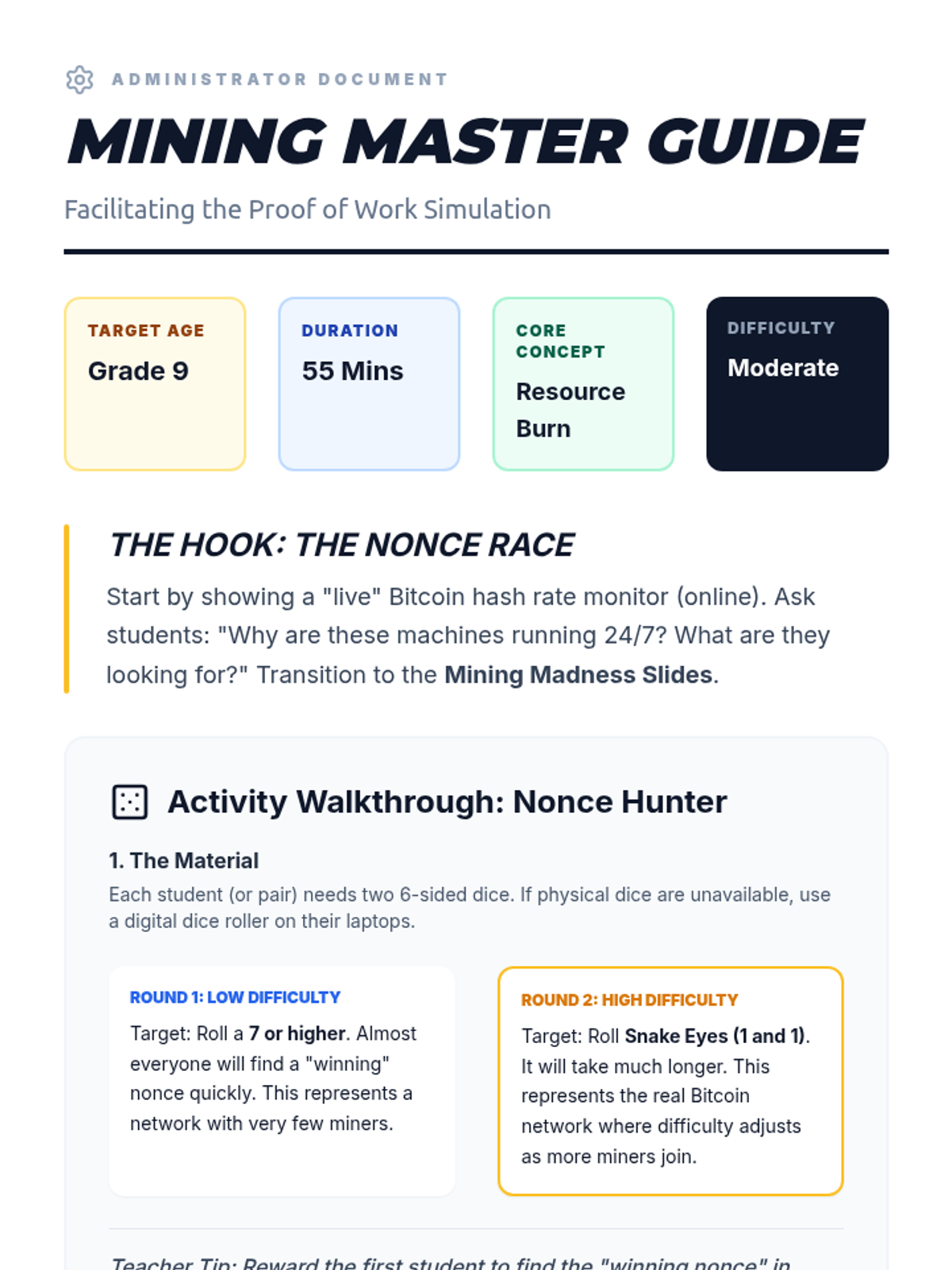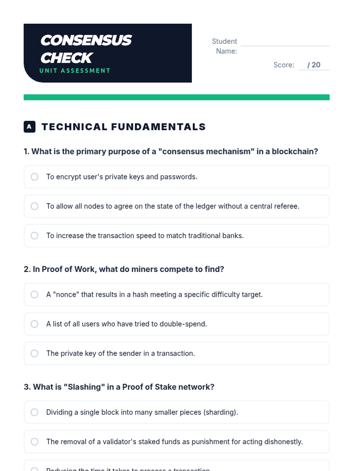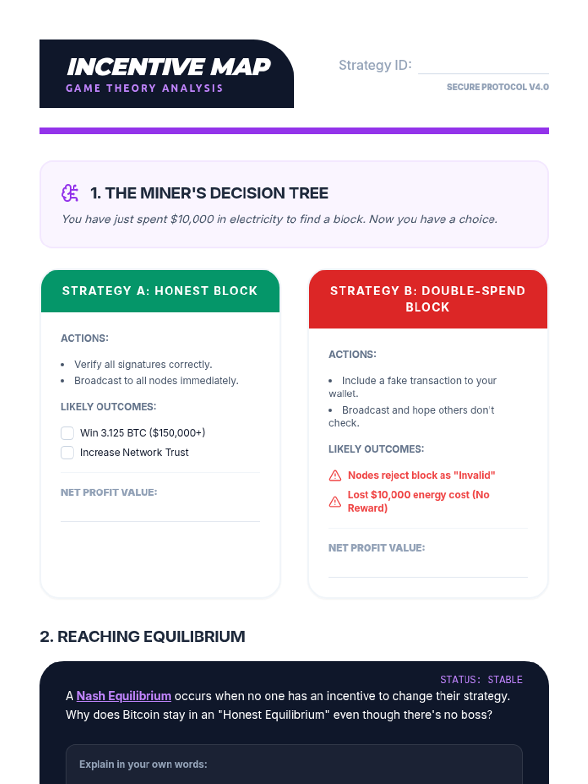 This sequence investigates the consensus algorithms that allow decentralized networks to agree on the state of the ledger. Students examine the mechanics of Proof of Work (PoW) and Proof of Stake (PoS), analyzing the economic incentives and environmental implications of each. through game-based learning, students simulate mining and staking to grasp the difficulty of achieving consensus.