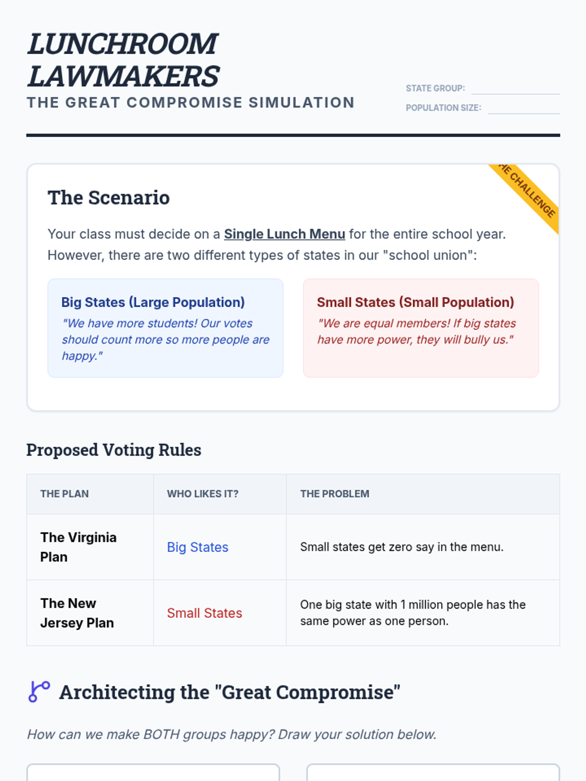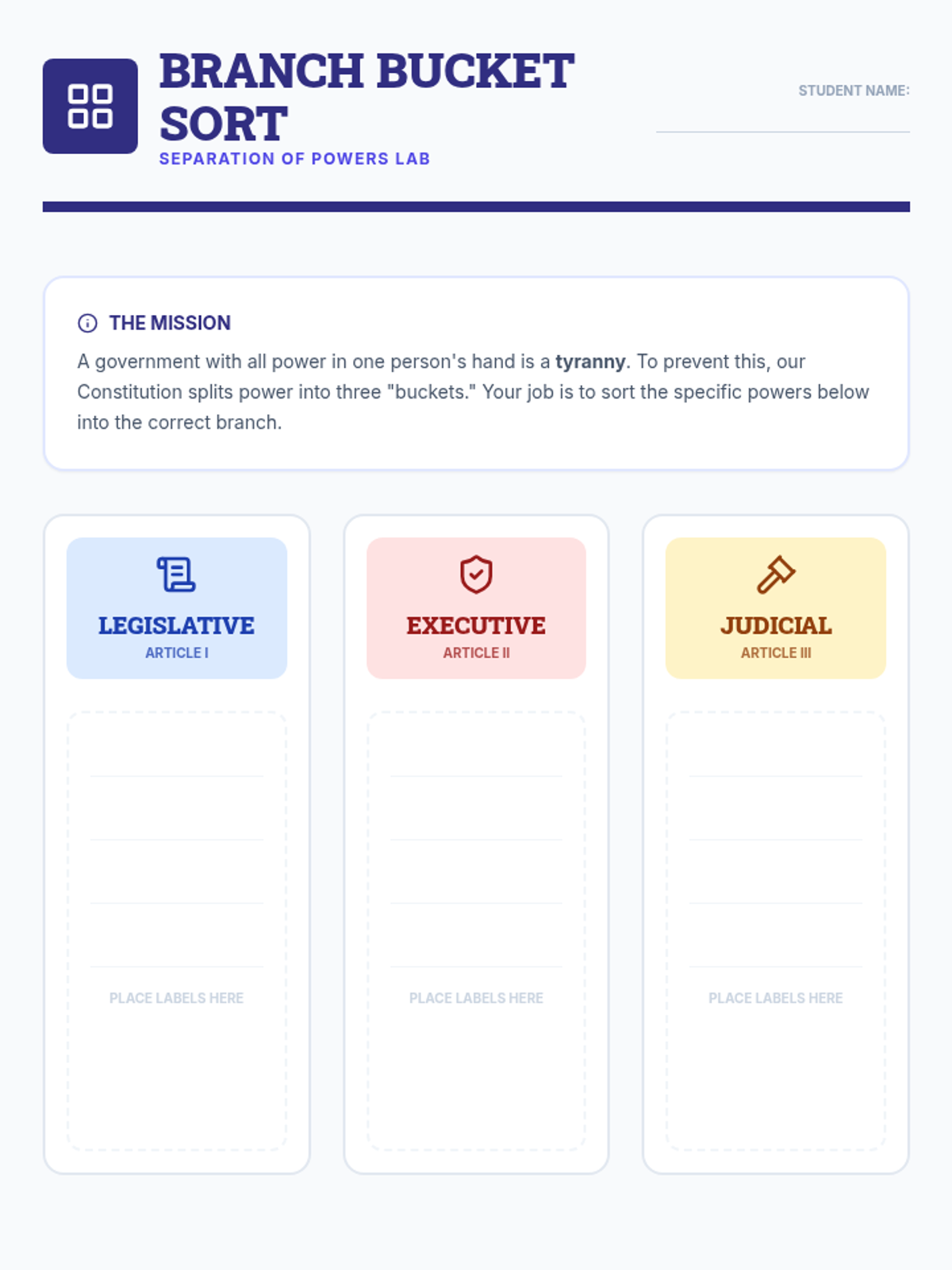 A 5th-grade civics sequence exploring the structural logic of the U.S. government, from the failures of the Articles of Confederation to the implementation of the three branches and the system of checks and balances.