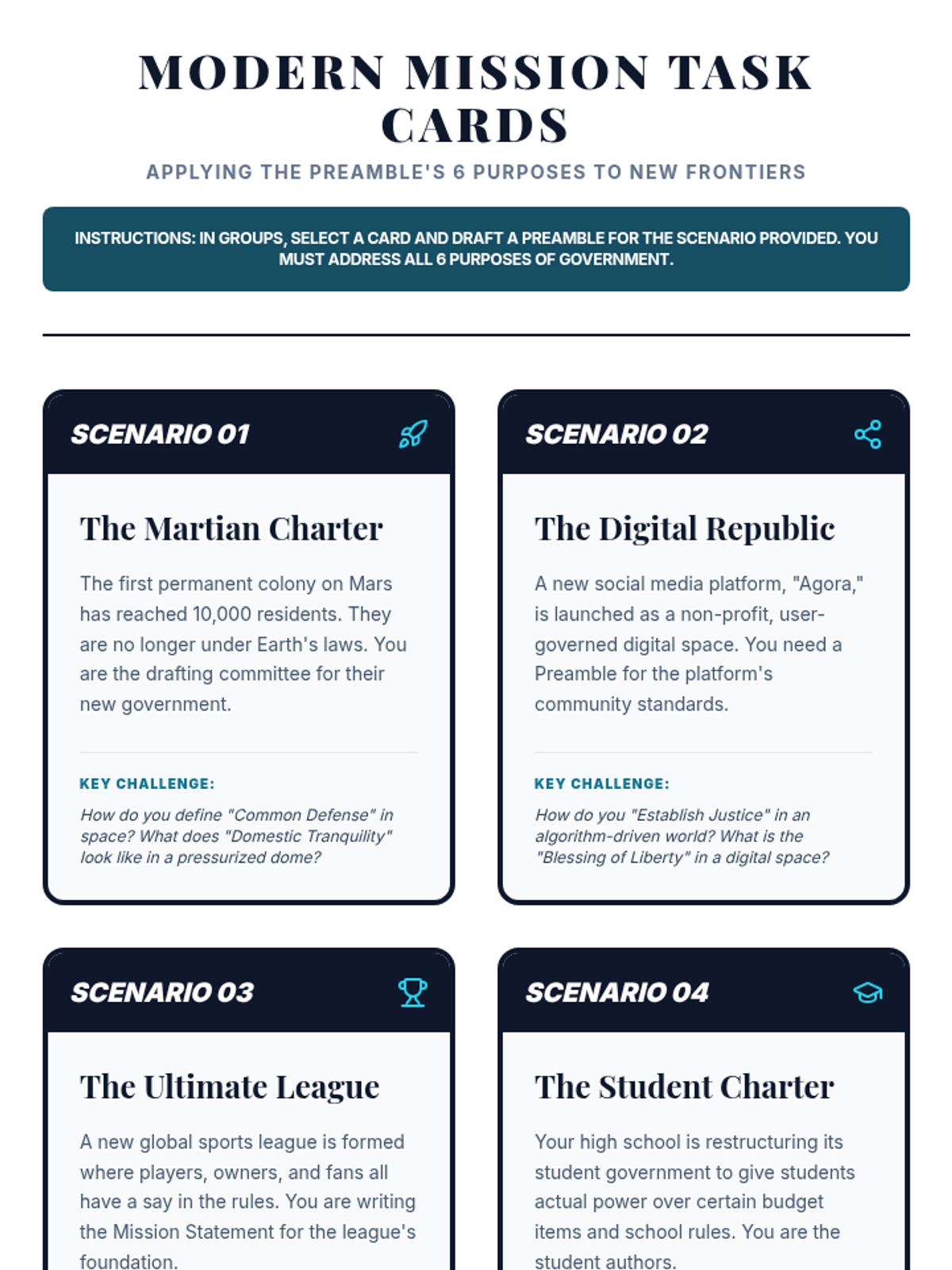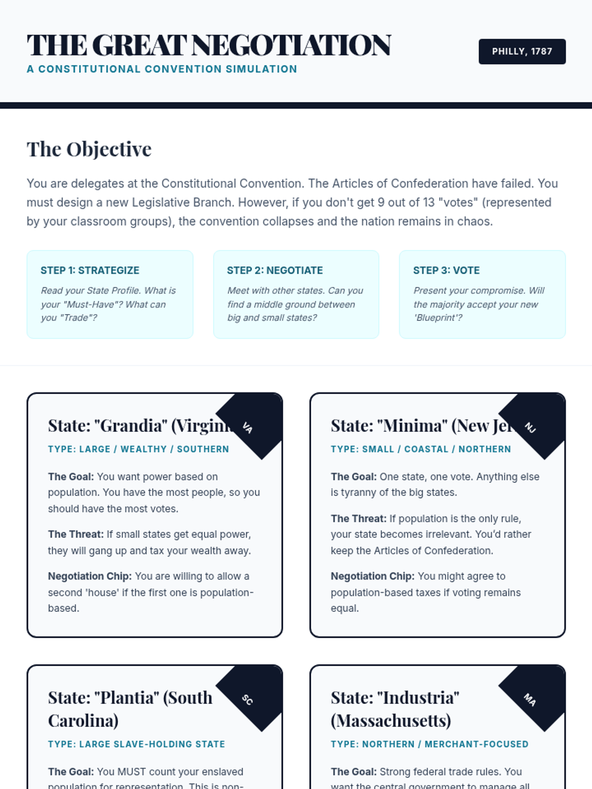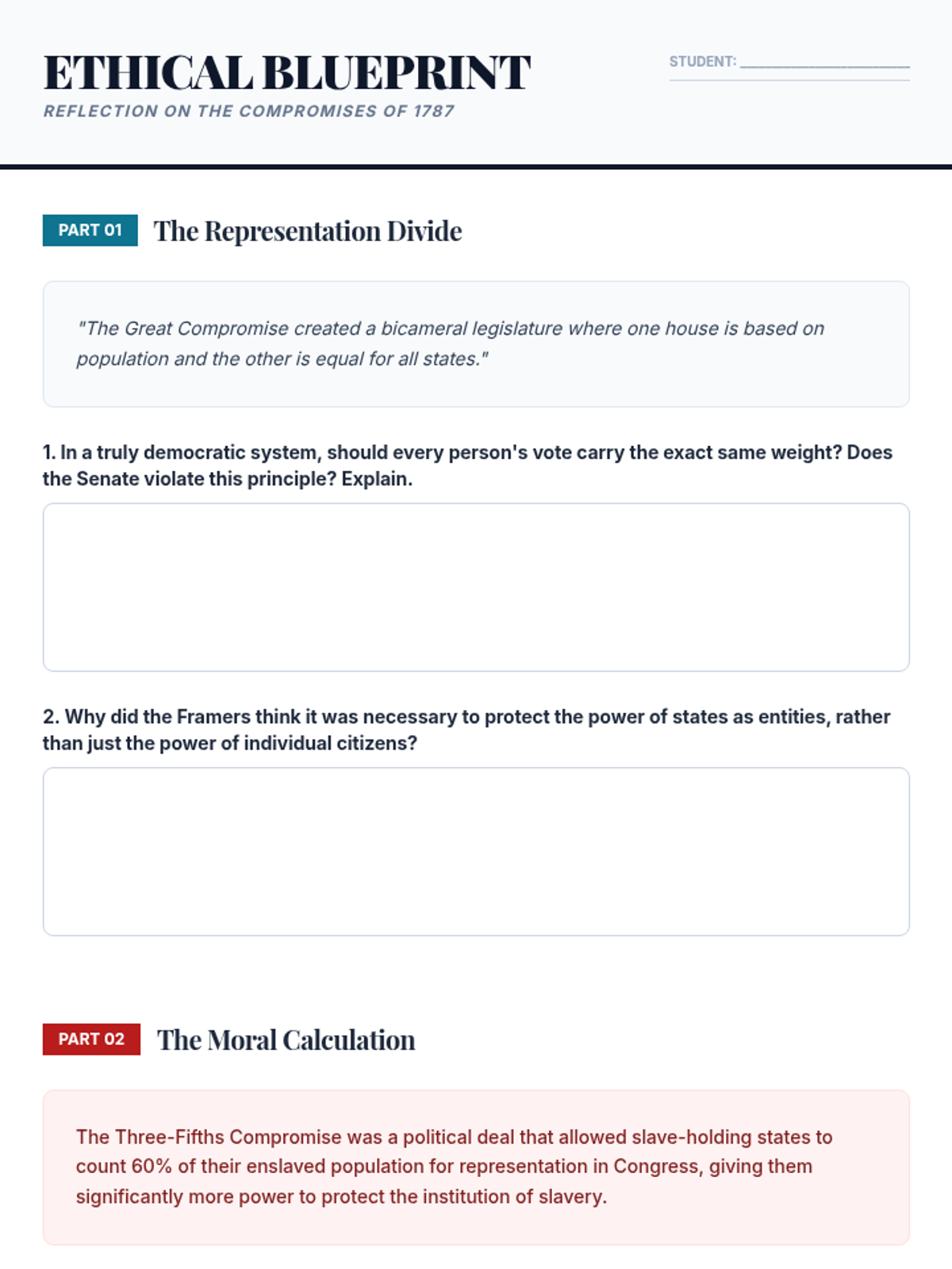 A high school civics sequence exploring the philosophical and historical foundations of the US Constitution, focusing on the transition from the Articles of Confederation to the Federal framework. Students analyze primary sources like The Federalist Papers and debate the core compromises that defined the American government's structure.