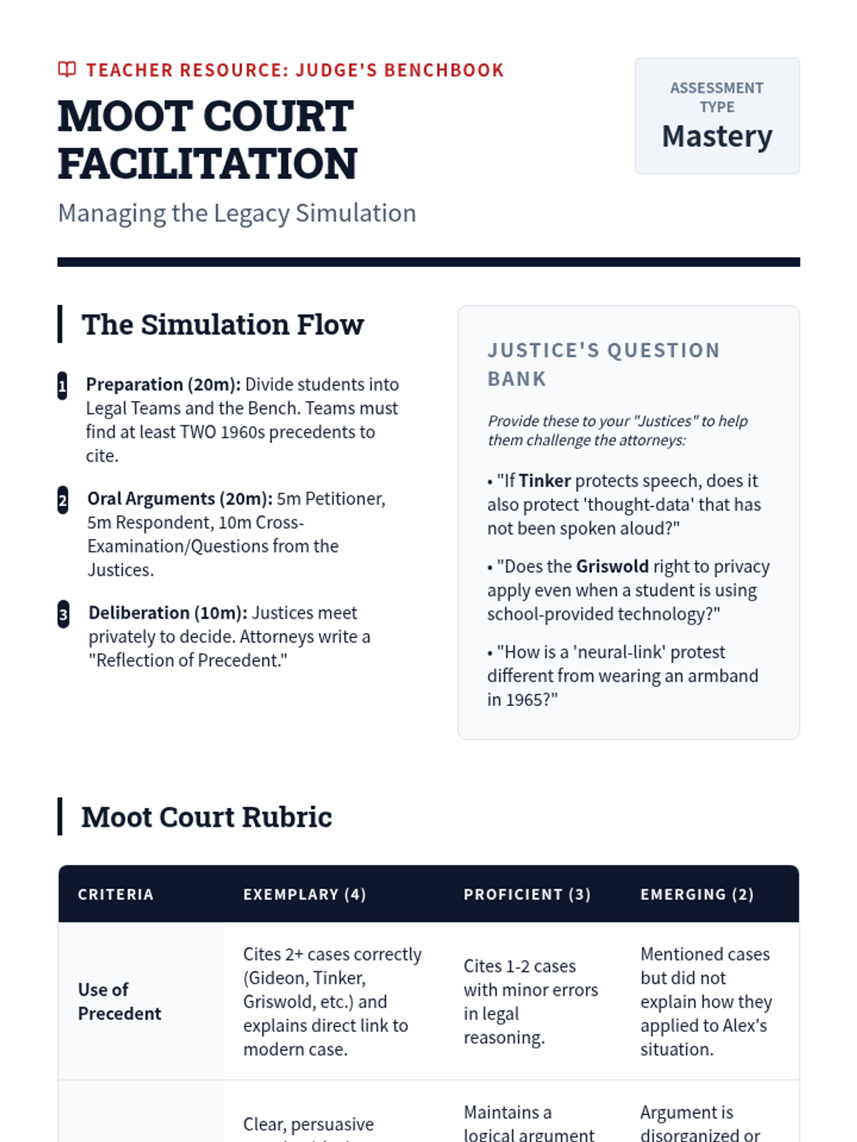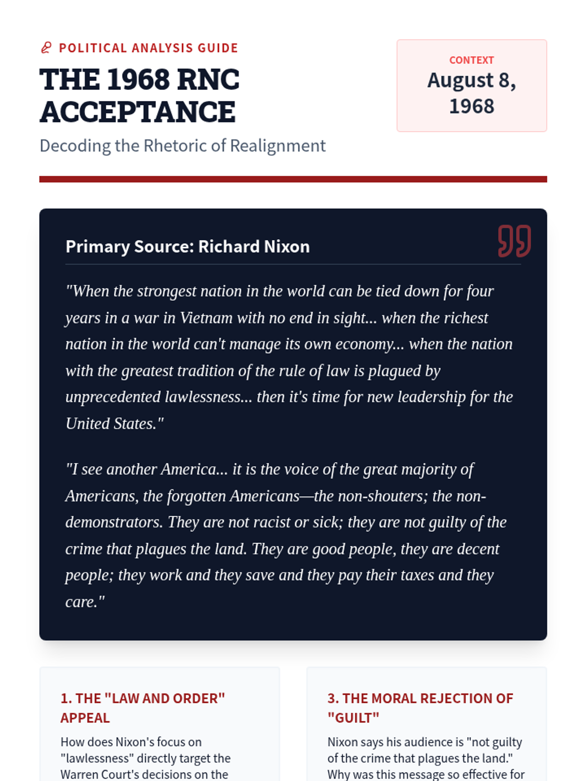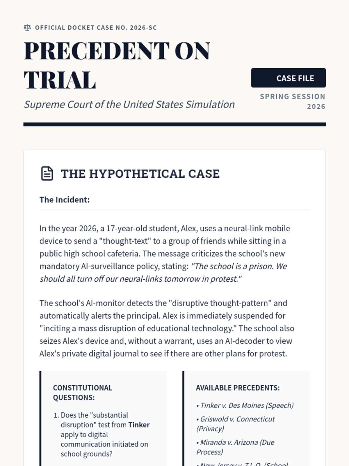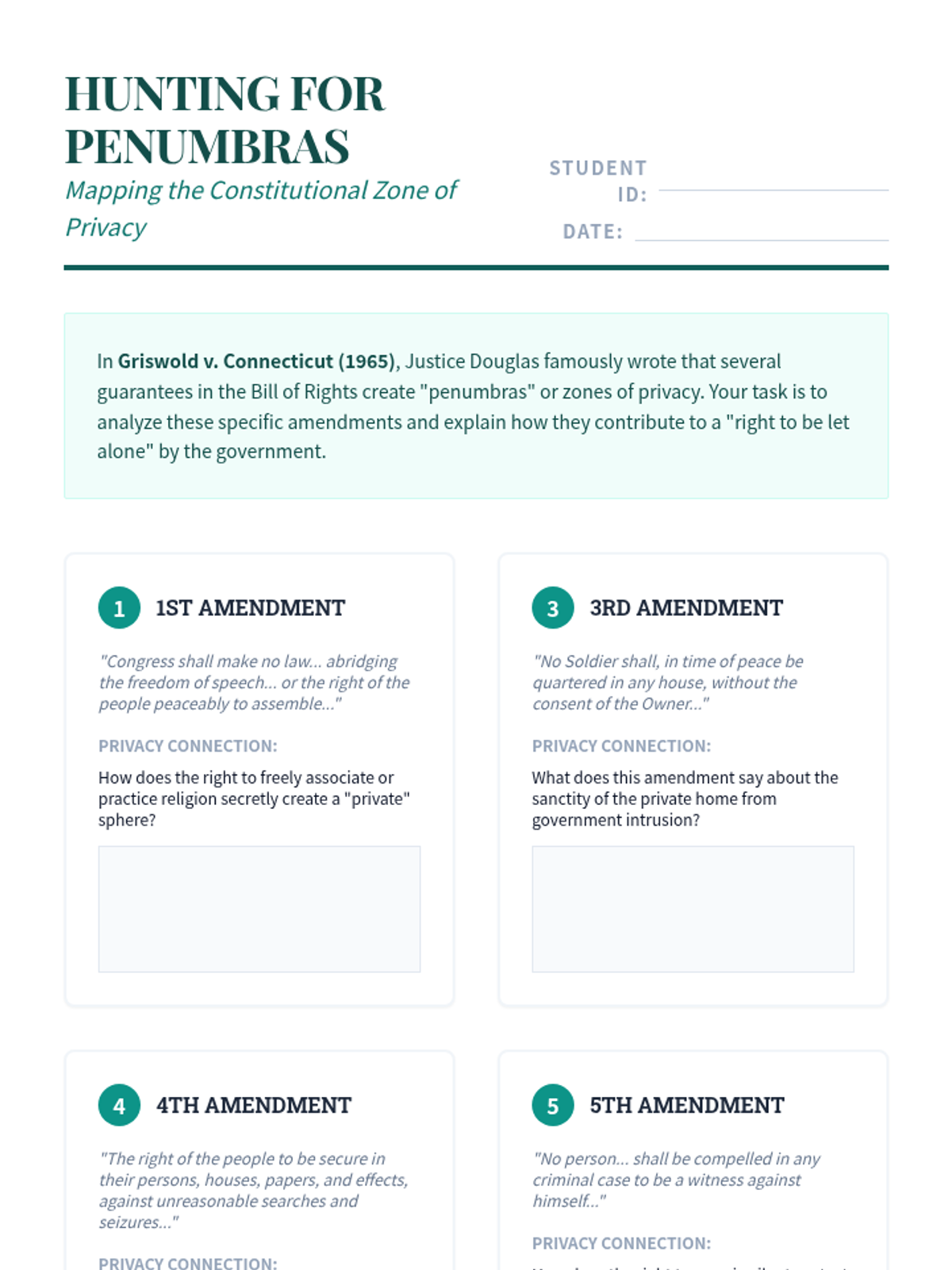 This sequence explores the constitutional revolution of the Warren Court during the 1950s and 60s. Students analyze landmark cases involving rights of the accused, free speech, and privacy, culminating in an examination of the resulting political realignment and a moot court simulation.