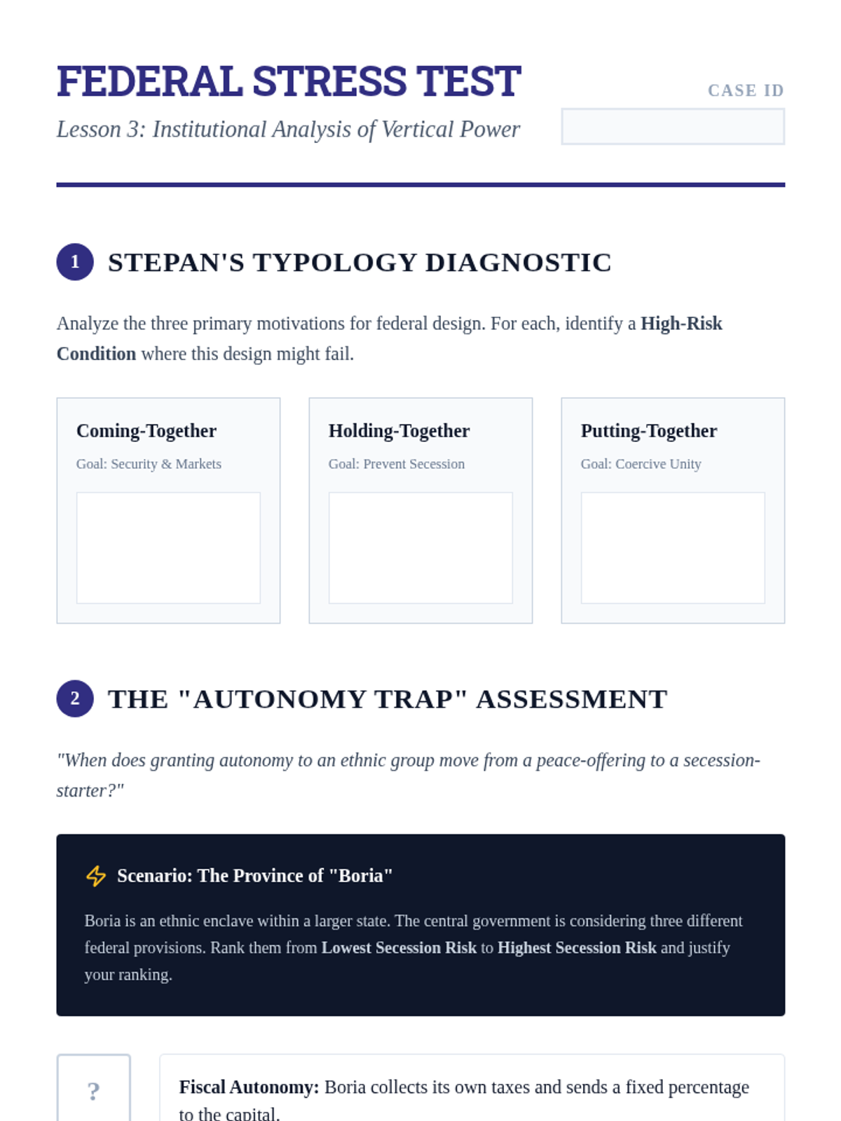 An advanced graduate-level exploration of constitutional engineering, institutional design, and their effects on political stability and representation in divided societies.