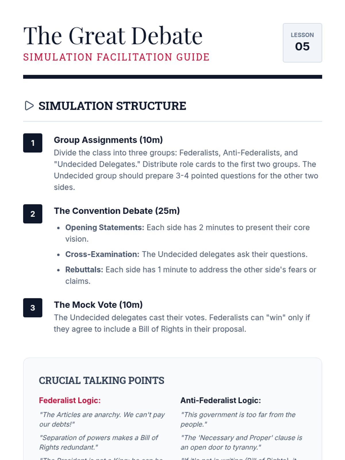 A comprehensive 11th-grade civics sequence exploring the transition from the Articles of Confederation to the US Constitution, focusing on foundational principles and the ratification debates.