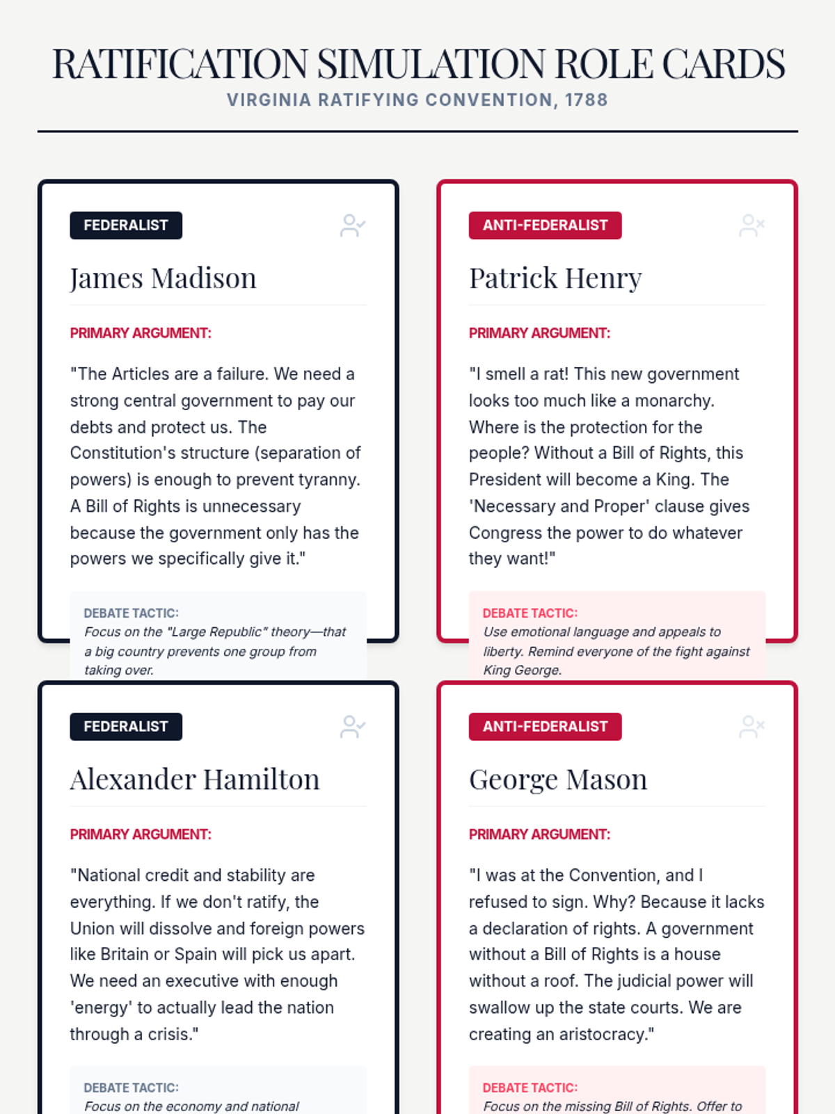 Debating Ratification: Federalists vs. Anti-Federalists