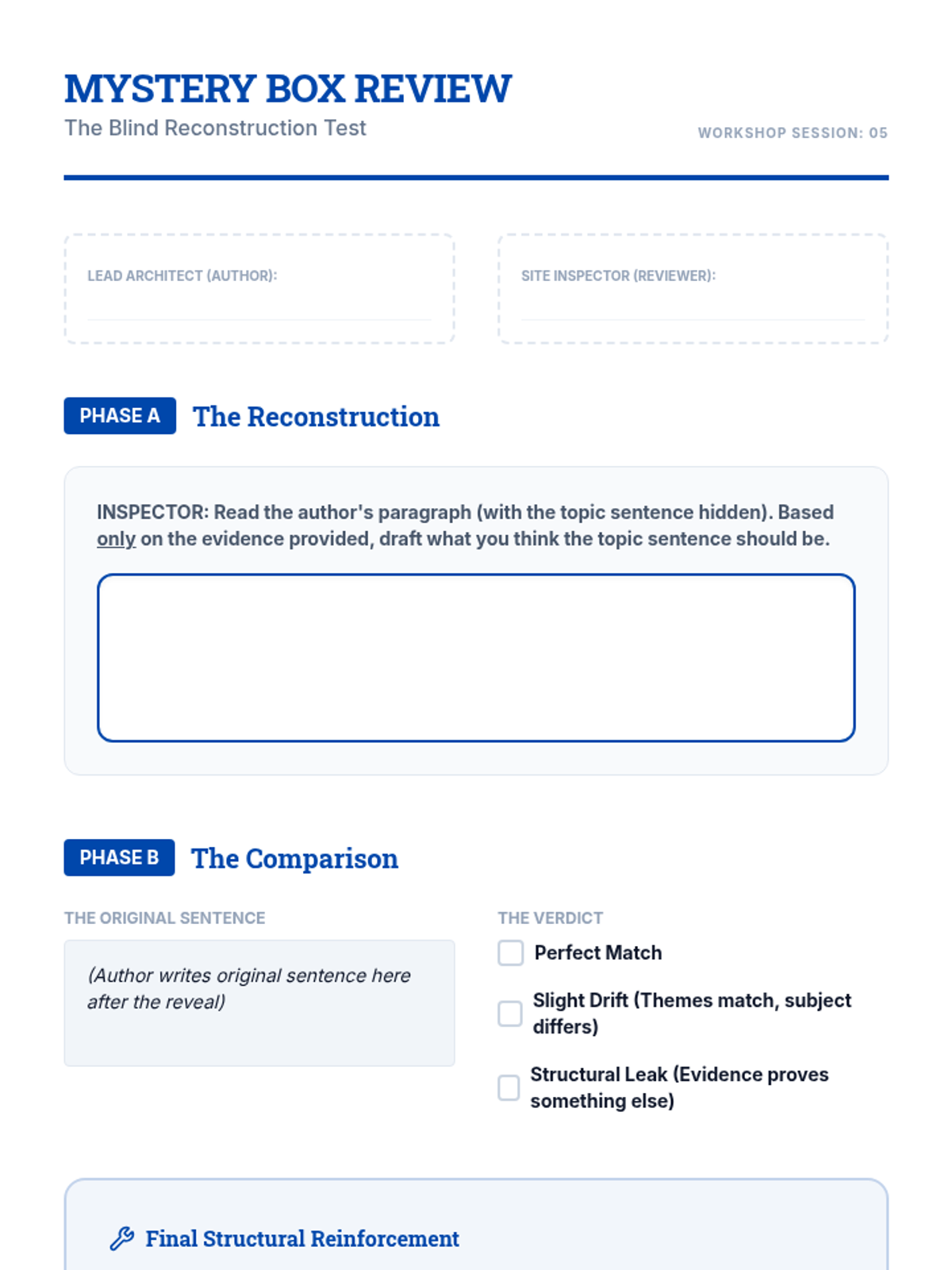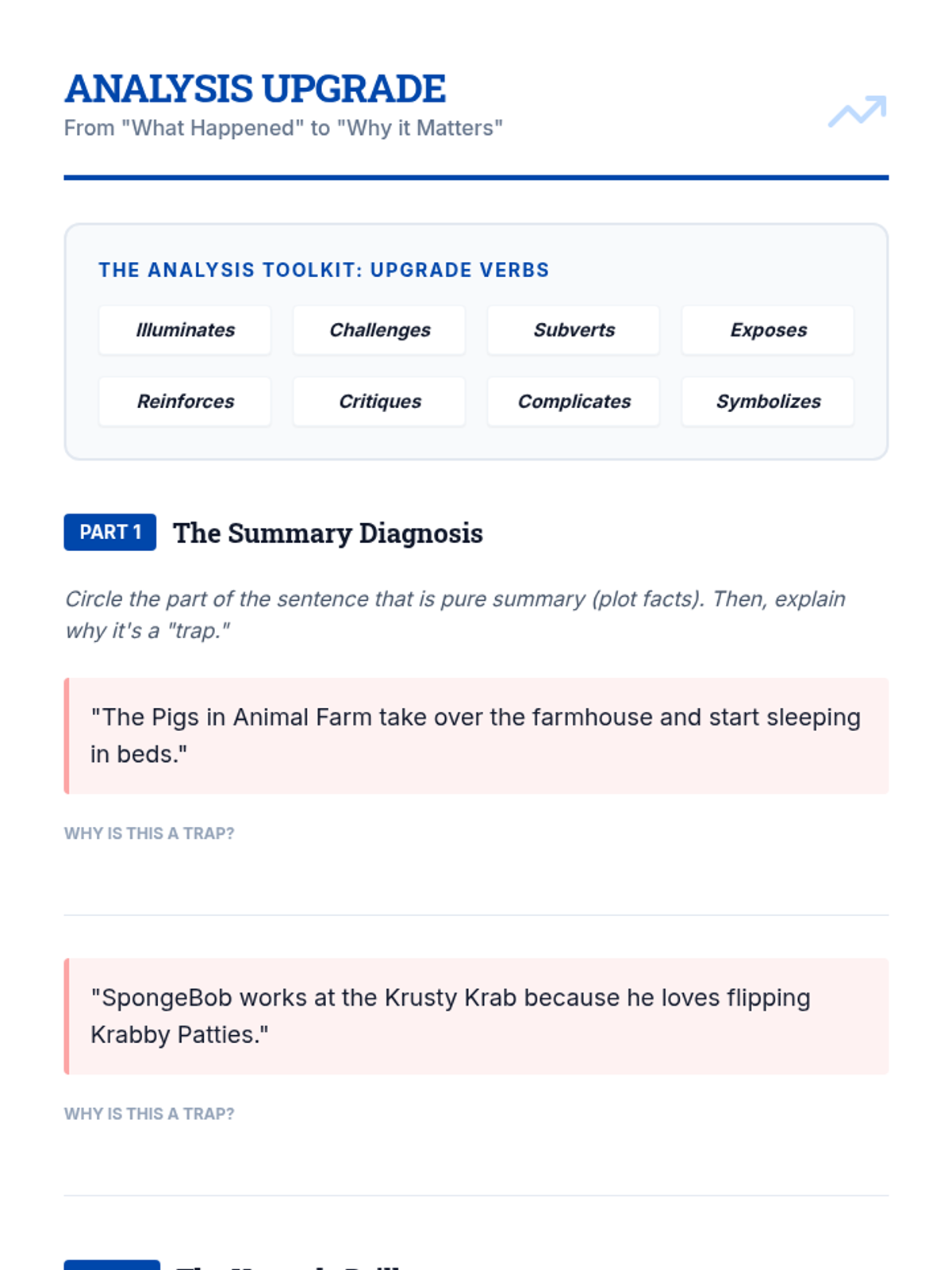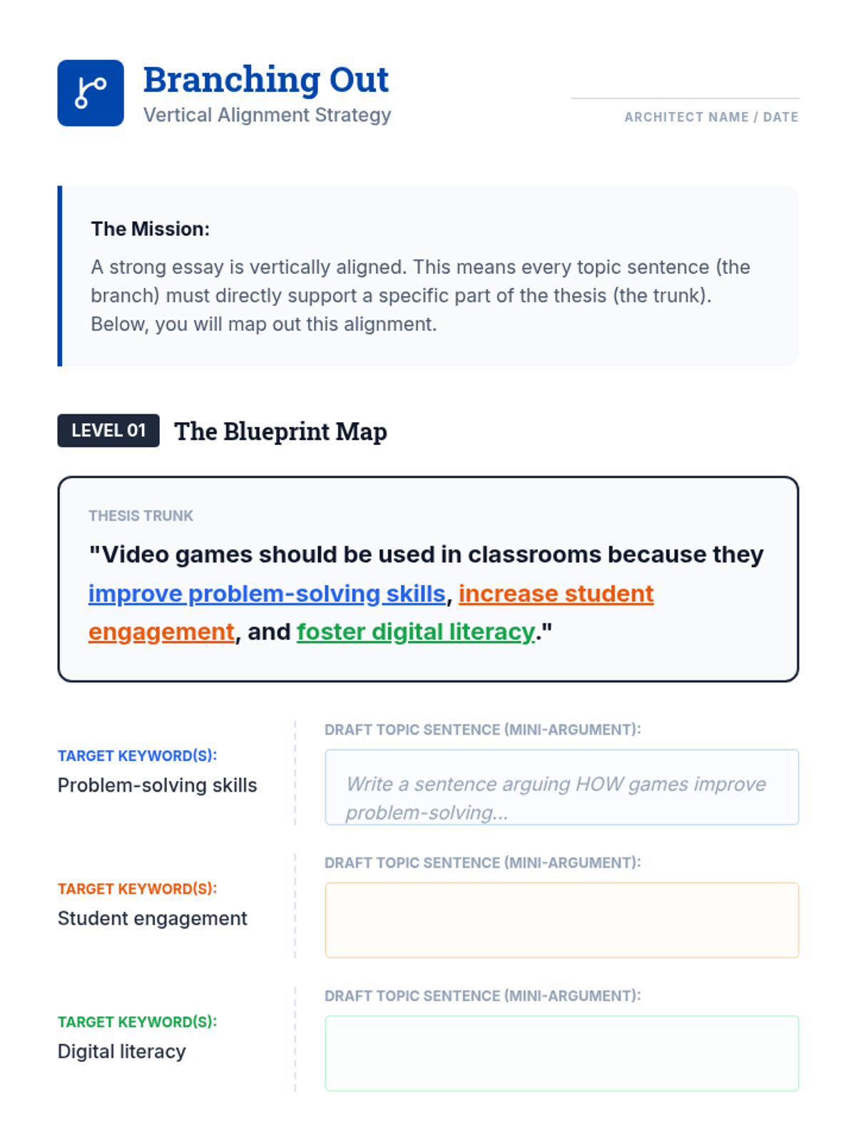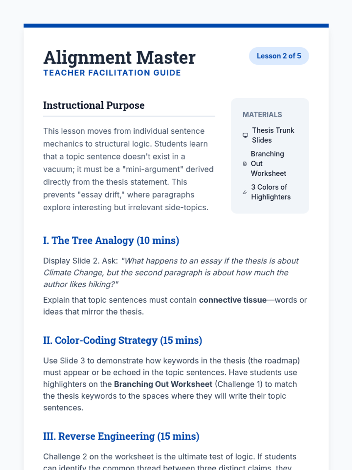 A foundational writer's workshop for ninth graders focused on the mechanics of crafting argumentative topic sentences that align with thesis statements, avoid plot summary, and maintain proper scope.