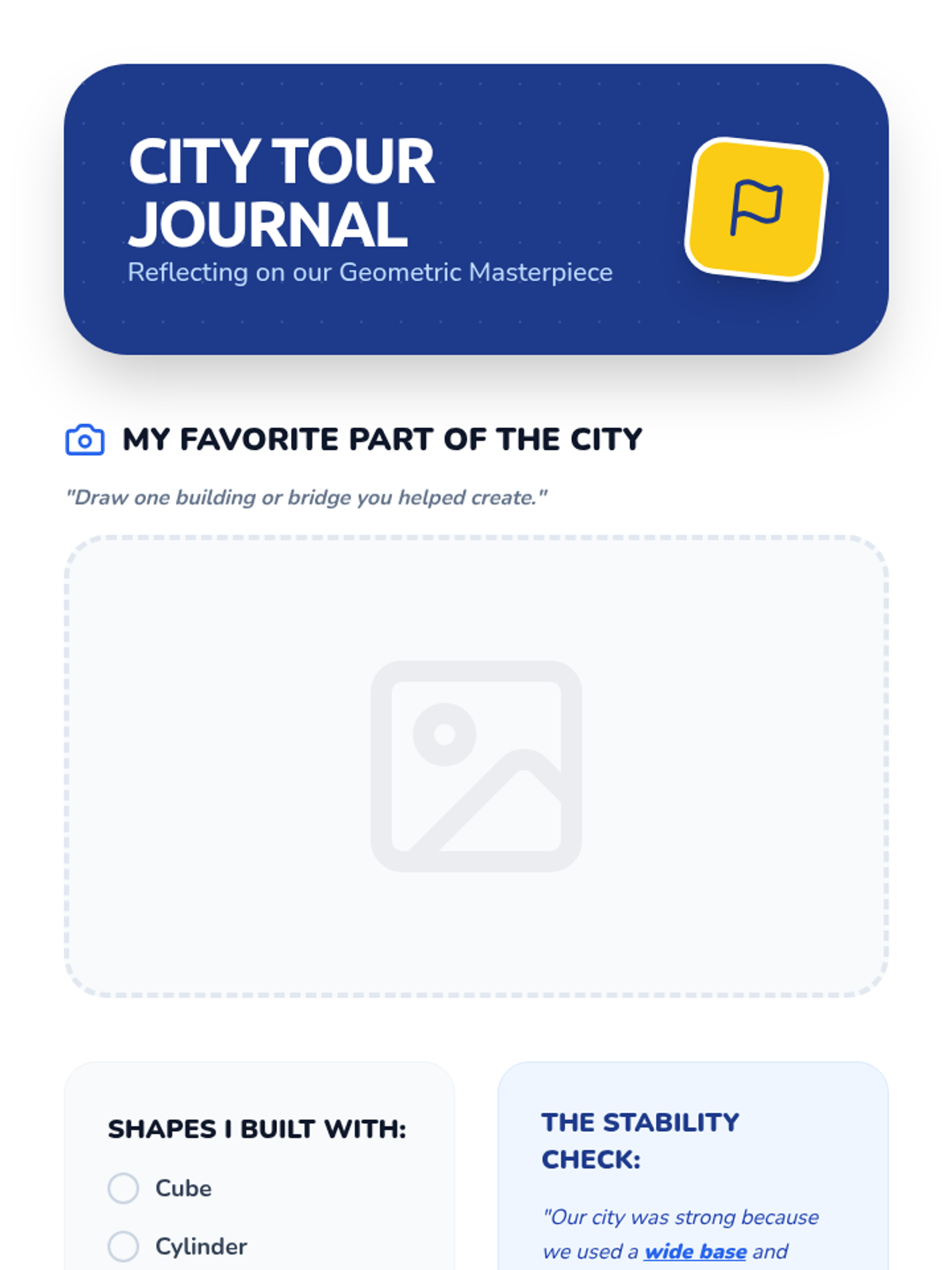 This Kindergarten sequence explores the intersection of geometry and engineering. Students learn to compose and decompose 2D shapes before applying those principles to 3D structural stability, culminating in a collaborative project to design a geometric city.