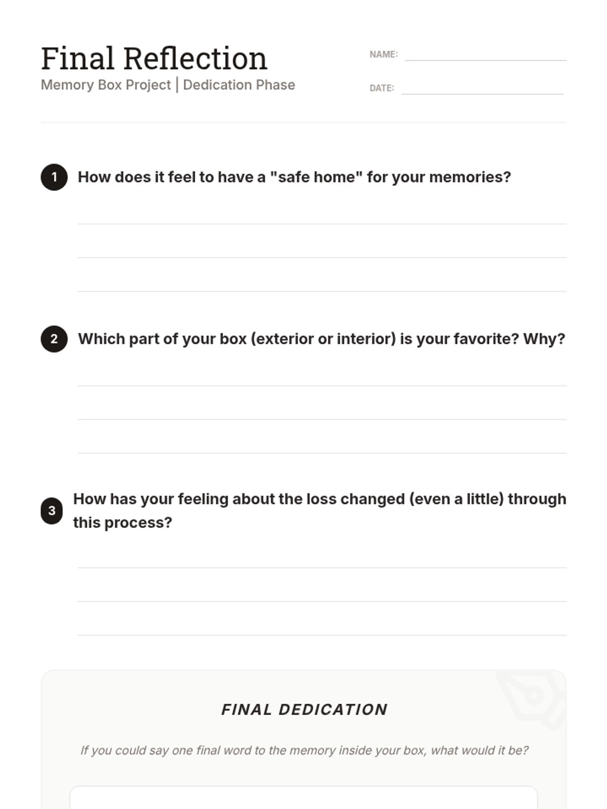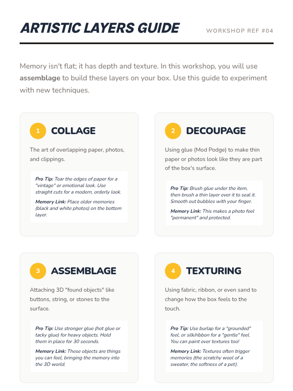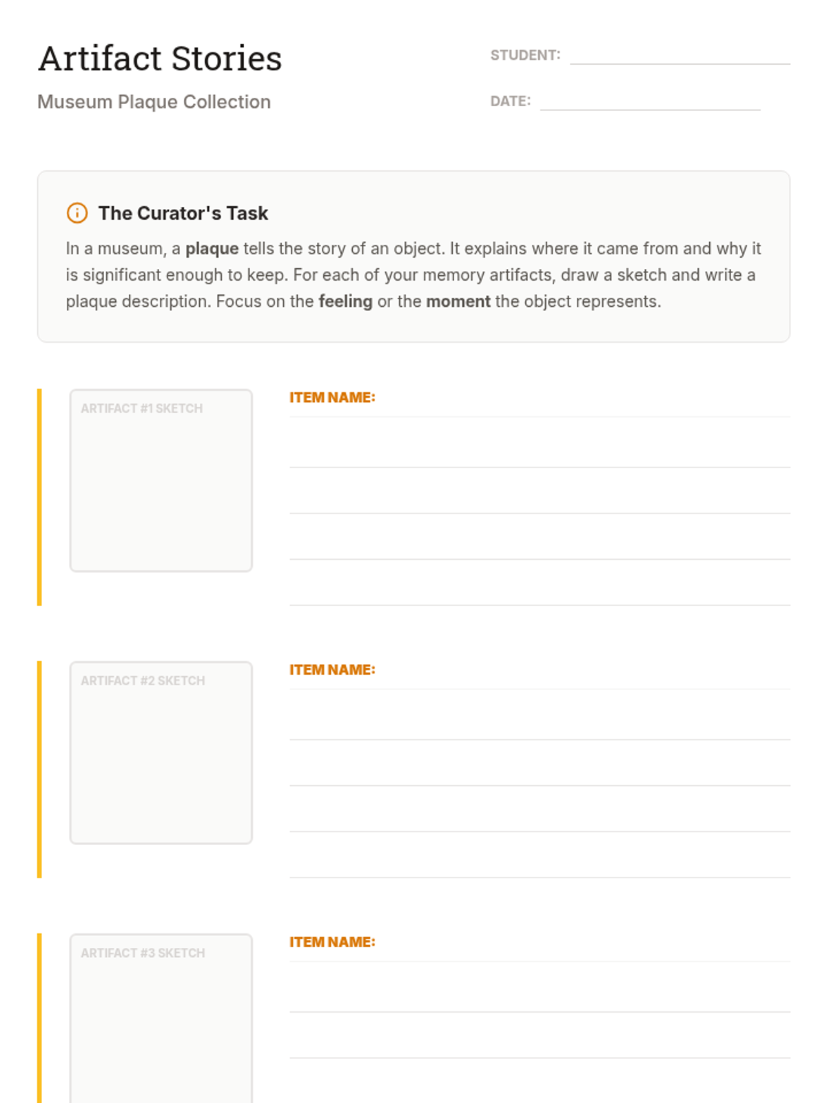 A 5-lesson sequence for 6th-grade students focused on using creative assemblage art and memory boxes to process grief and loss. Students explore cultural monuments, select personal artifacts, and construct tangible tributes to honor their memories.