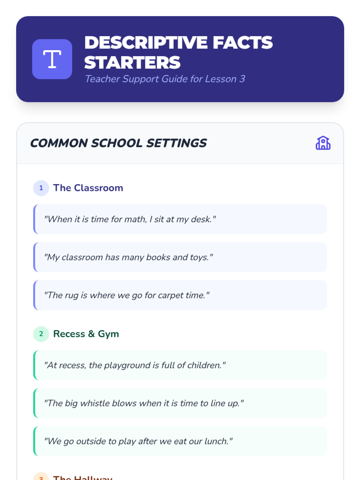 A project-based sequence for 1st-grade students to learn the components of social stories and create their own personalized narrative to master social and behavioral skills. Students transition from analyzing existing stories to drafting their own descriptive and directive sentences, culminating in a published personal booklet.
