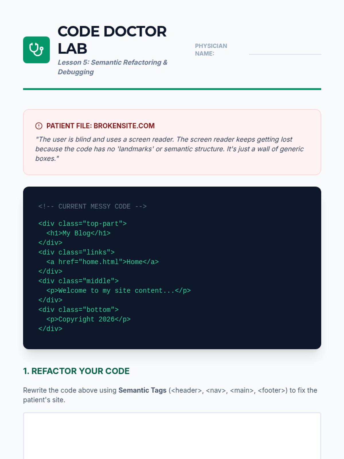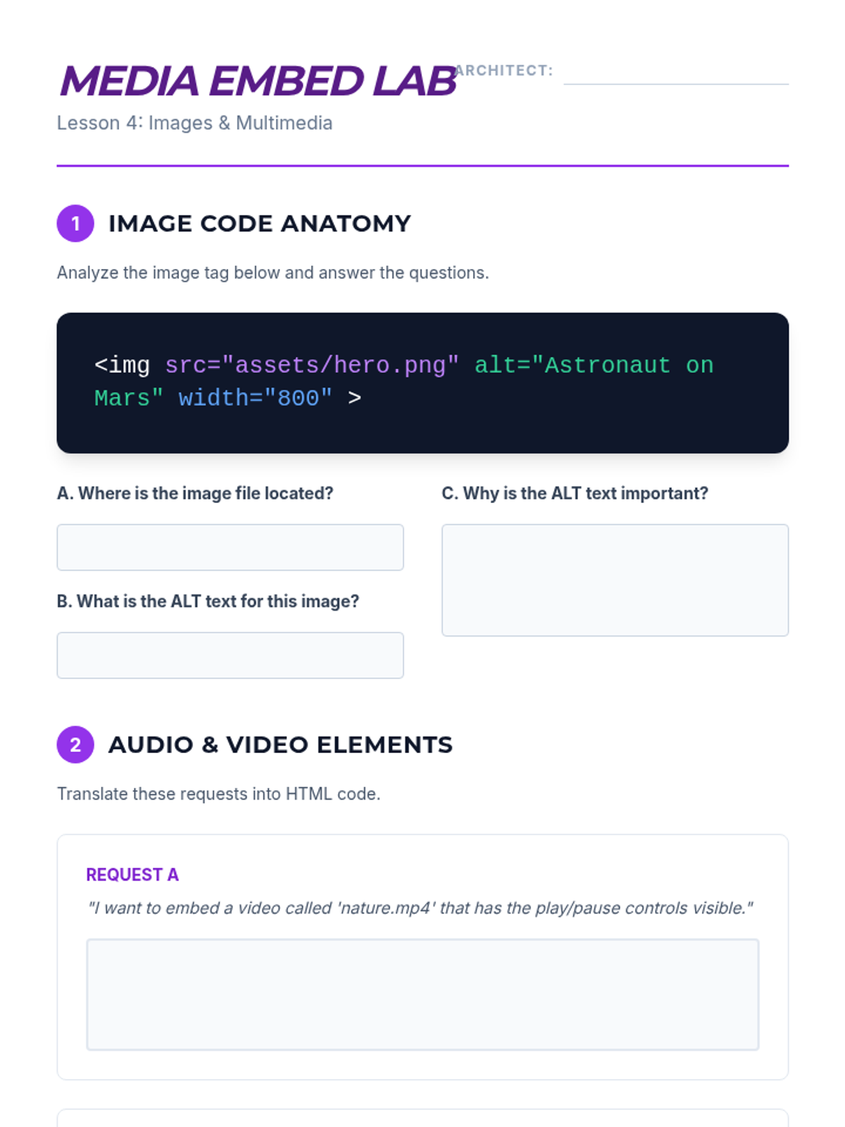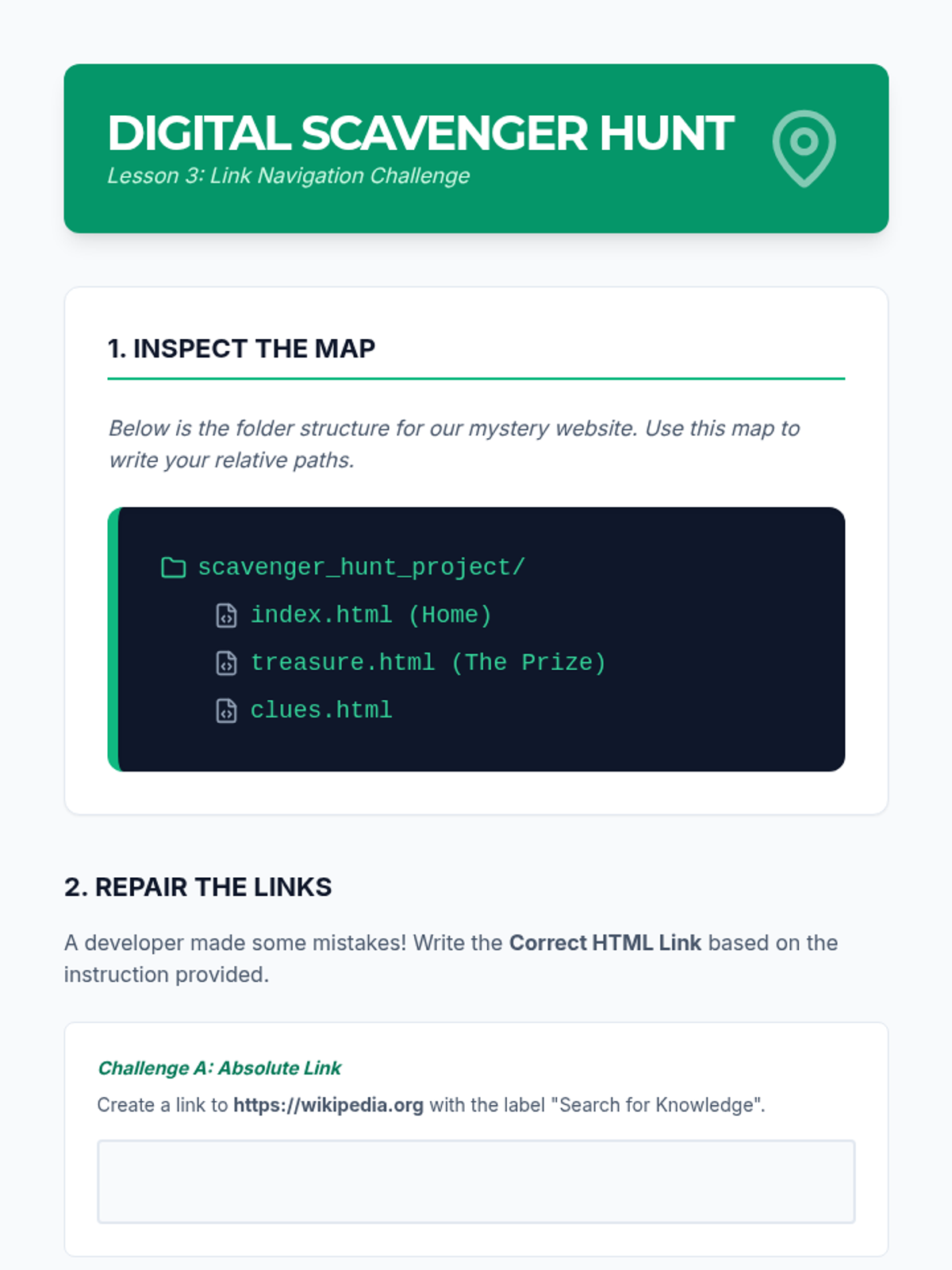 This sequence introduces 8th-grade students to HTML, focusing on semantic structure, data organization with lists and tables, navigation via hyperlinks, and embedding multimedia content. It culminates in a mastery-focused lesson on modern semantic tags and code validation.