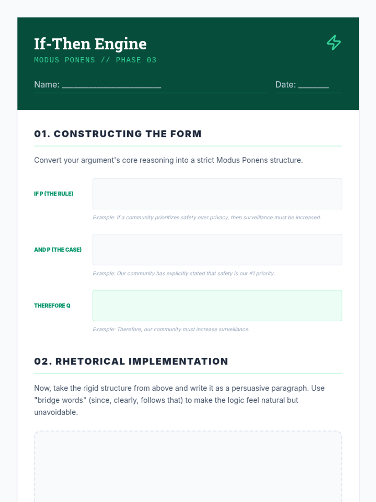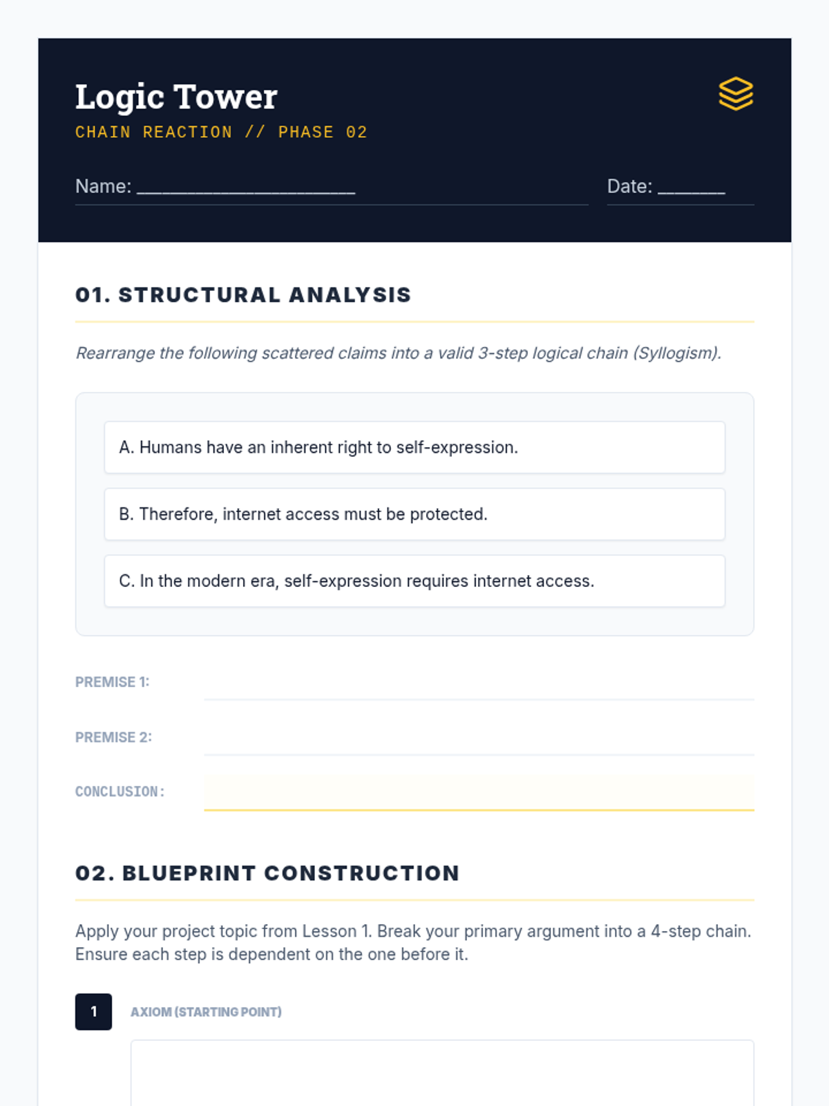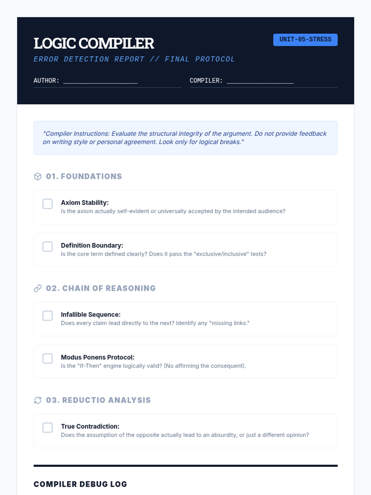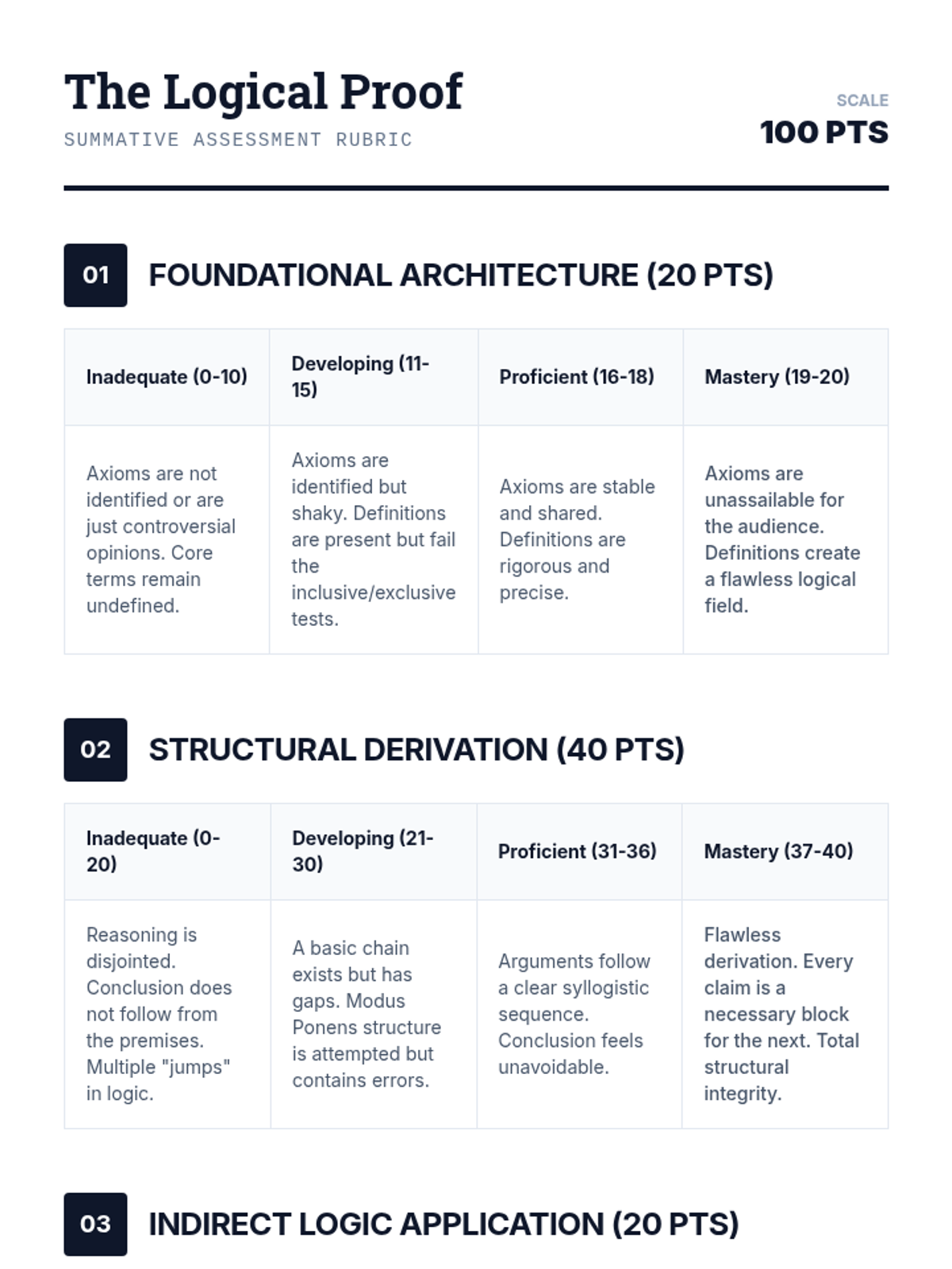 A high-school ELA sequence that treats argumentative writing like geometric proofs, focusing on formal logic structures like axioms, modus ponens, and proofs by contradiction to build unassailable positions.