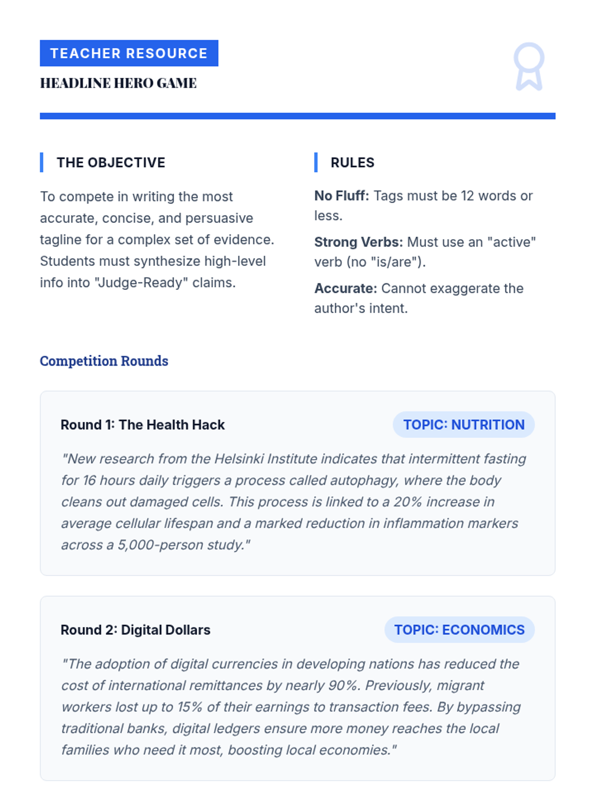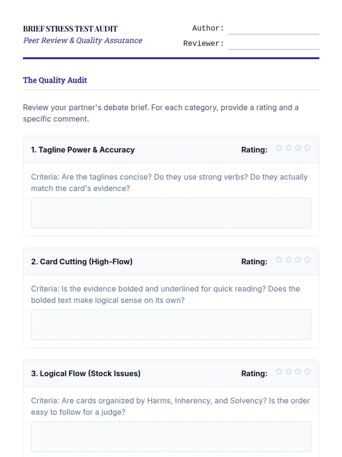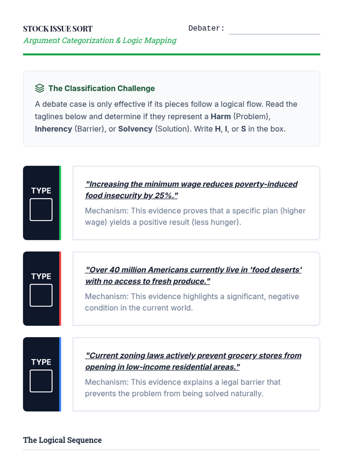 A comprehensive sequence teaching 8th-grade students the technical and ethical skills required to construct professional debate briefs, from card cutting to logical categorization.